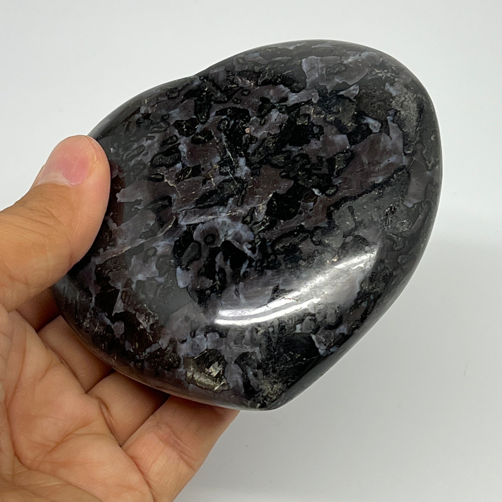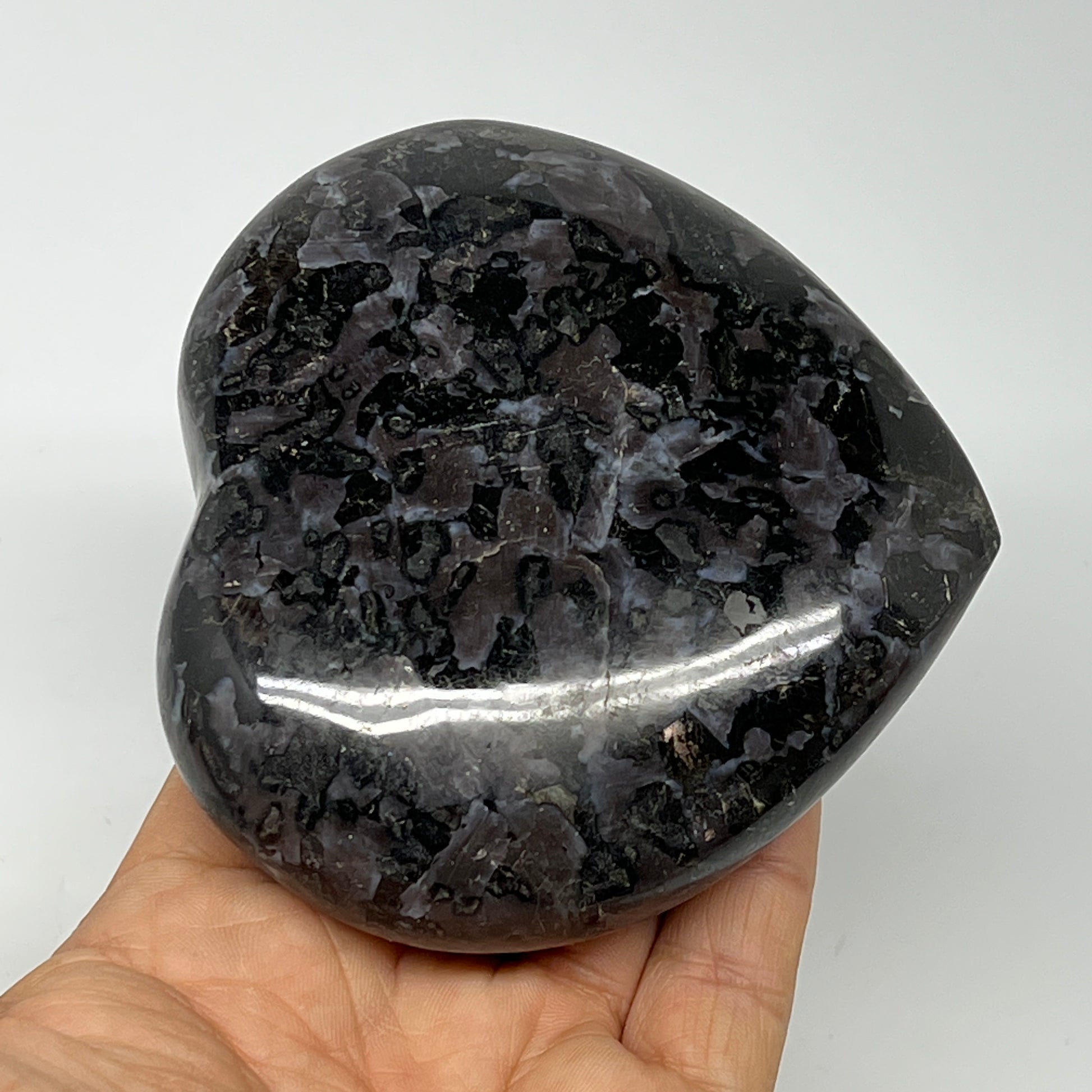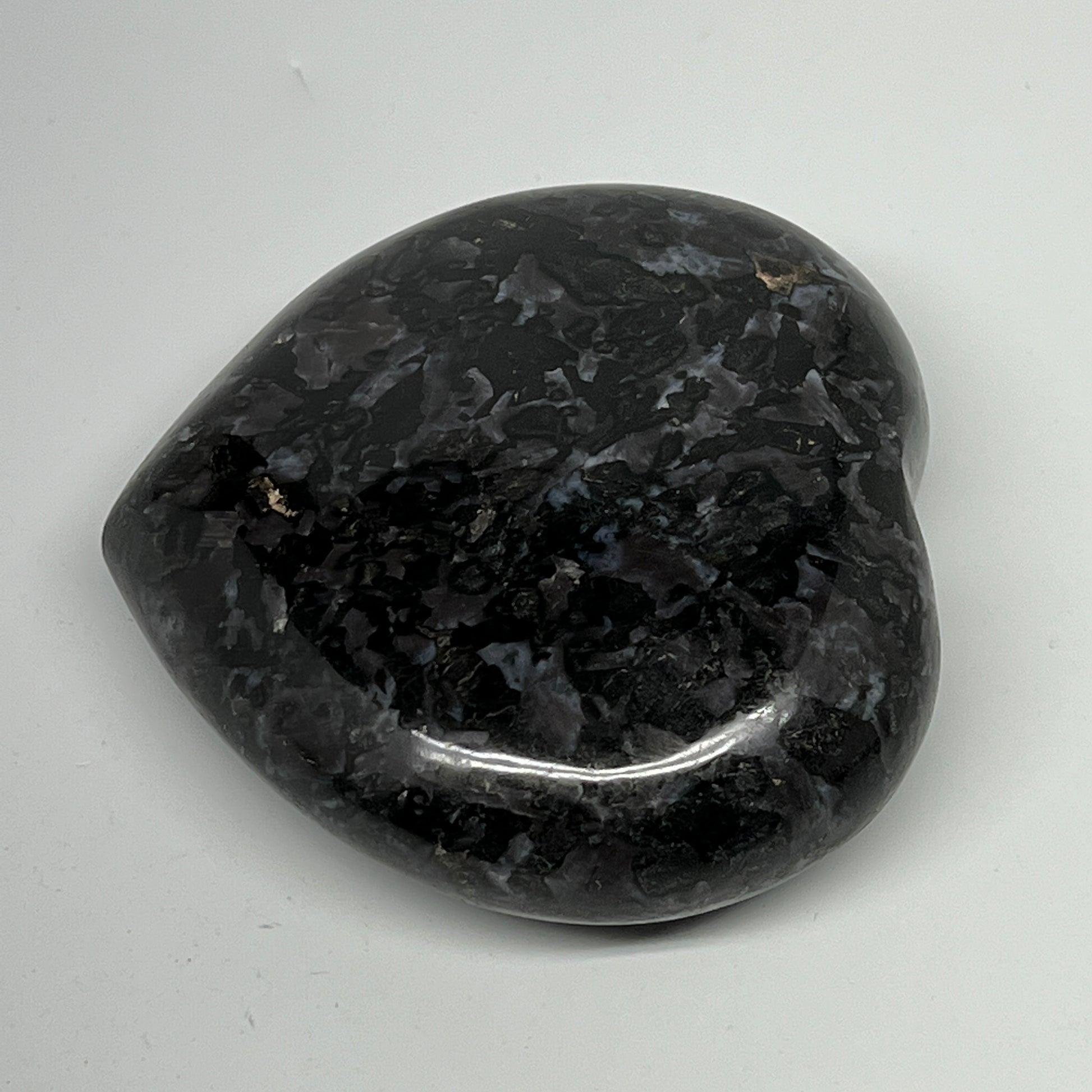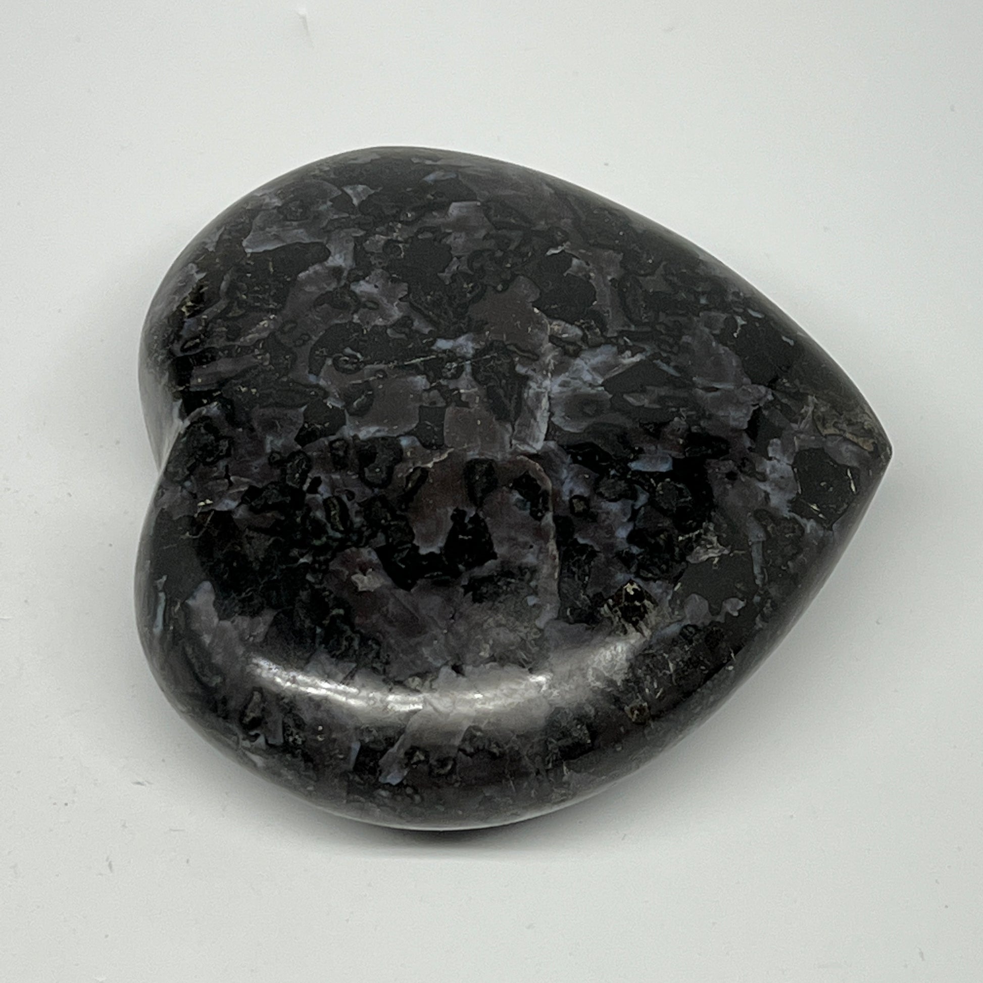 469.3g,3.6"x3.7"x1.3" Indigo Gabro Merlinite Heart Gemstone @Madagascar,B19931