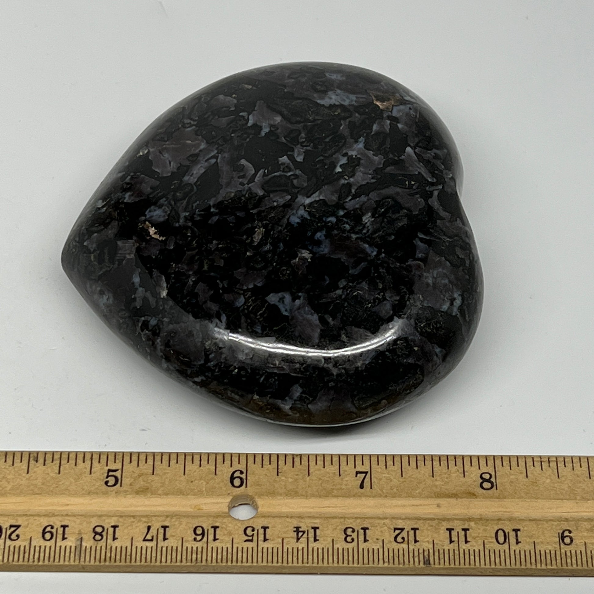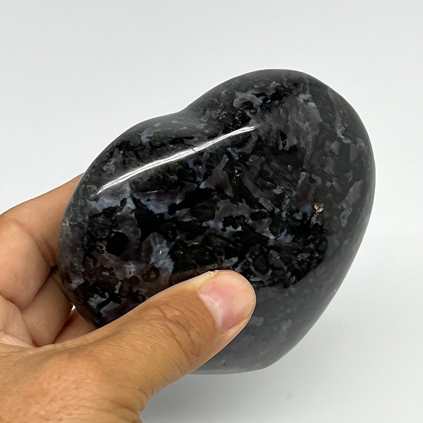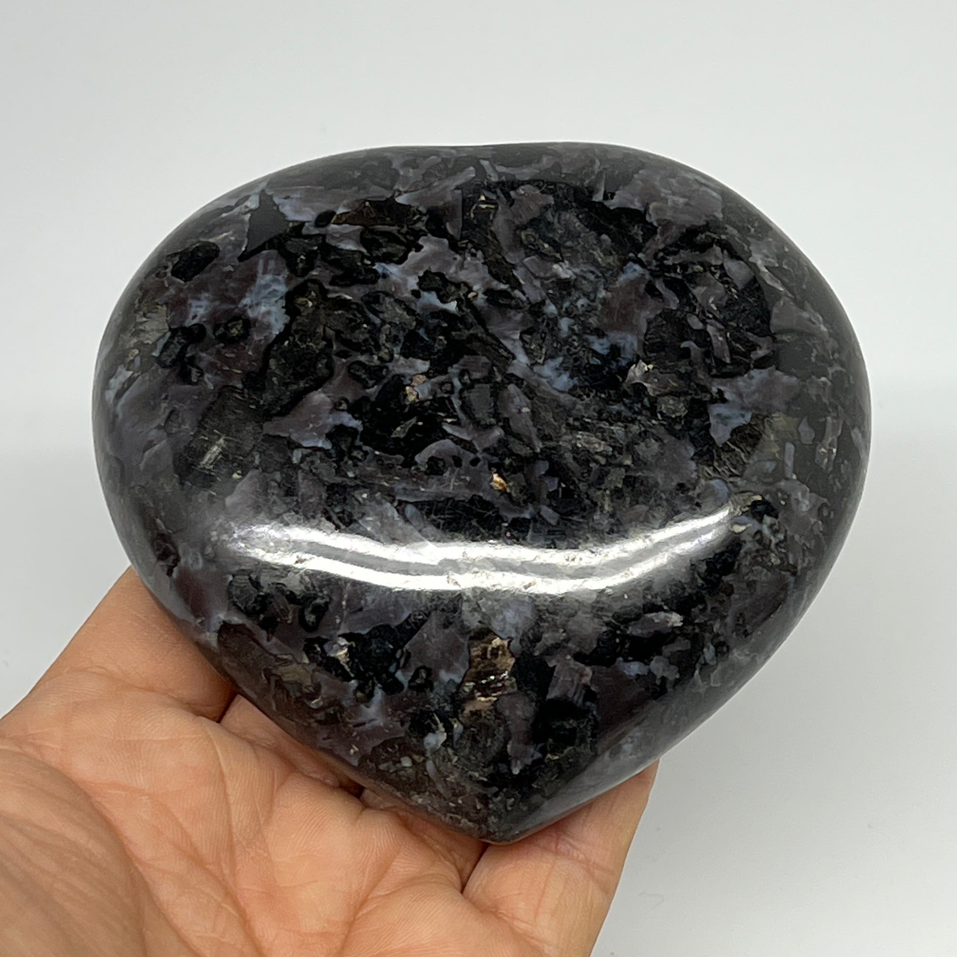 469.3g,3.6"x3.7"x1.3" Indigo Gabro Merlinite Heart Gemstone @Madagascar,B19931