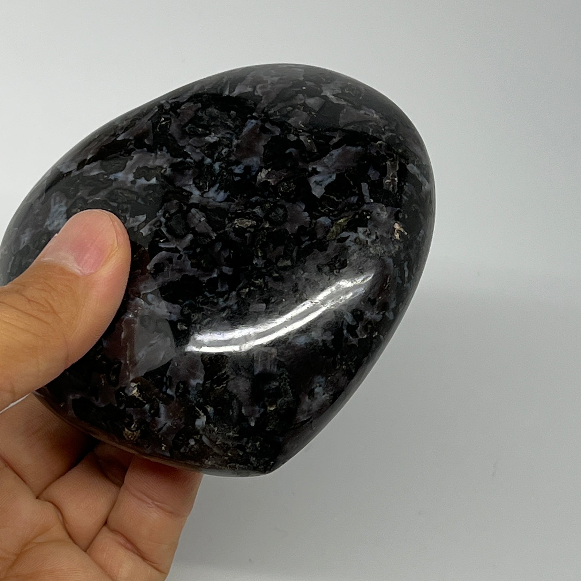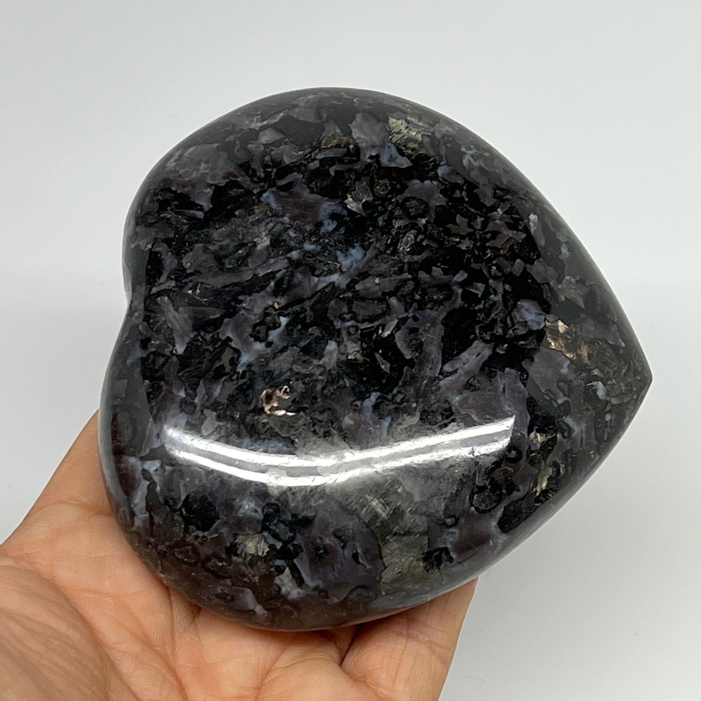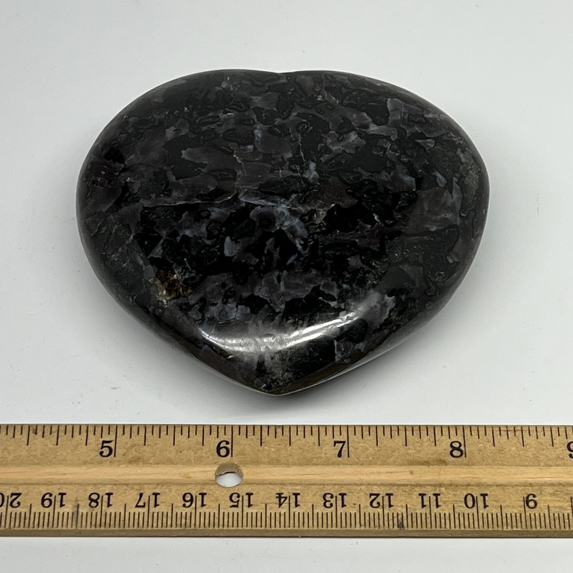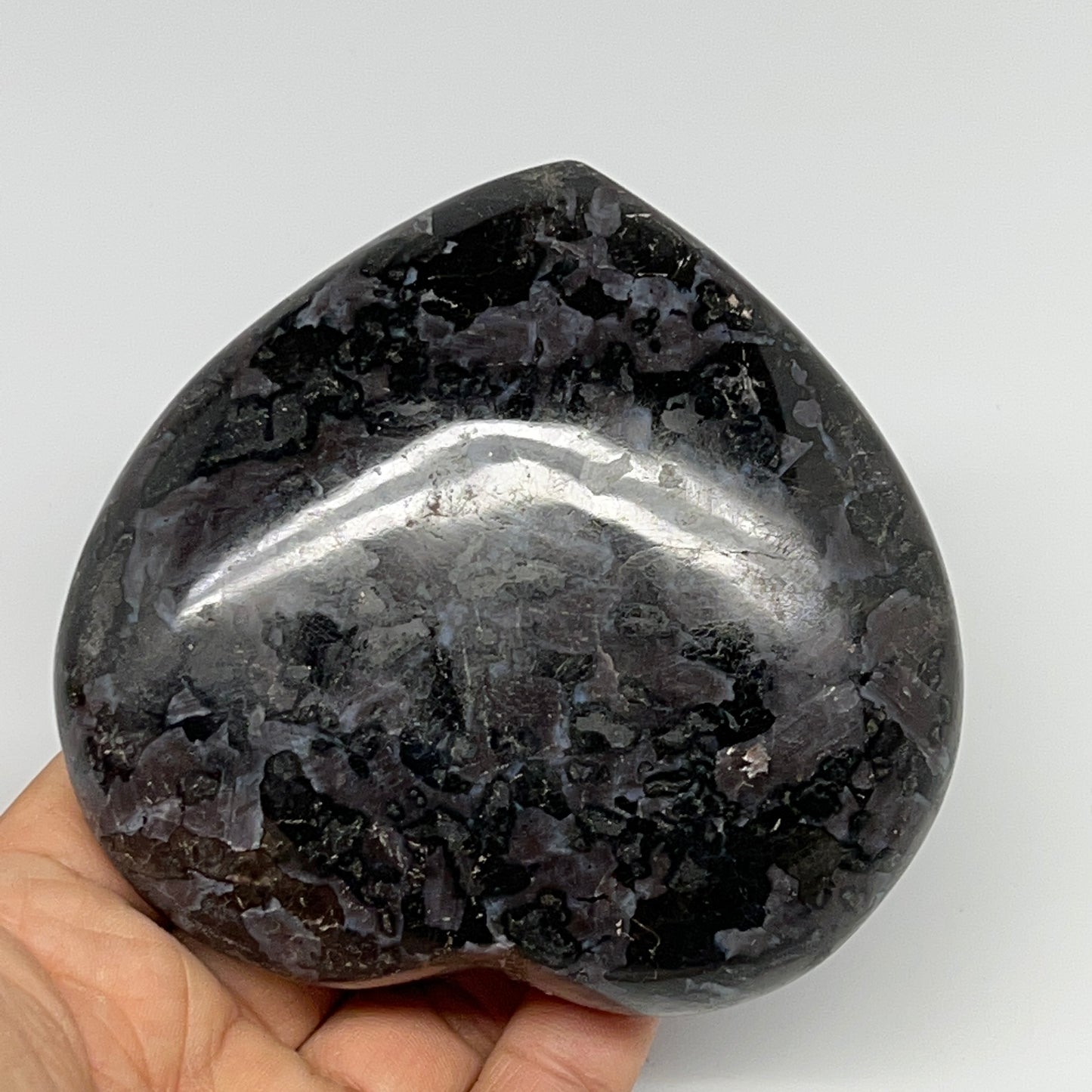 469.3g,3.6"x3.7"x1.3" Indigo Gabro Merlinite Heart Gemstone @Madagascar,B19931