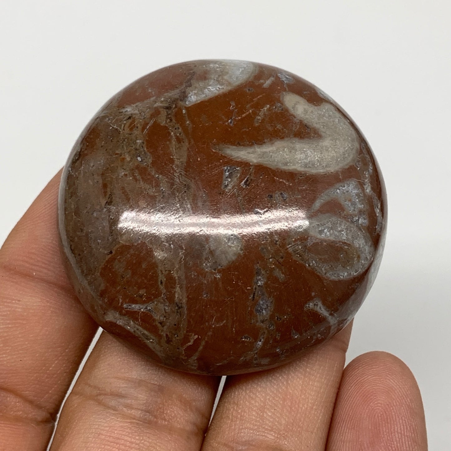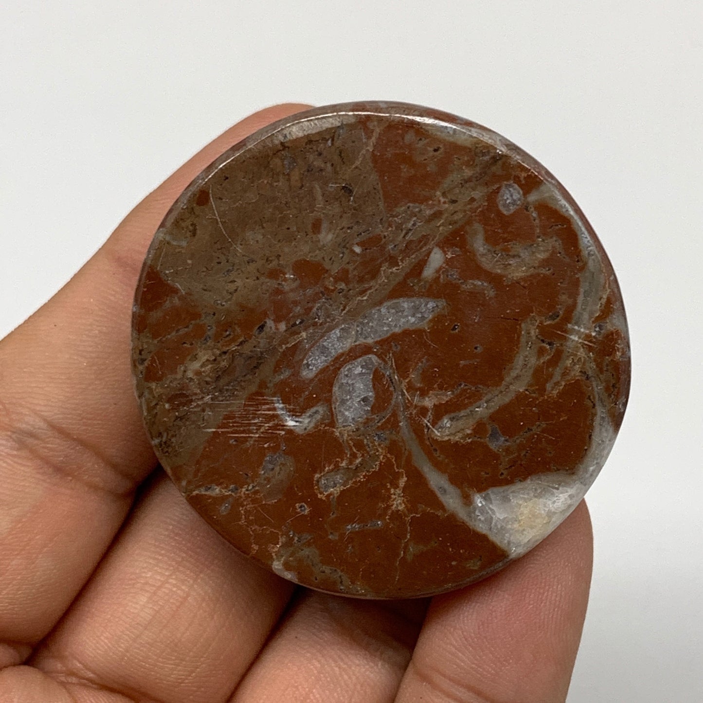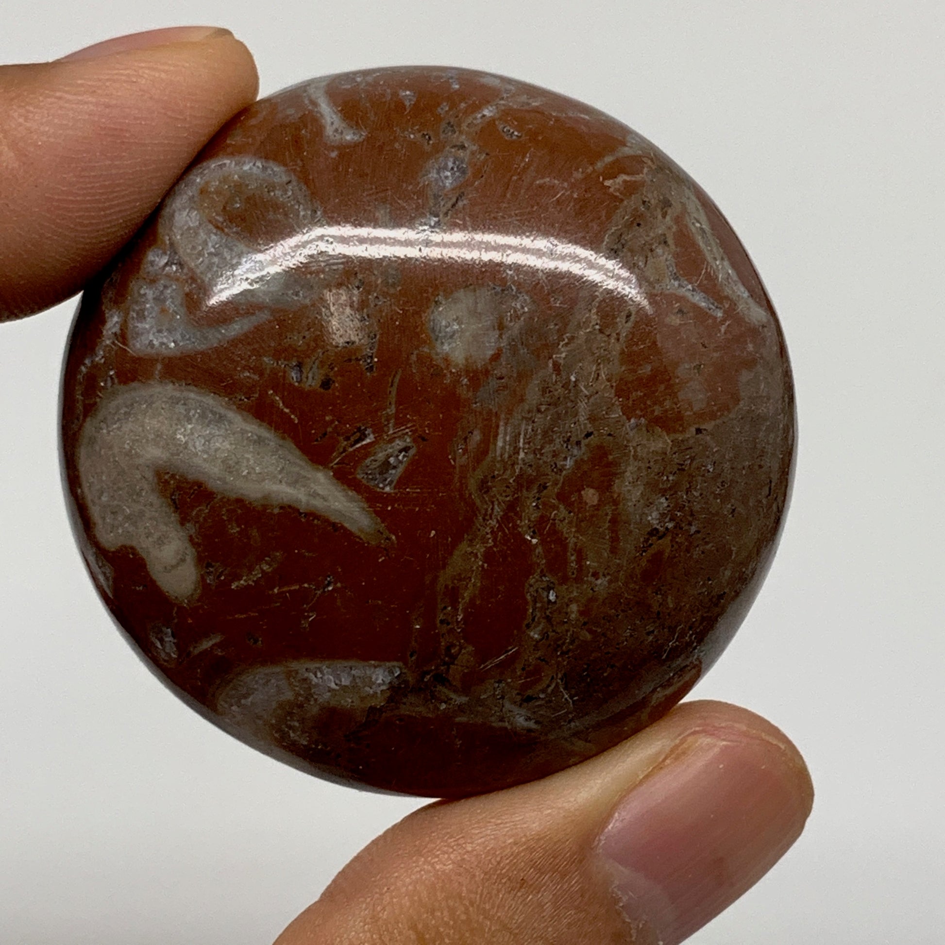47.3g, 1.8"x0.6", Natural Untreated Red Shell Fossils Round Palms-tone, F1149