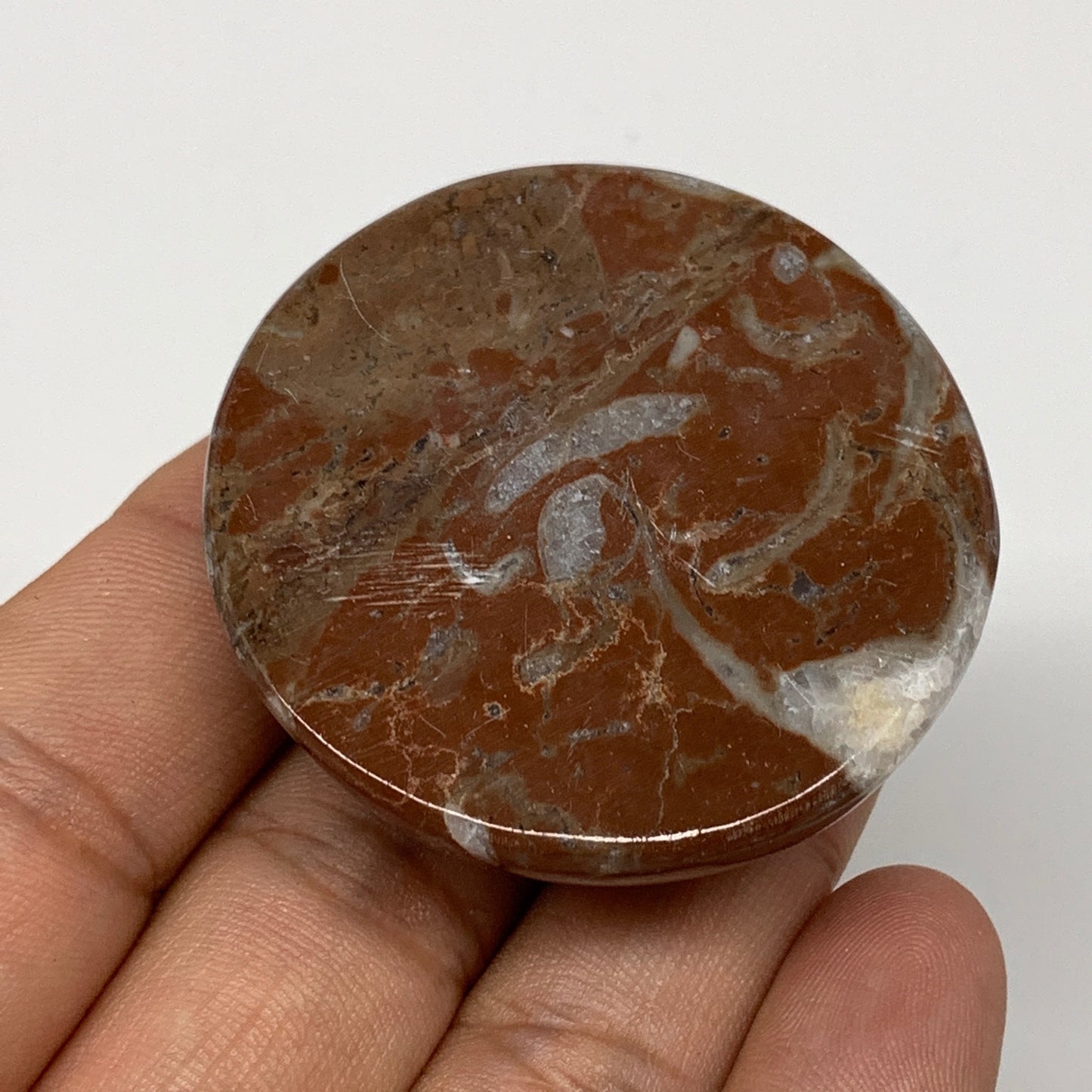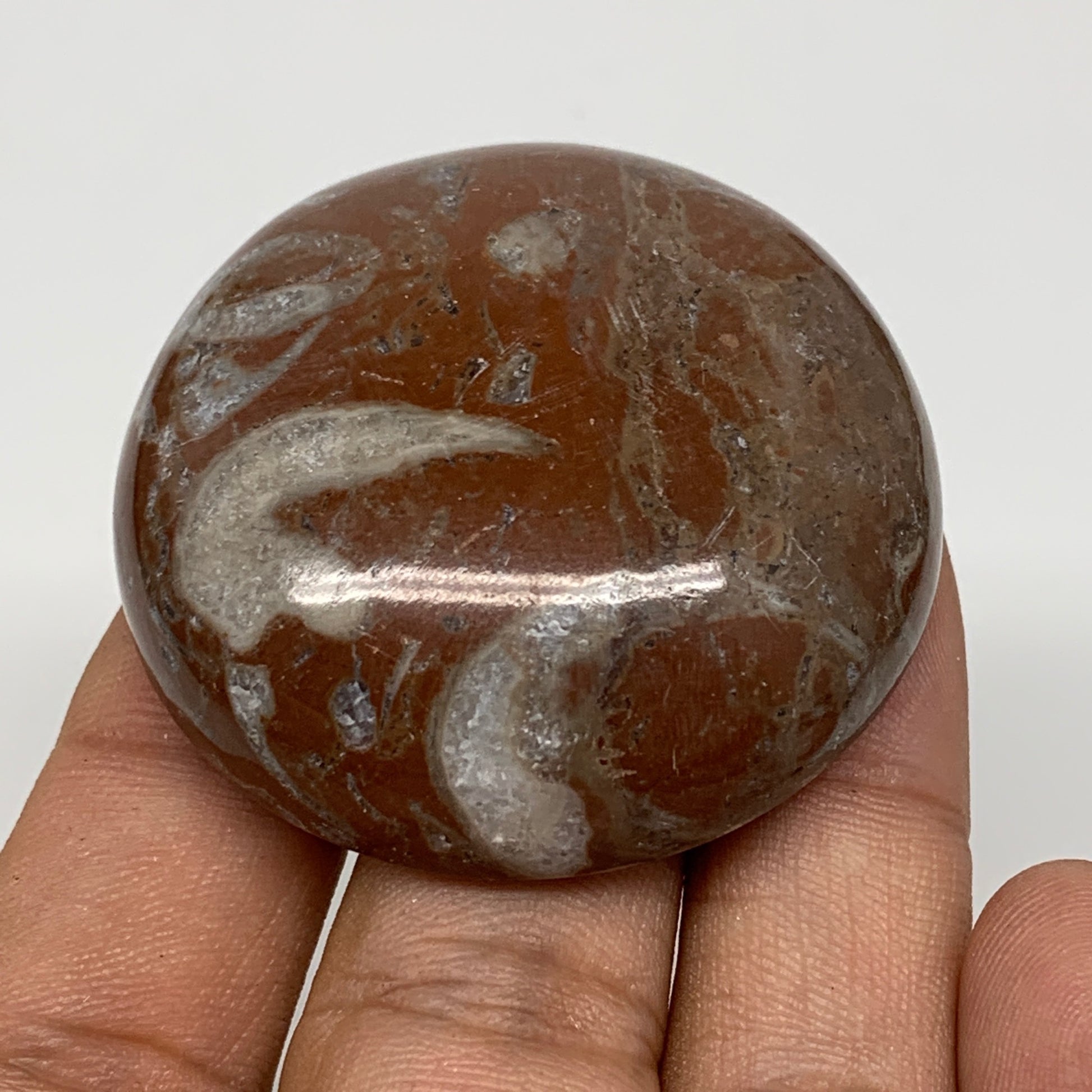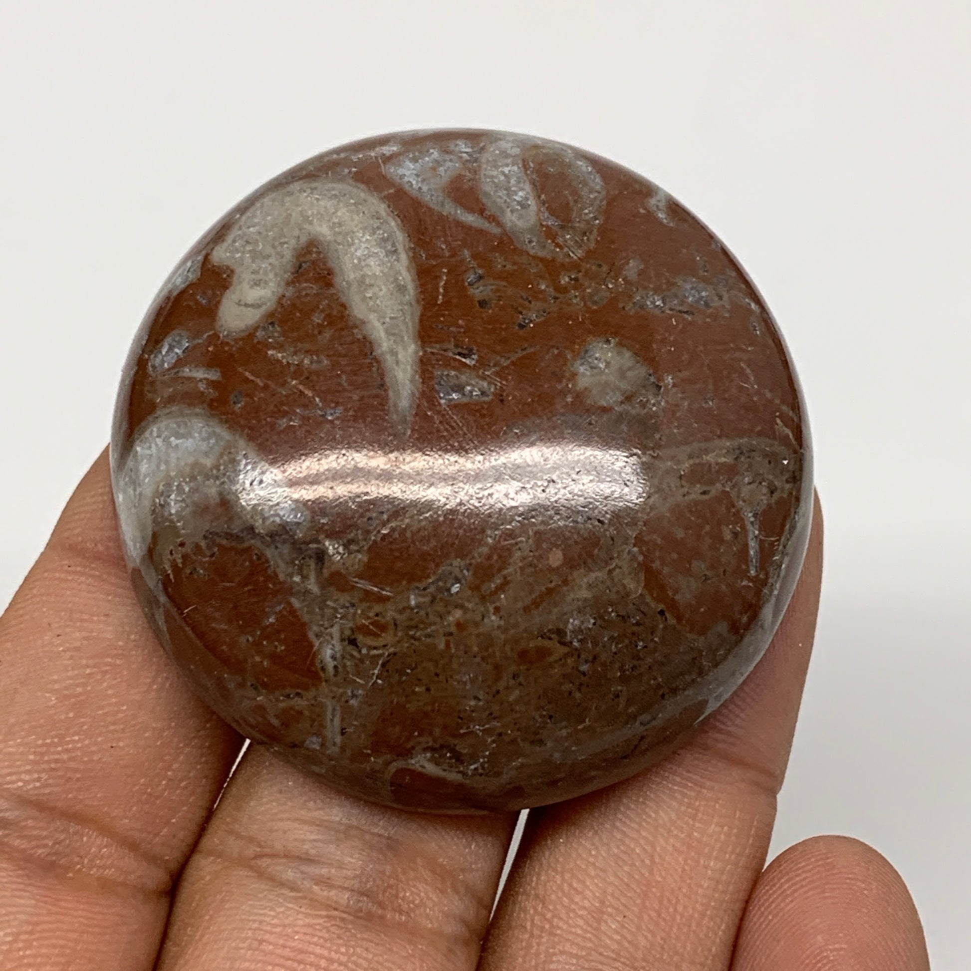 47.3g, 1.8"x0.6", Natural Untreated Red Shell Fossils Round Palms-tone, F1149