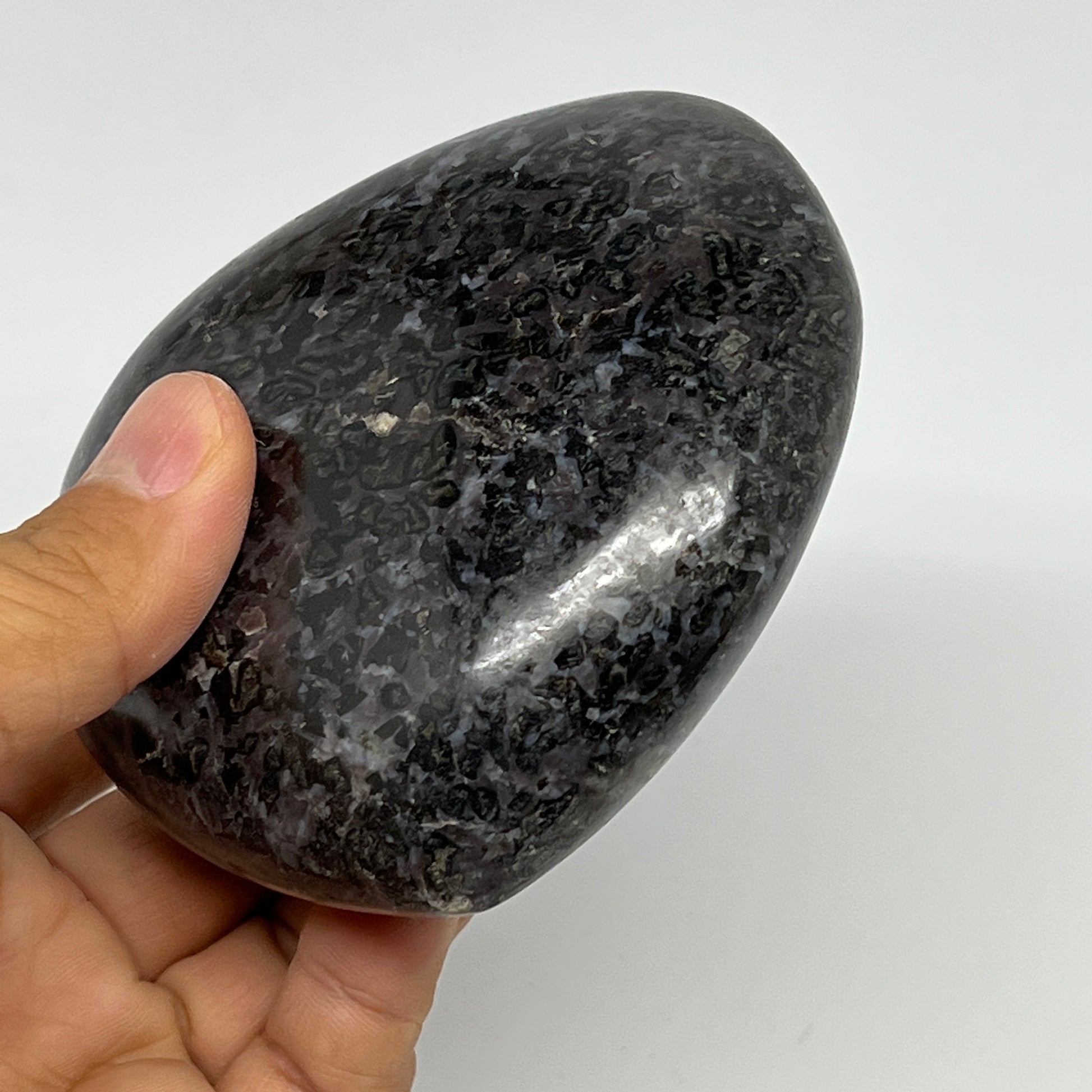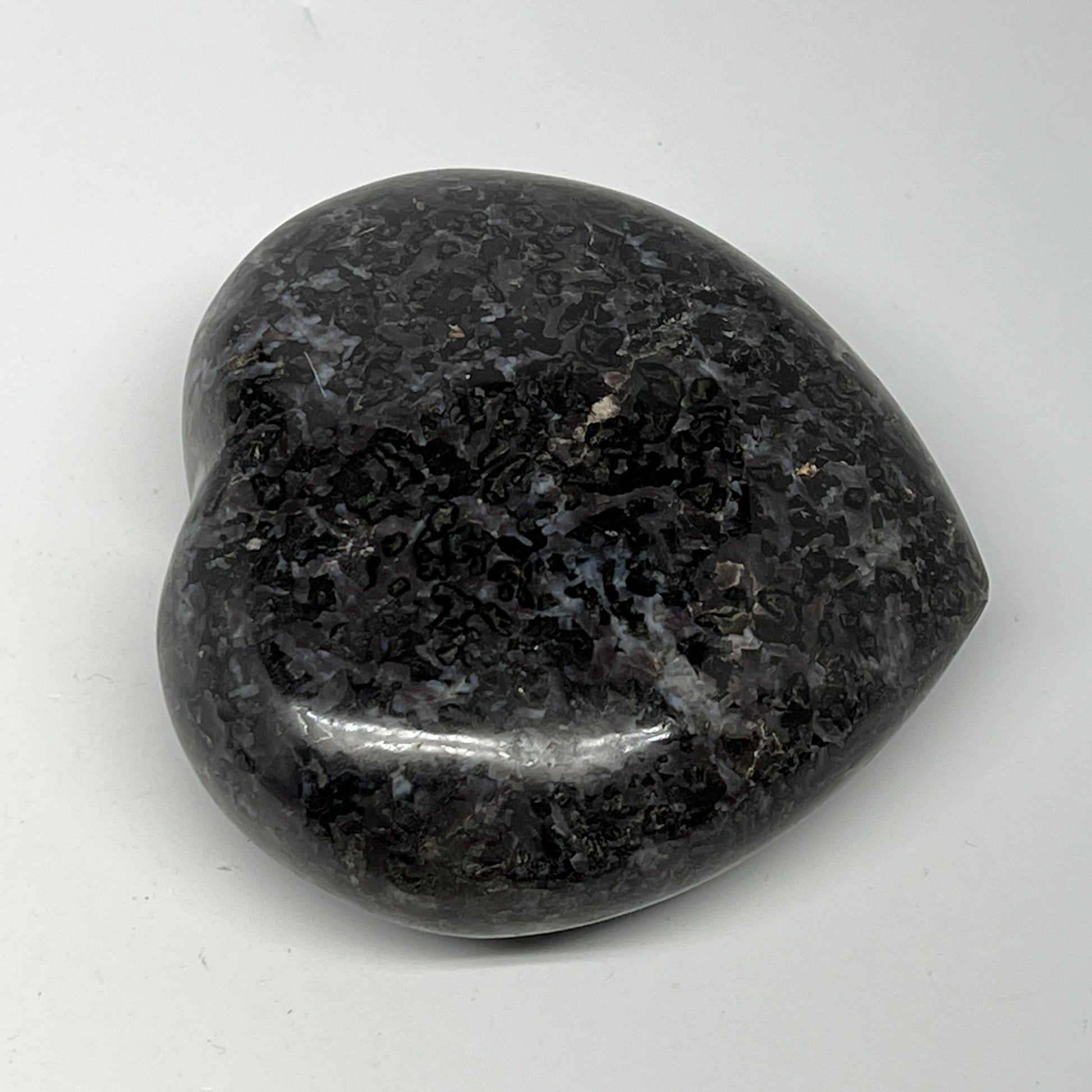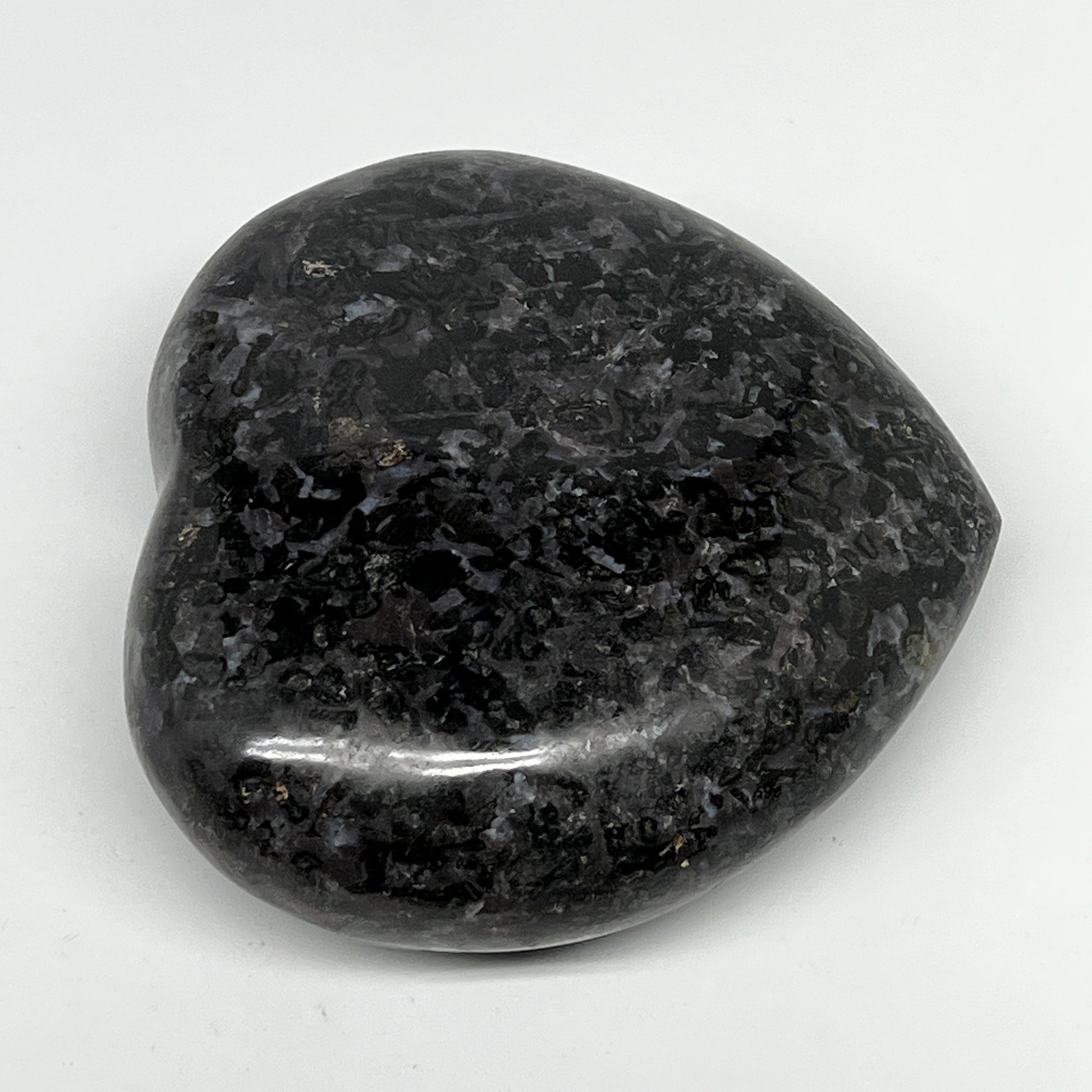 472g,3.5"x3.6"x1.4" Indigo Gabro Merlinite Heart Gemstone @Madagascar,B19927