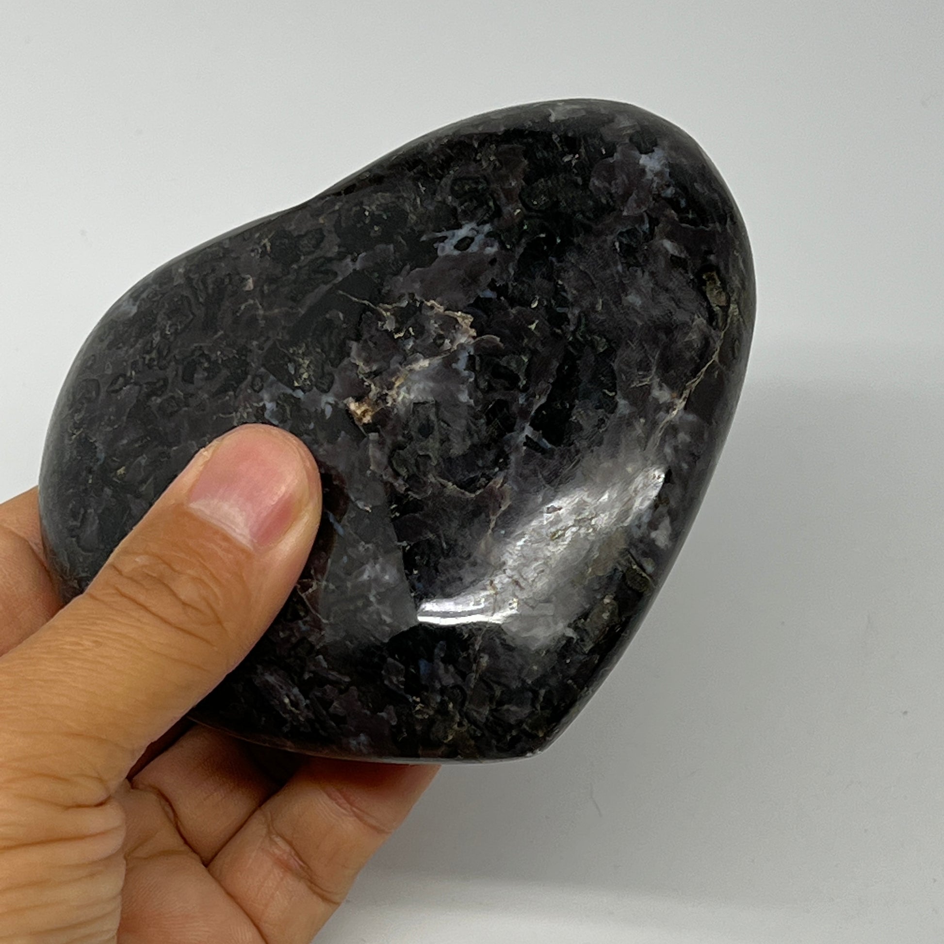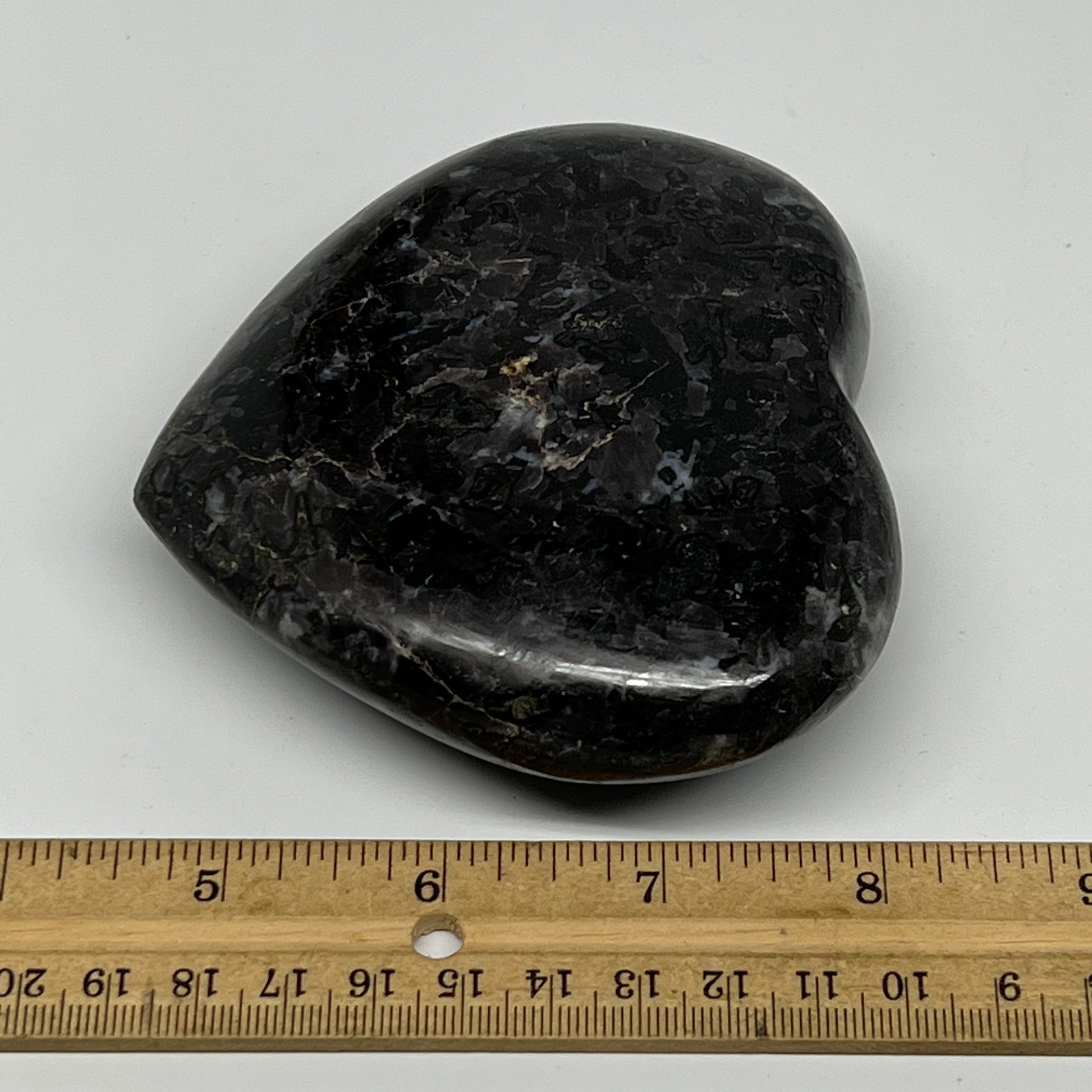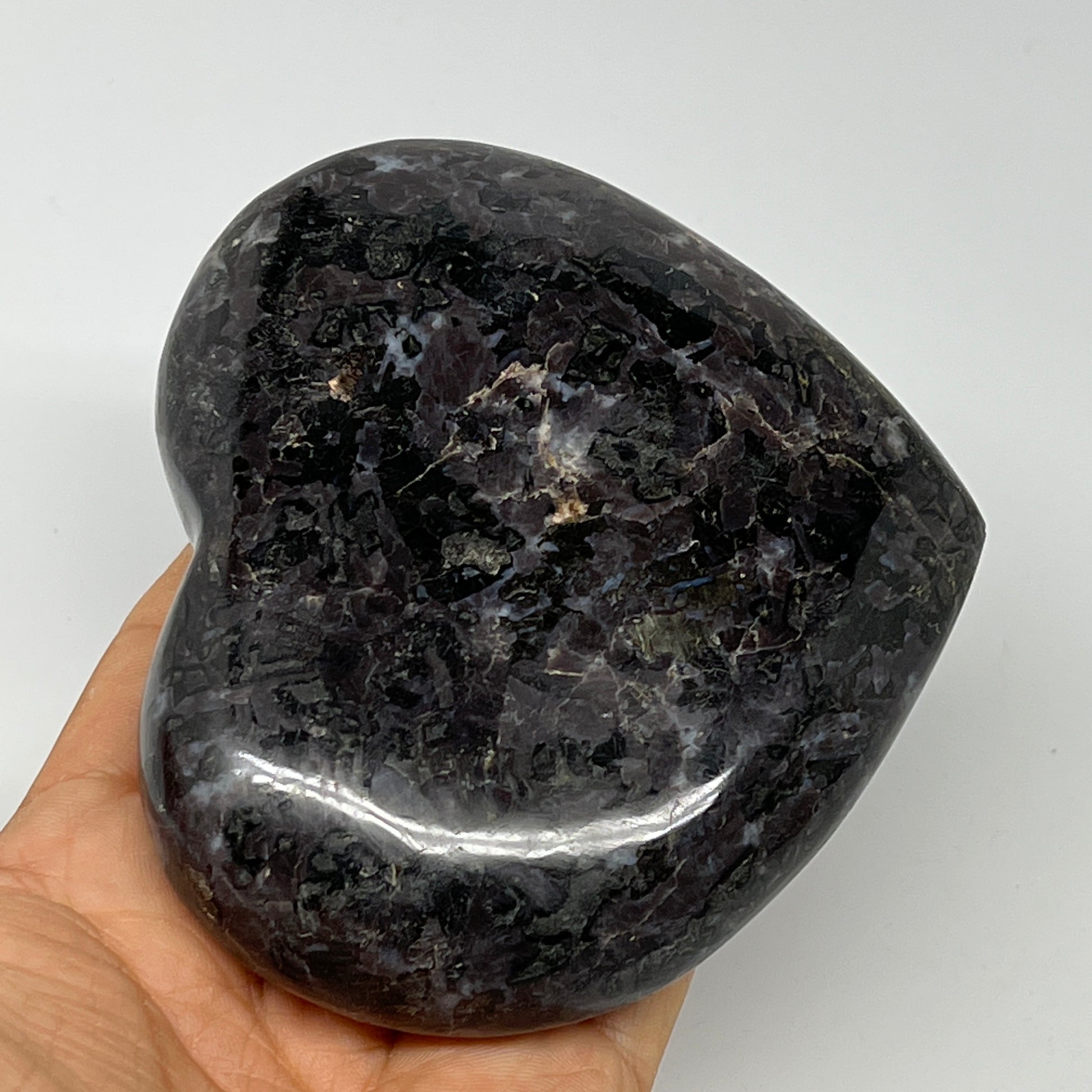 474.4g,3.6"x4.1"x1.2" Indigo Gabro Merlinite Heart Gemstone @Madagascar,B19953