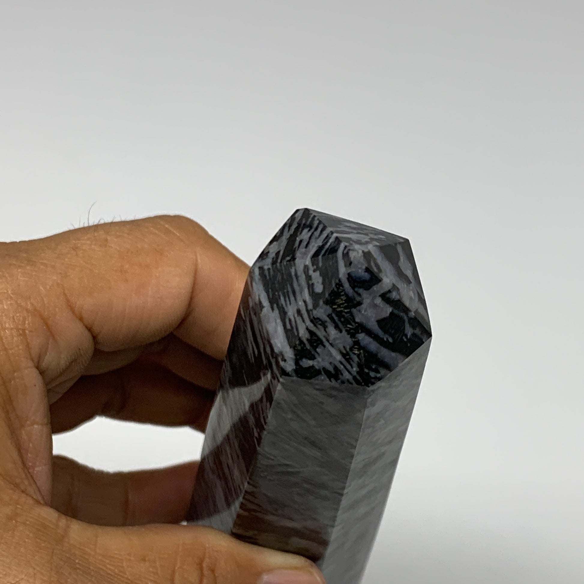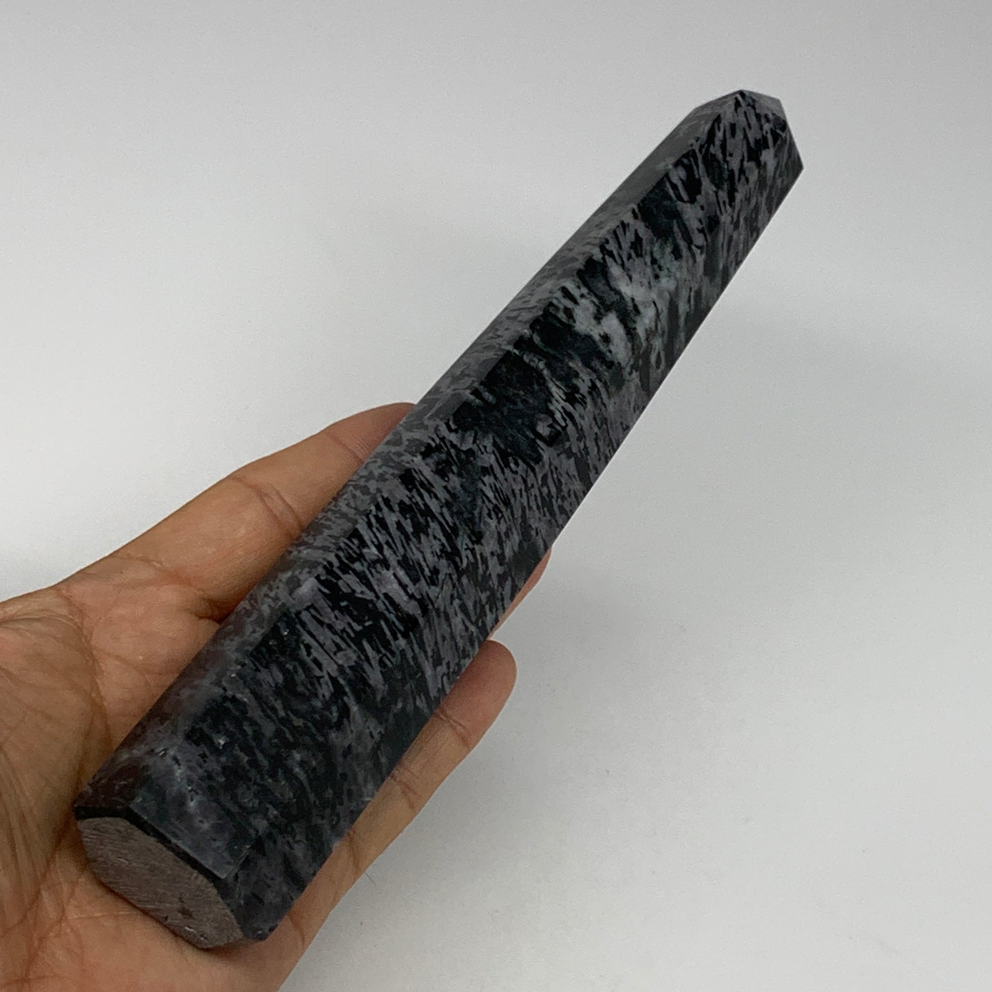 475.2g, 8.3"x1.6"x1.4" Indigo Gabro Merlinite Point Tower @Madagascar,B18306