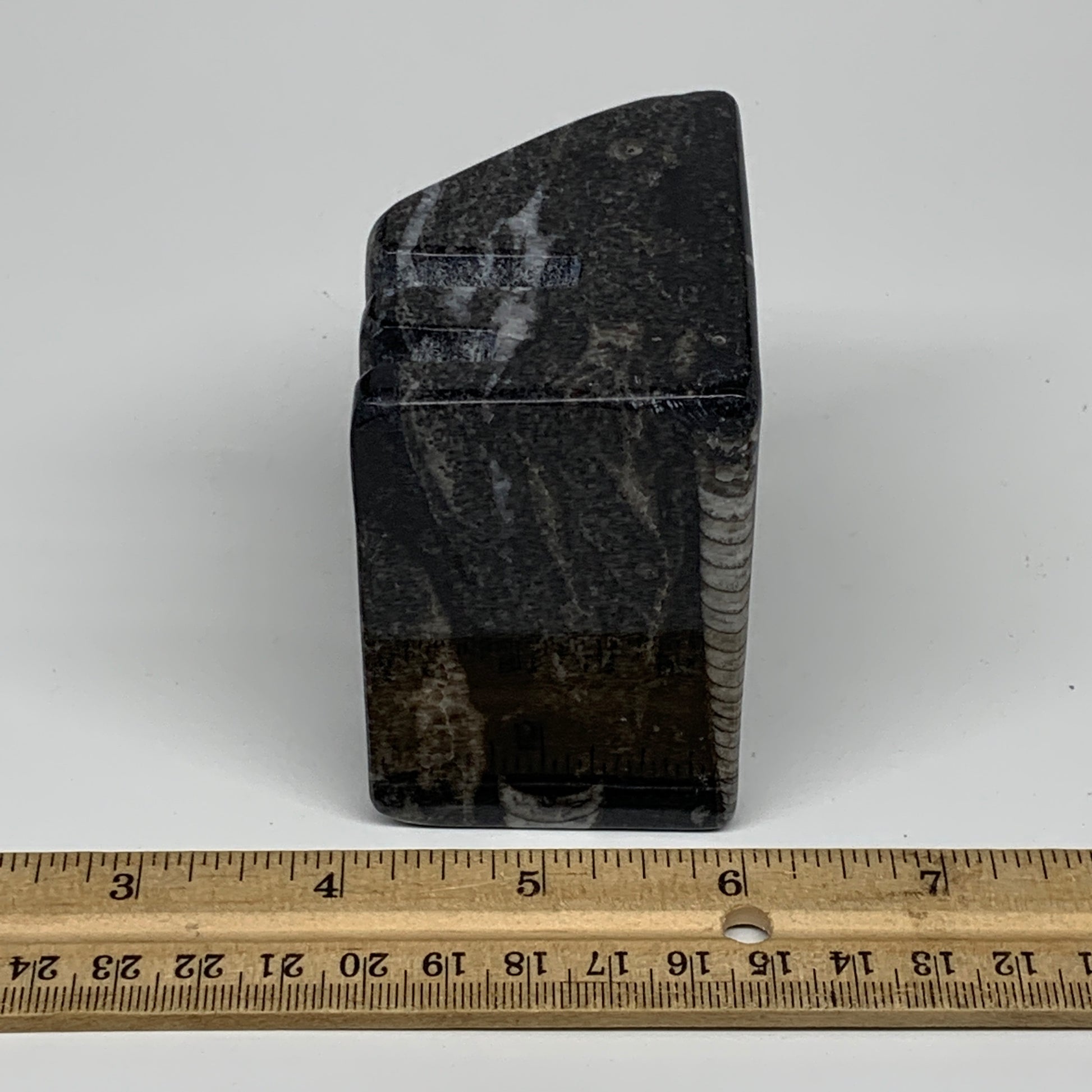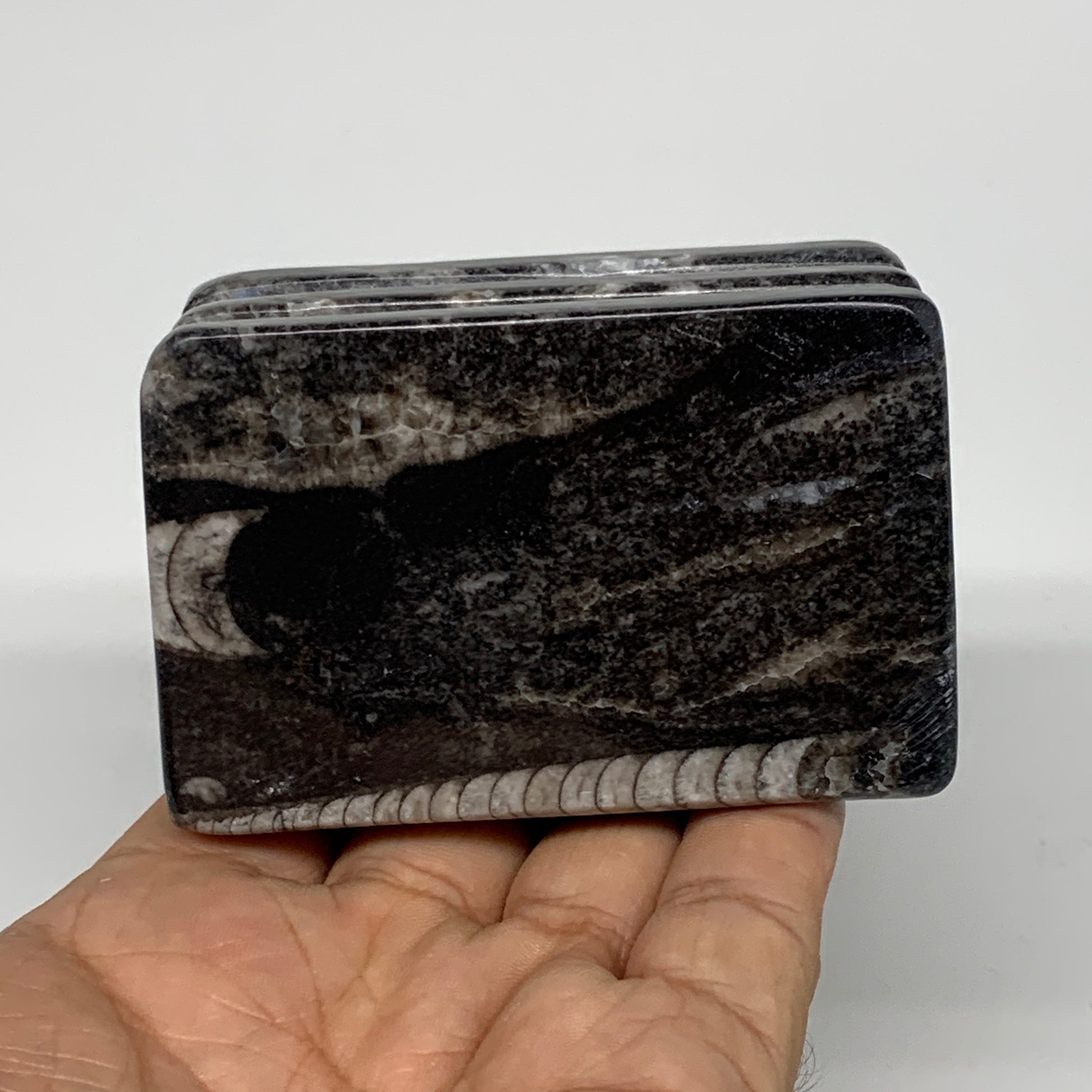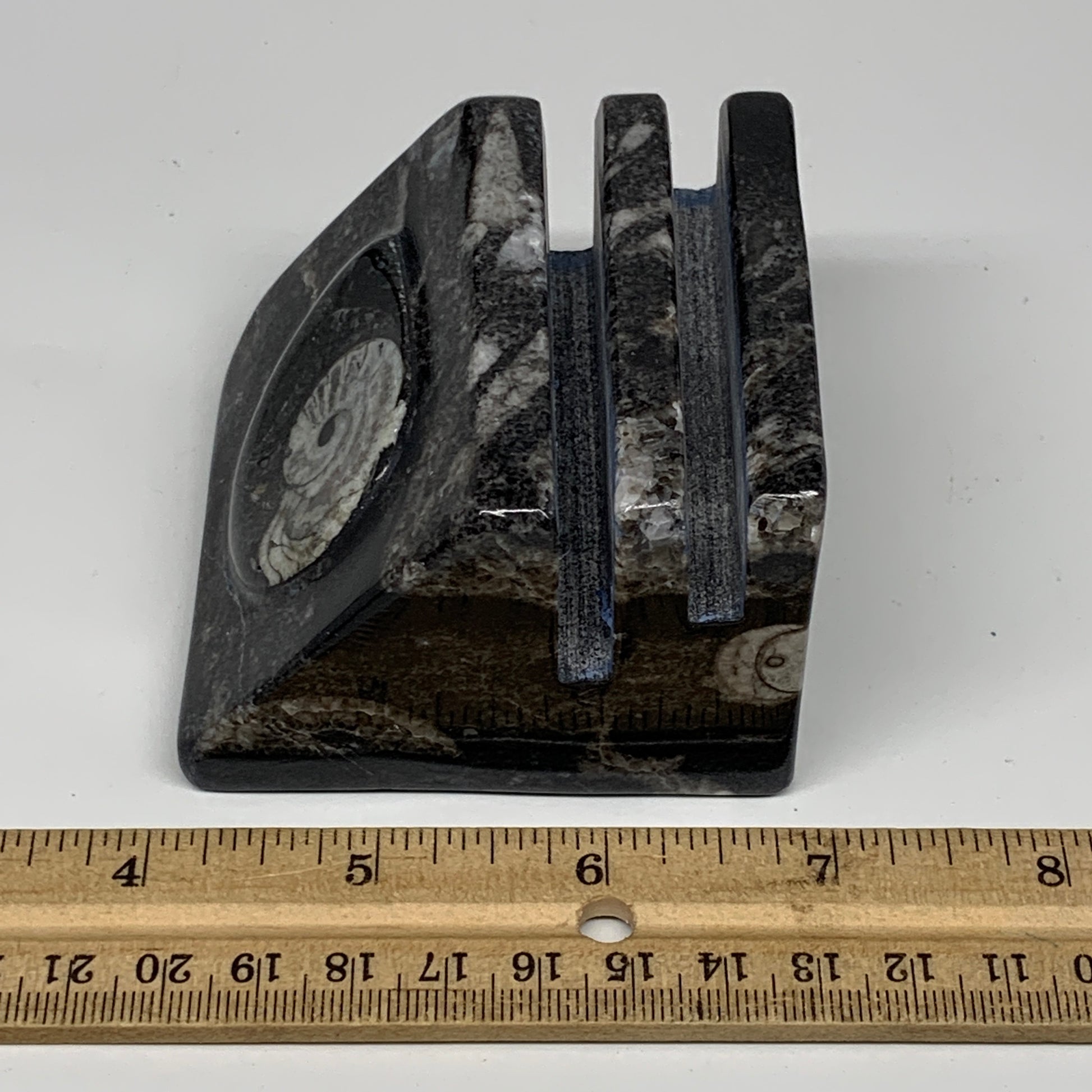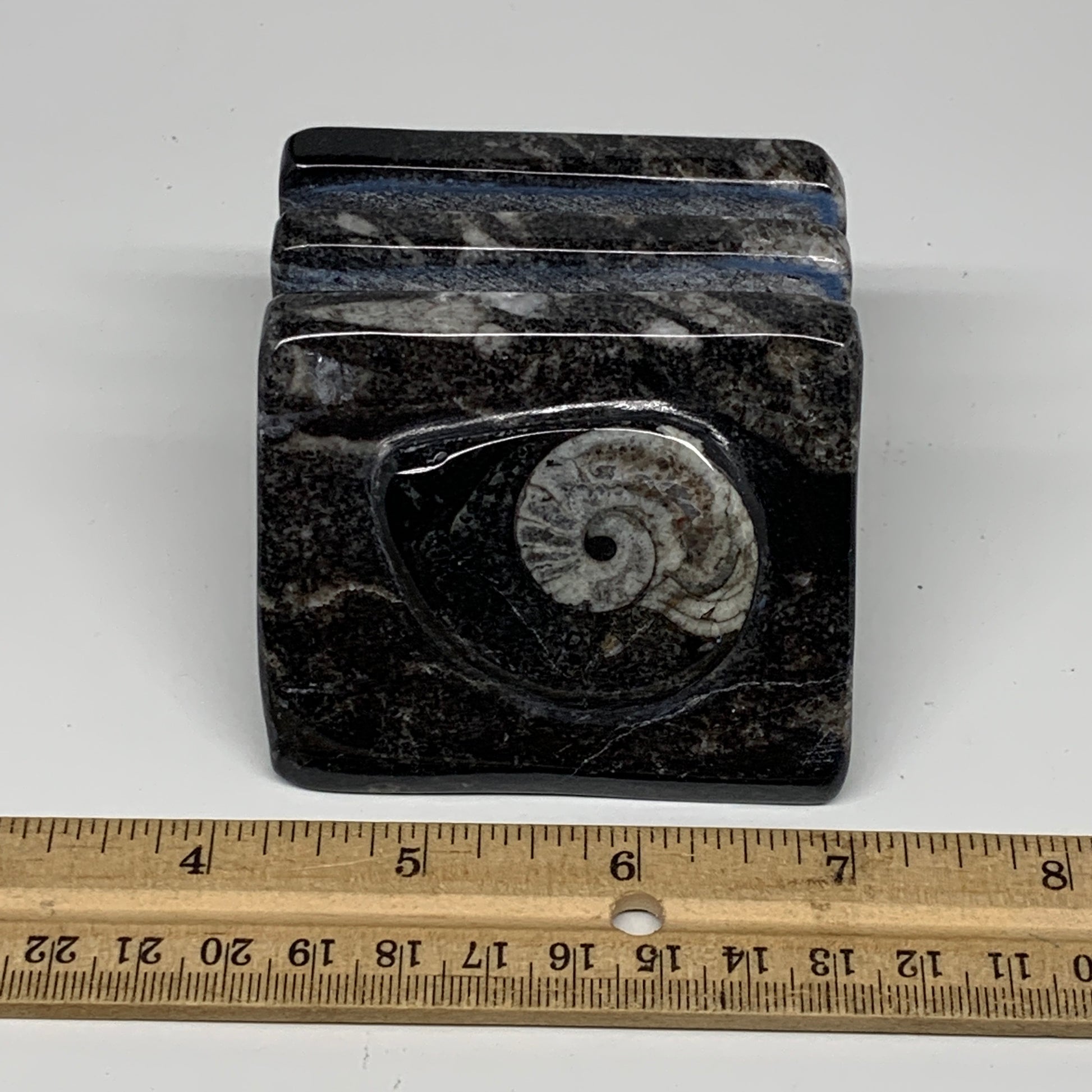 476g, 2.7" x 2.8" x 1.9" Black Fossils Orthoceras Ammonite Business Card Holder,B8223