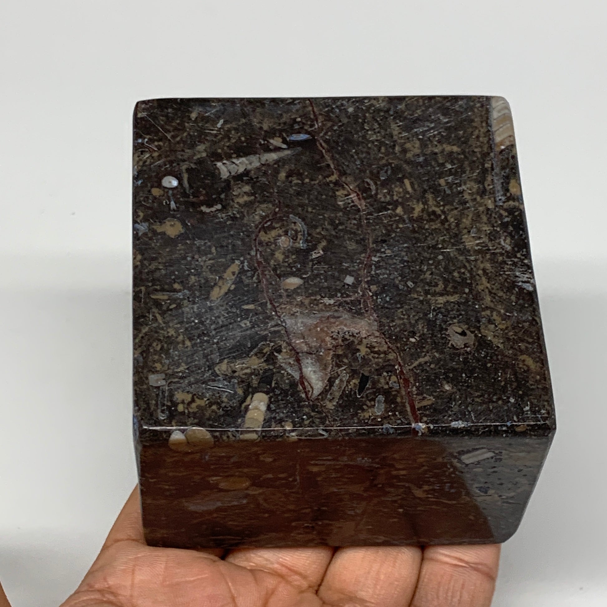 498g, 2.9" x 2.8" x 1.9" Fossils Orthoceras Ammonite Business Card Holder,B8102