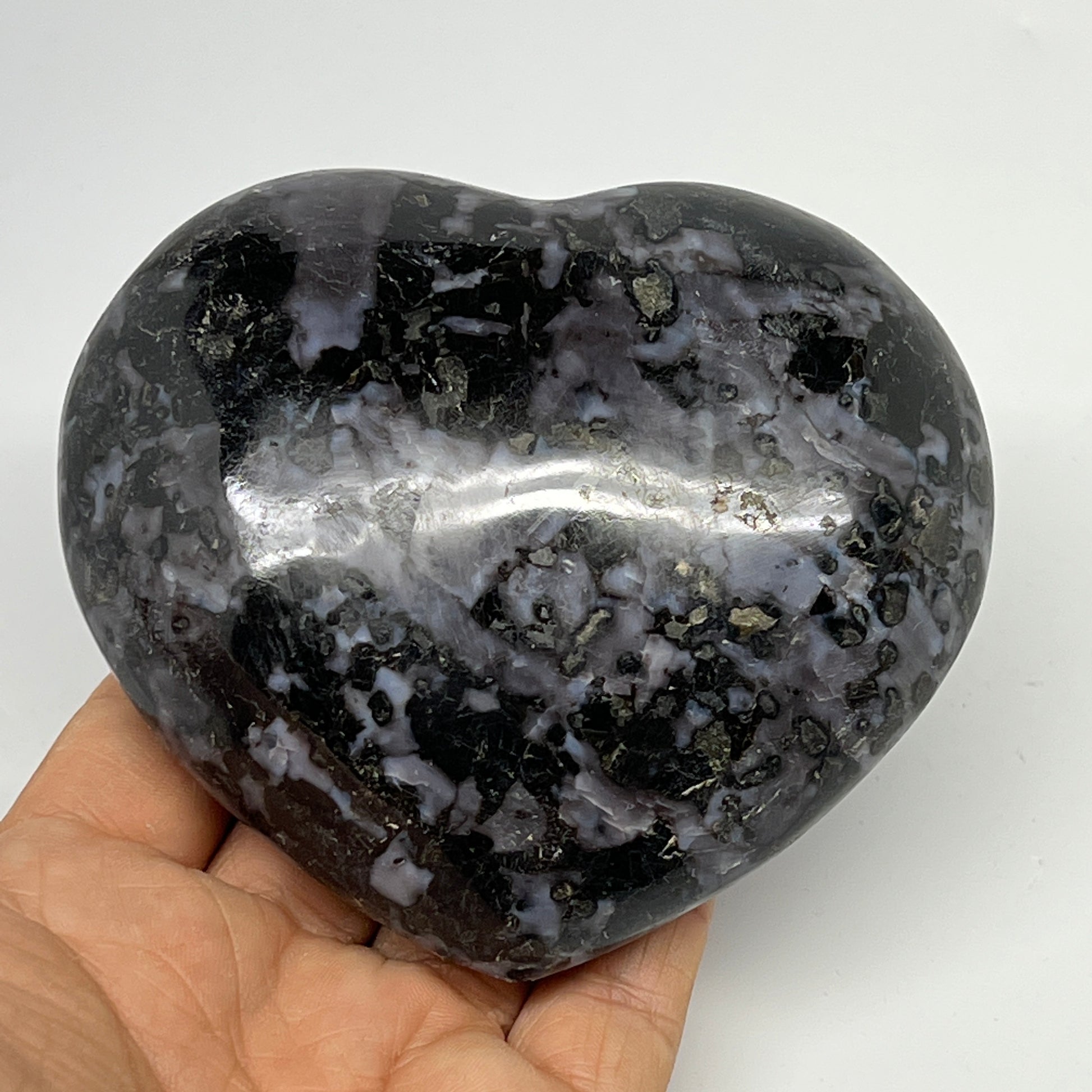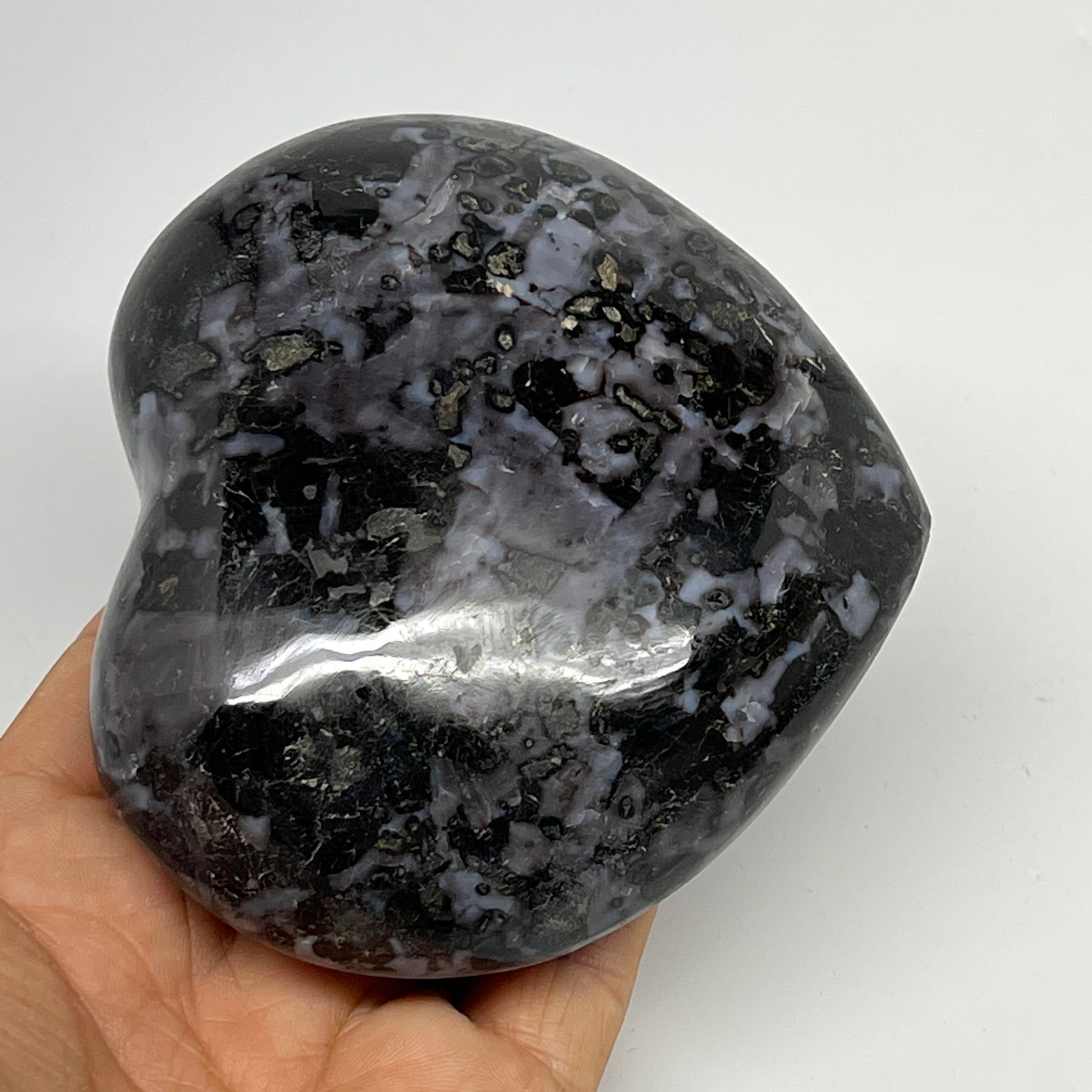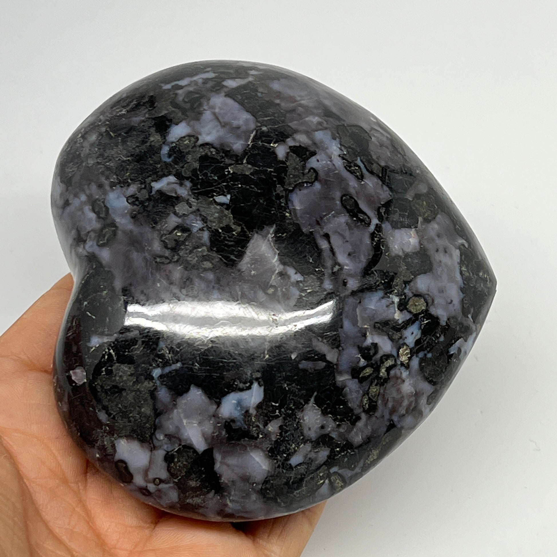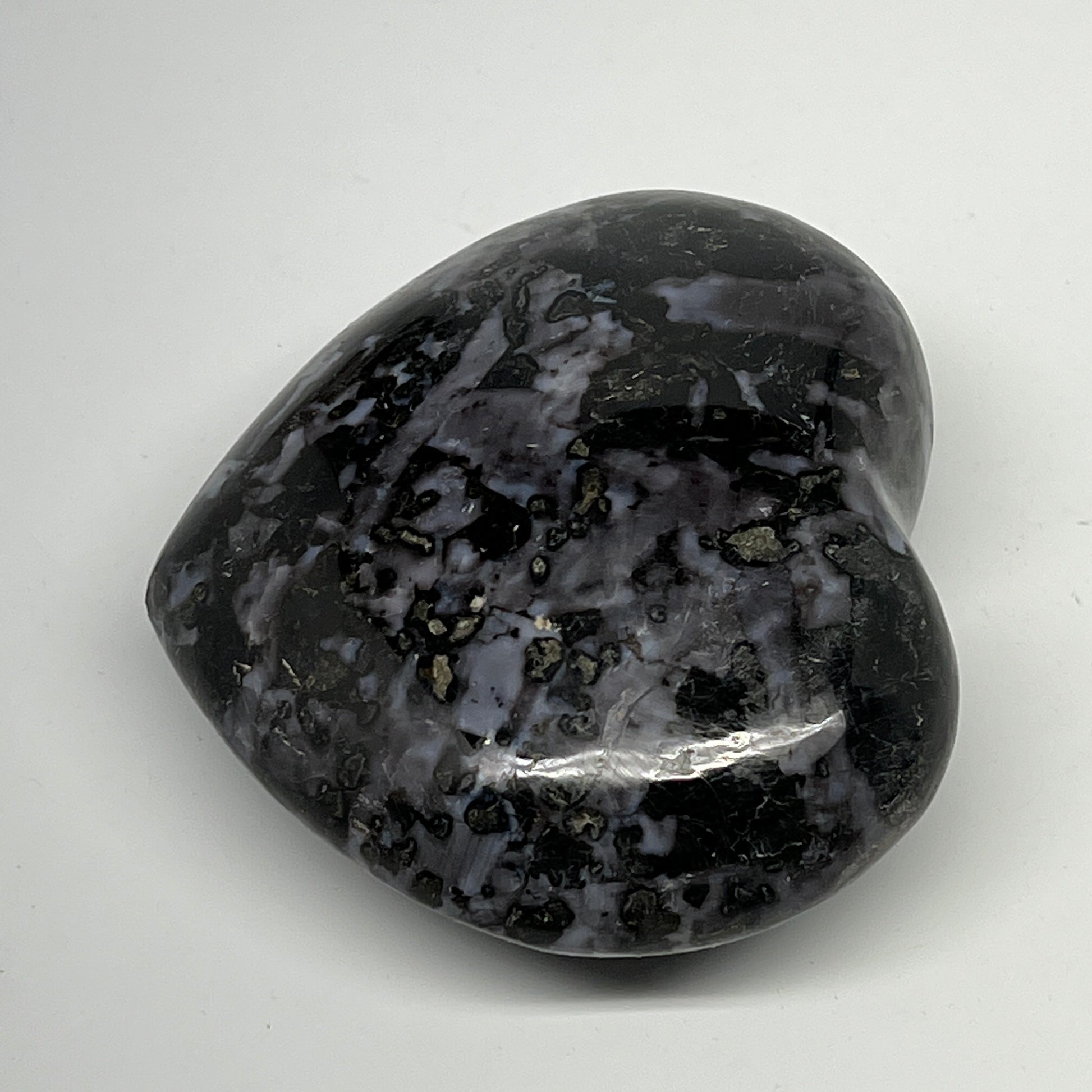 499.5g,3.5"x3.8"x1.6" Indigo Gabro Merlinite Heart Gemstone @Madagascar, B19955