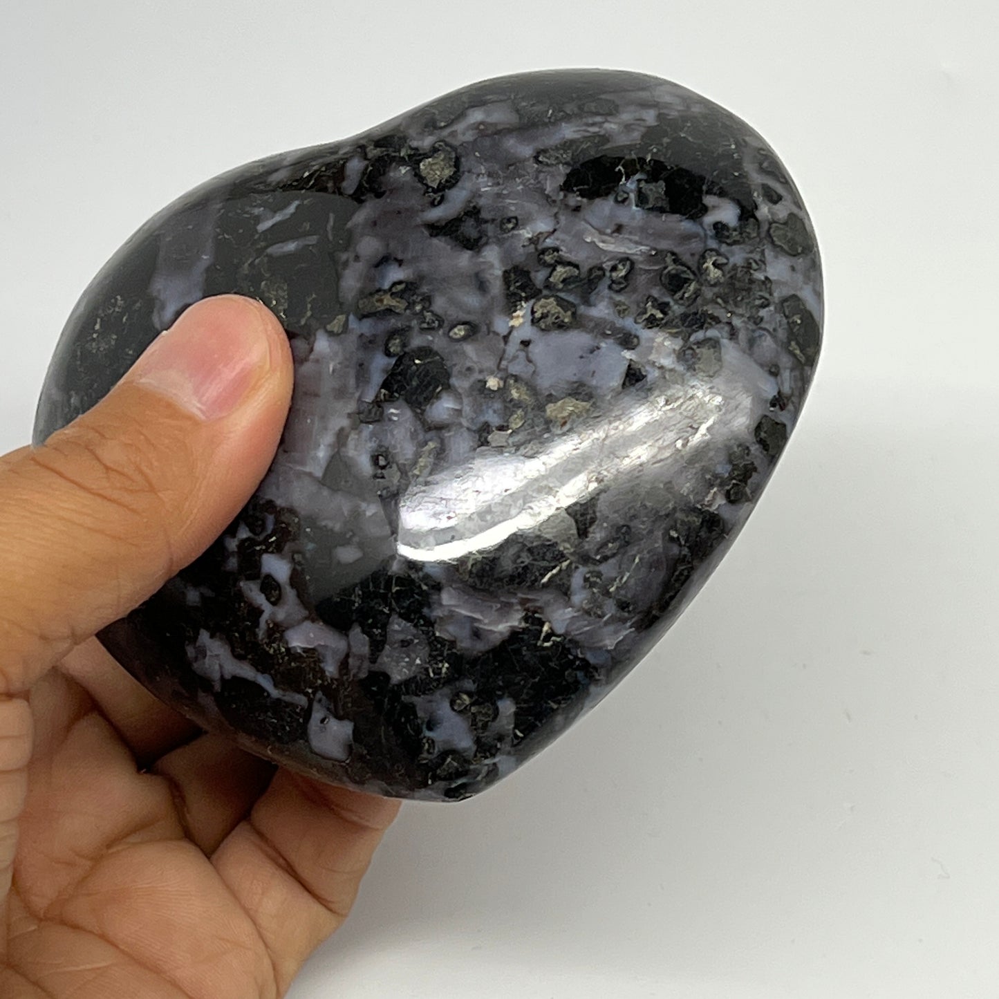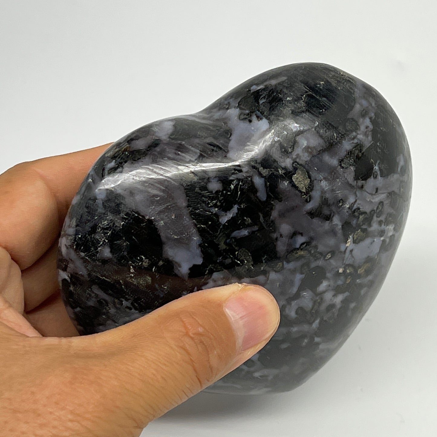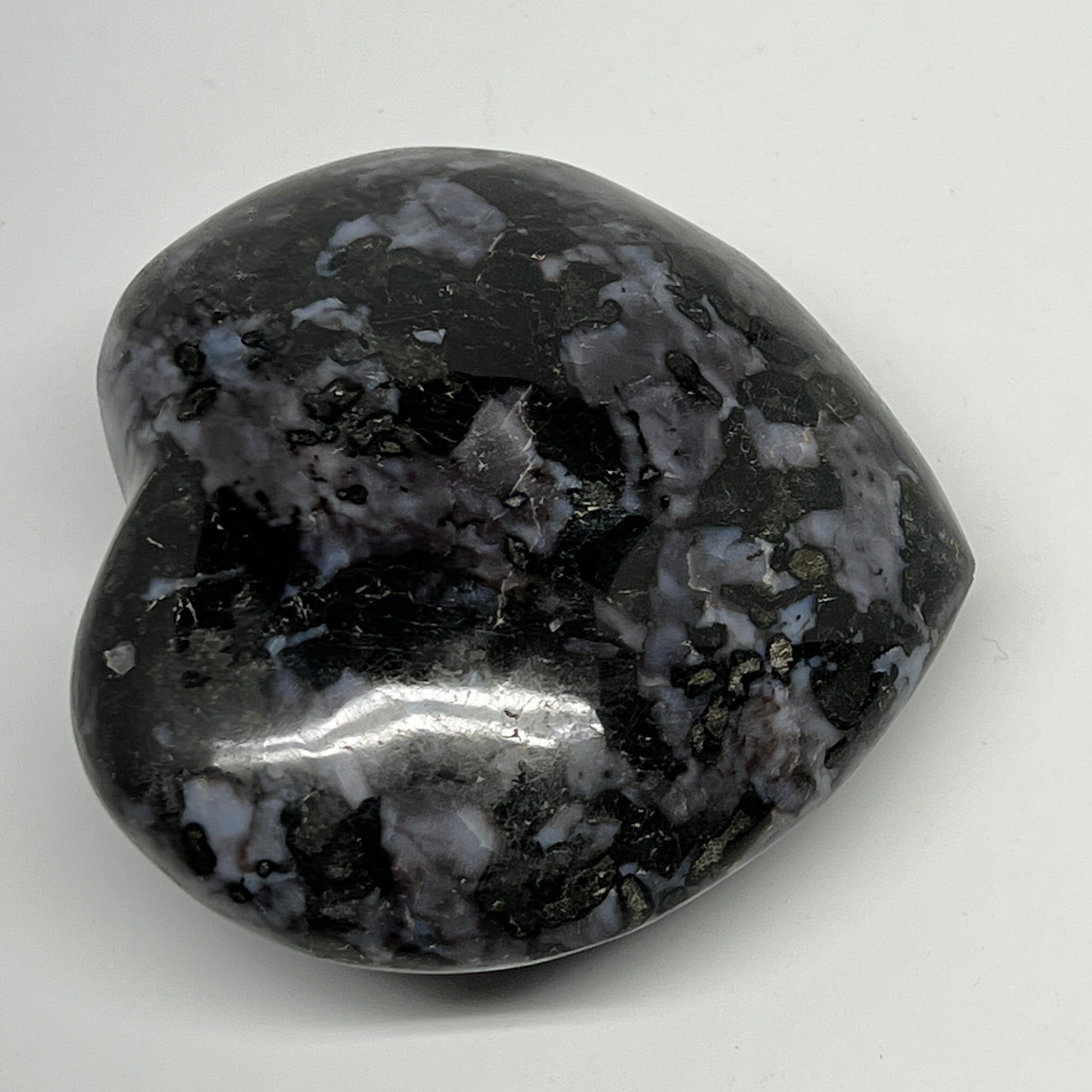 499.5g,3.5"x3.8"x1.6" Indigo Gabro Merlinite Heart Gemstone @Madagascar, B19955