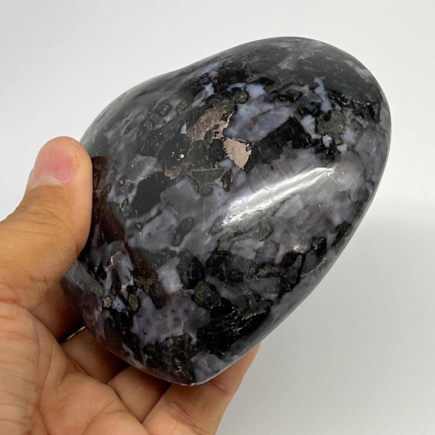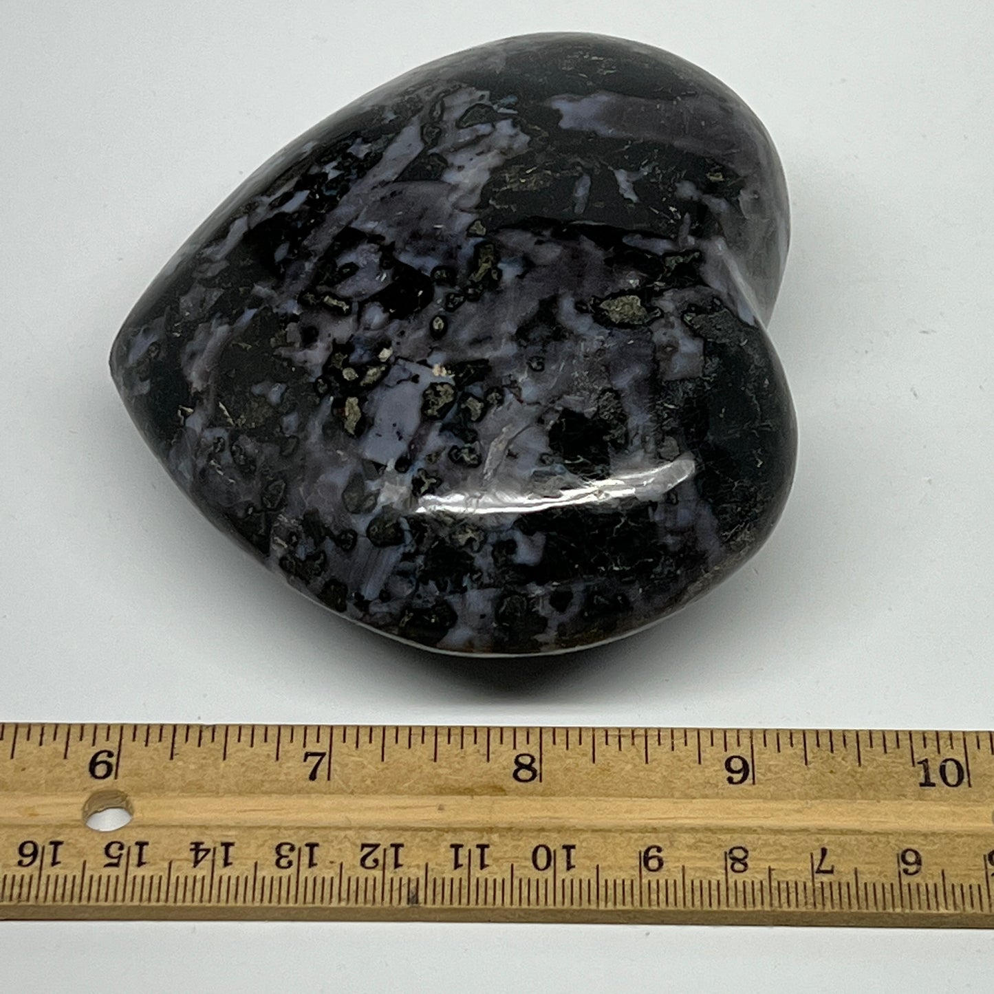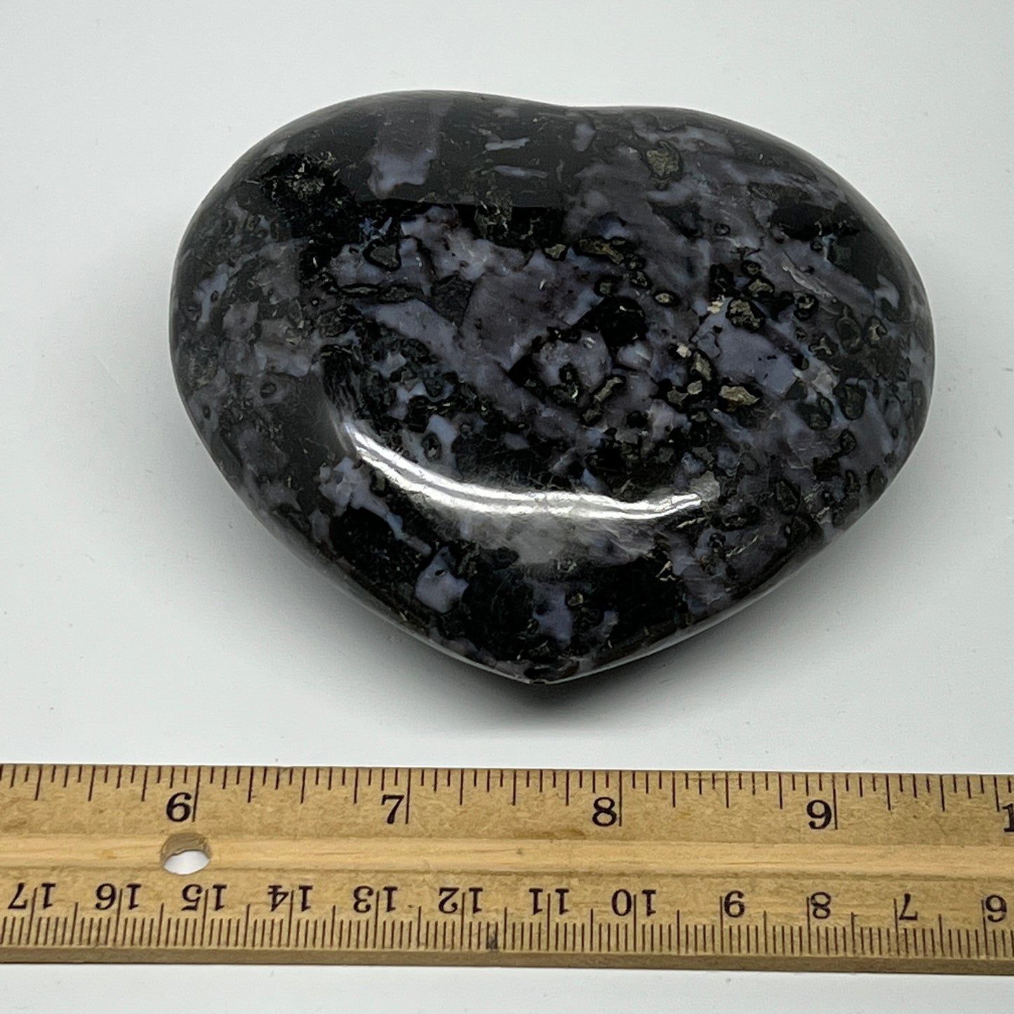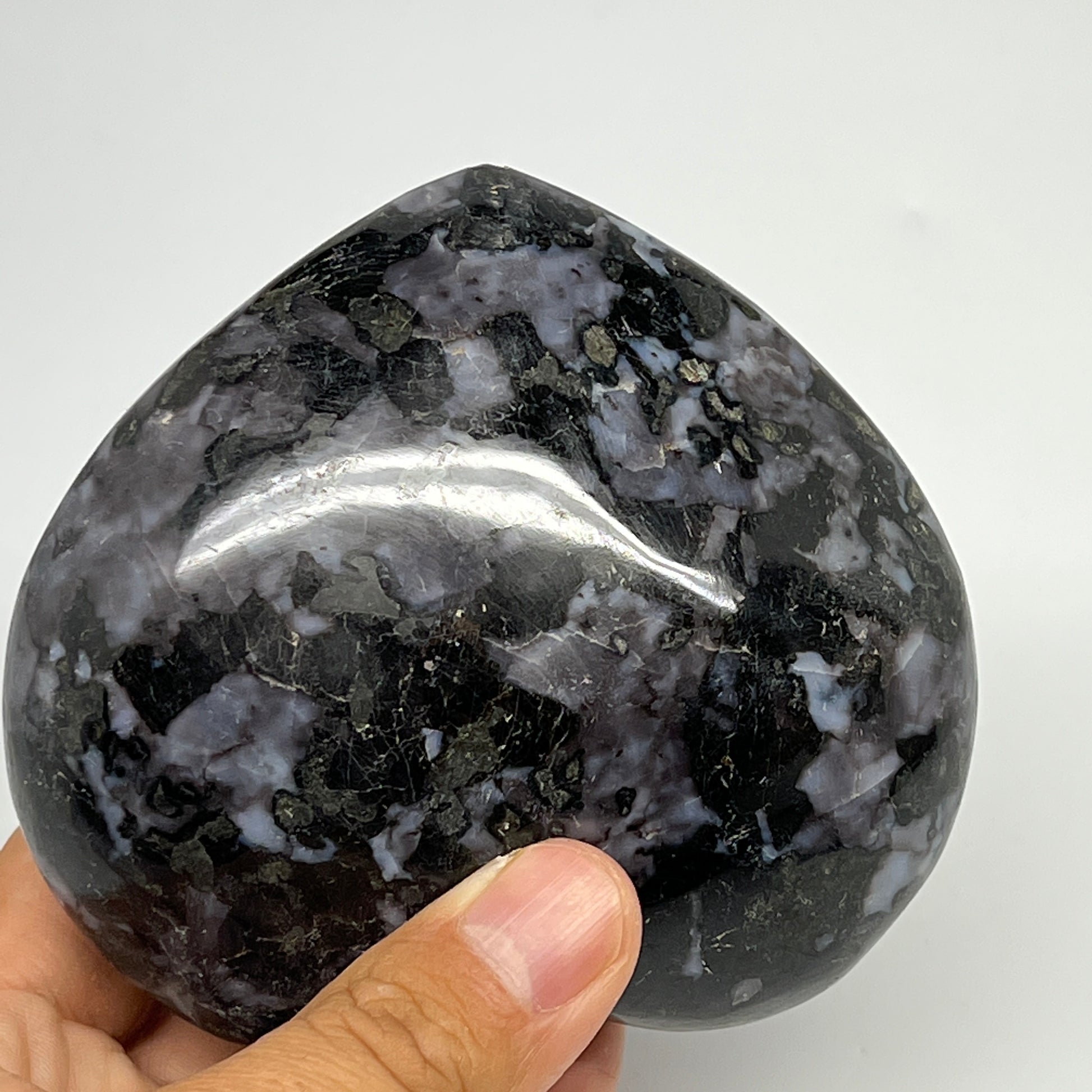 499.5g,3.5"x3.8"x1.6" Indigo Gabro Merlinite Heart Gemstone @Madagascar, B19955