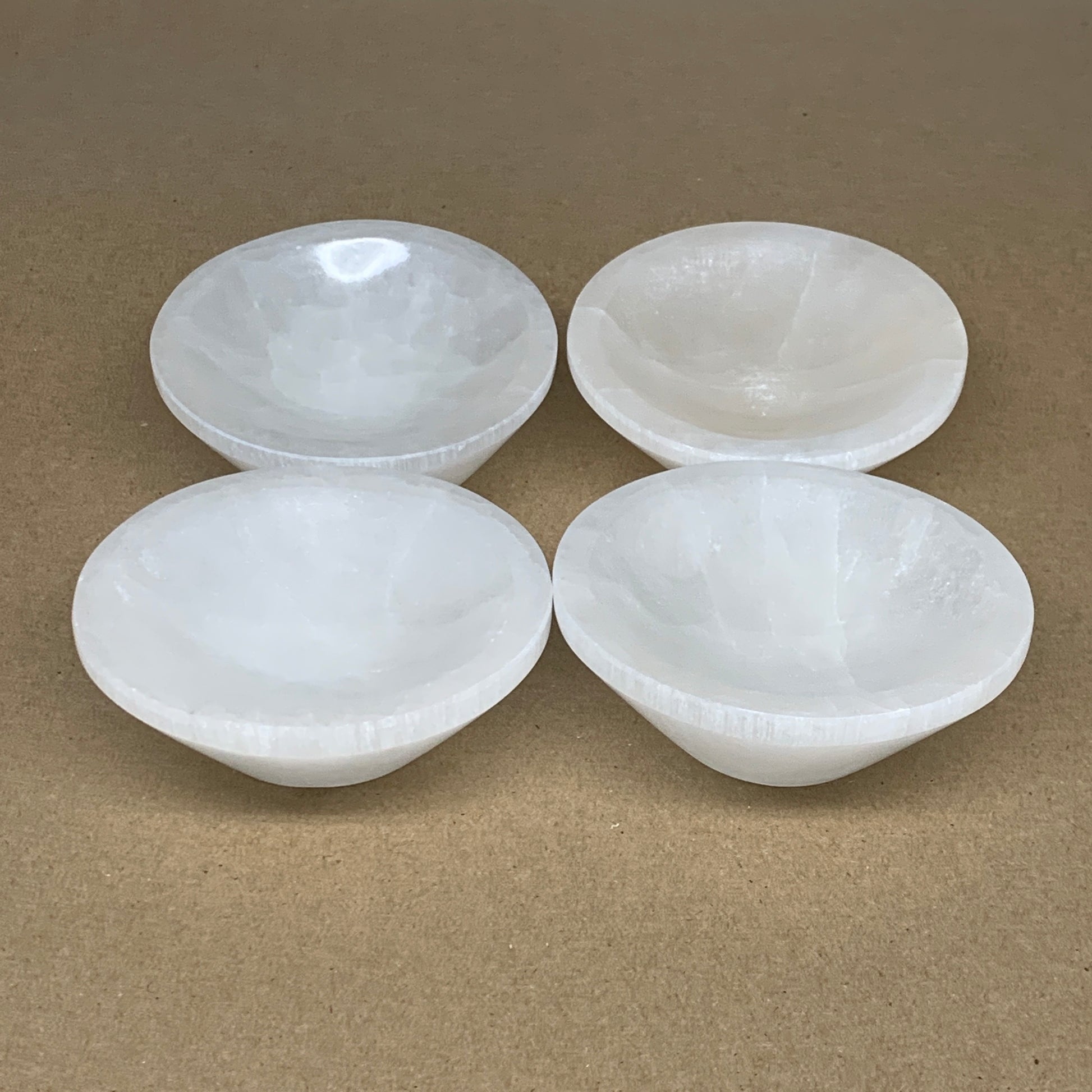 4pcs, 1178g, 3.9"-4" Natural Round Selenite Bowls Crystals from Morocco, B9204