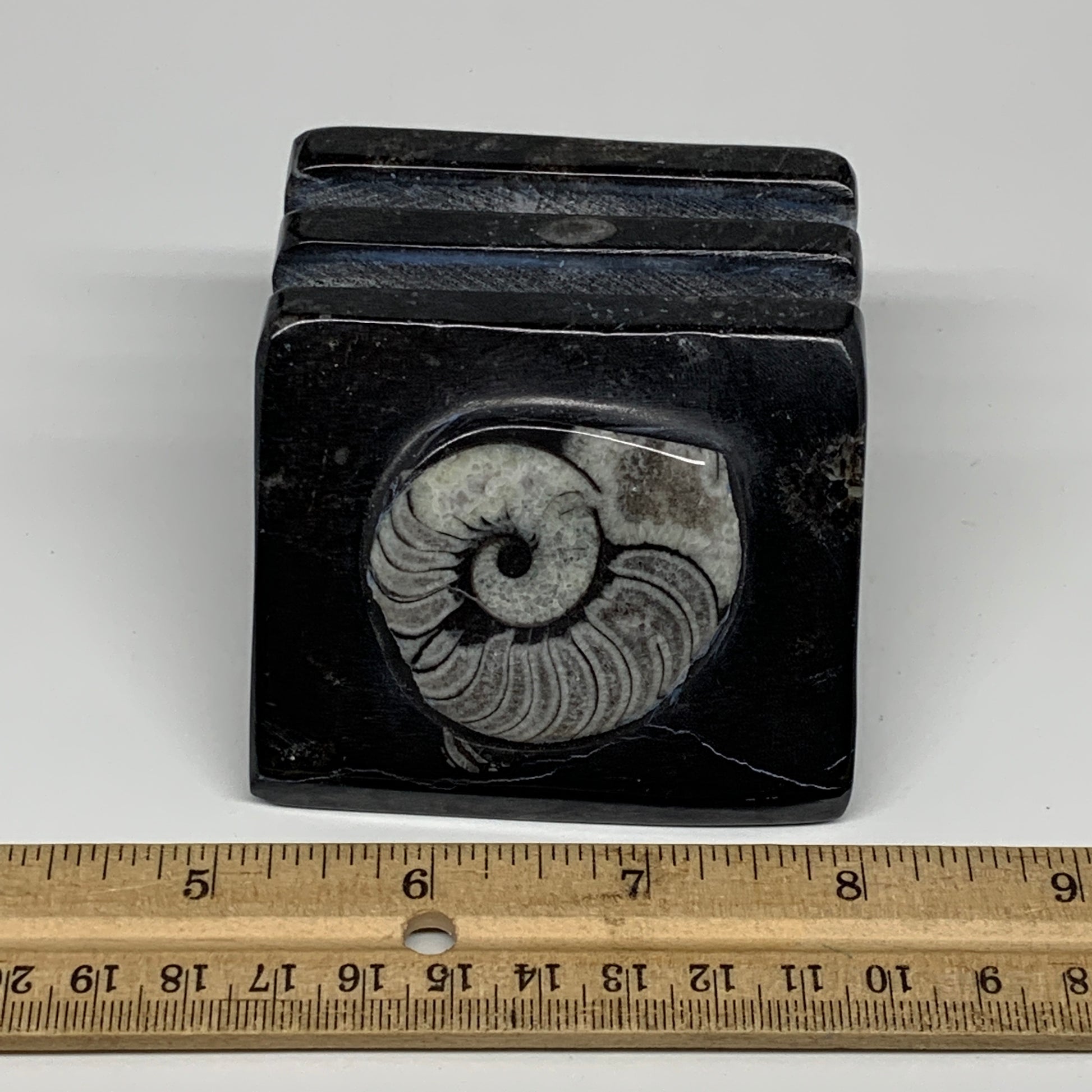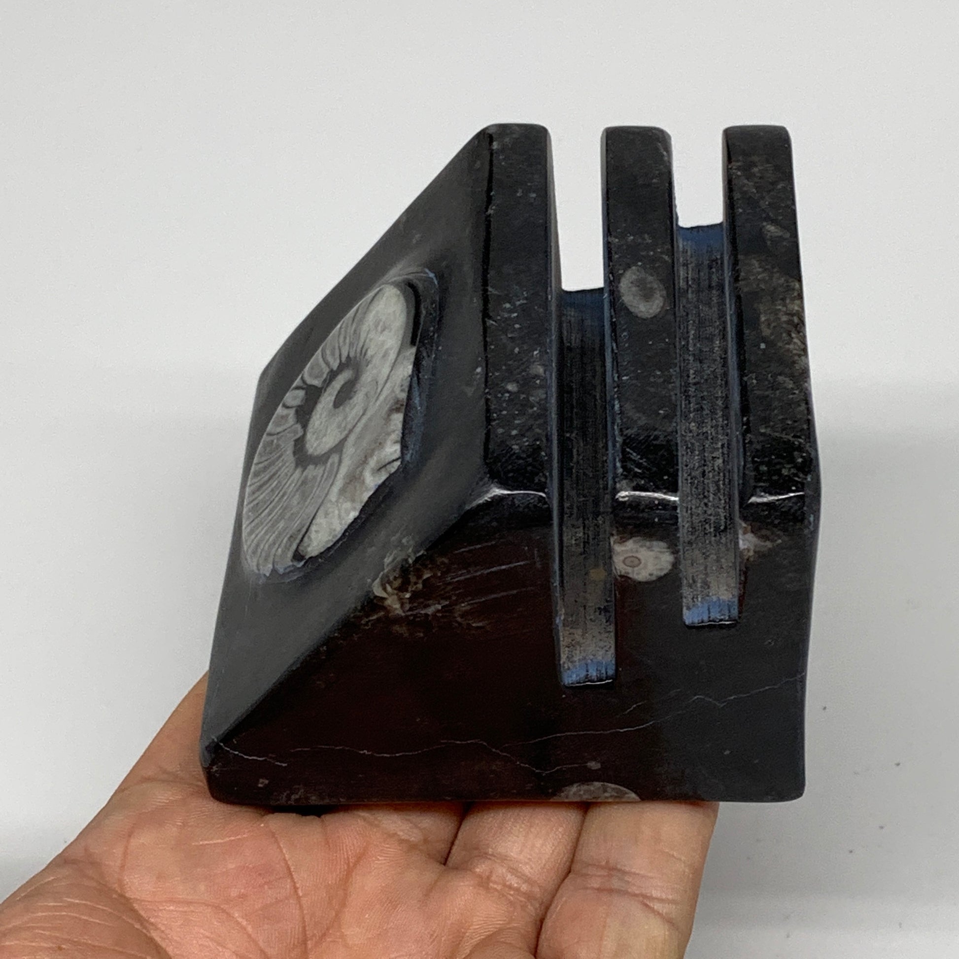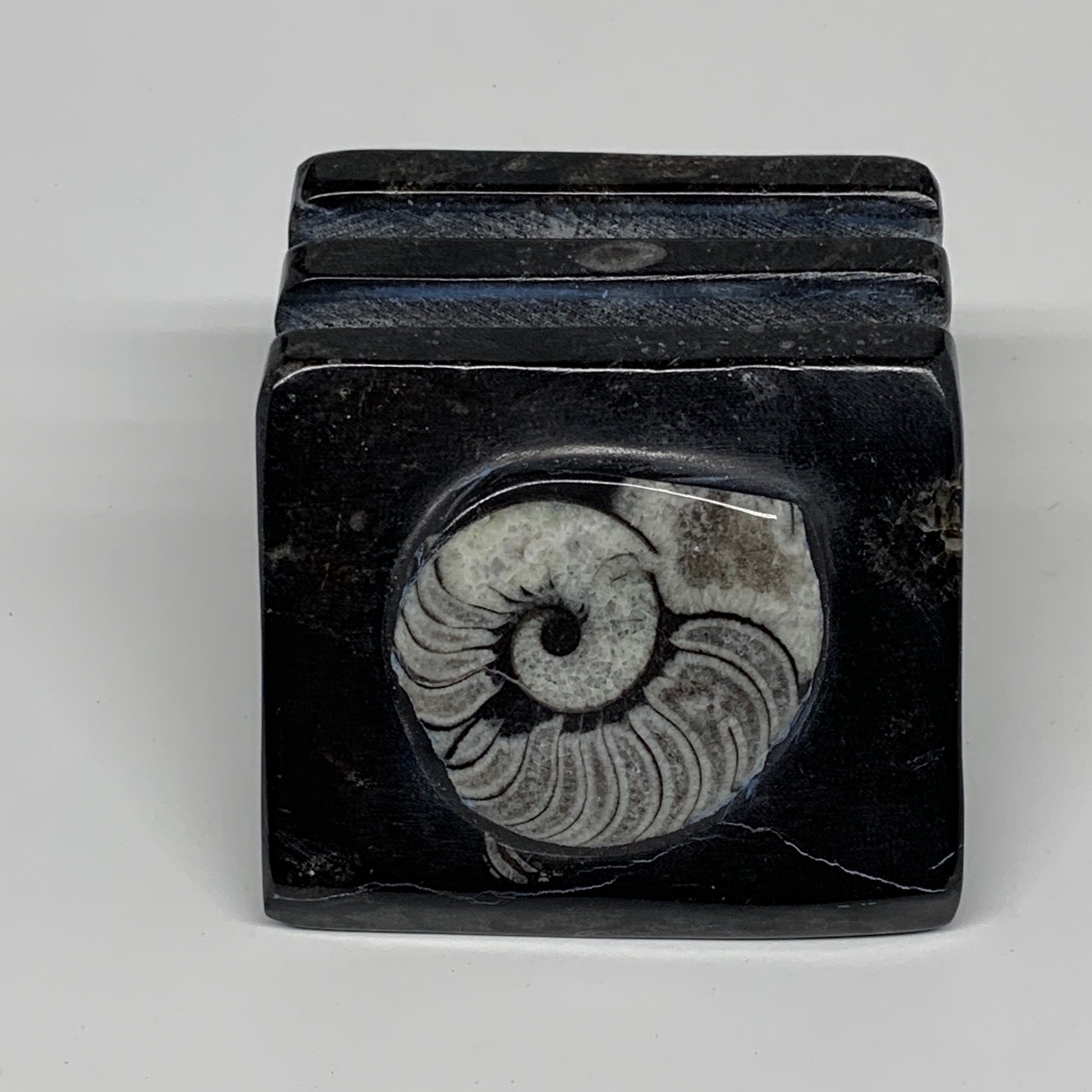 500g, 2.8" x 2.9" x 2" Black Fossils Orthoceras Ammonite Business Card Holder,B8226