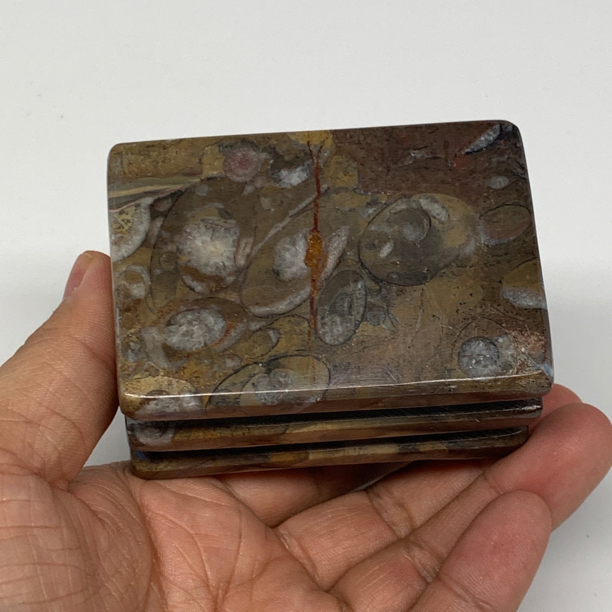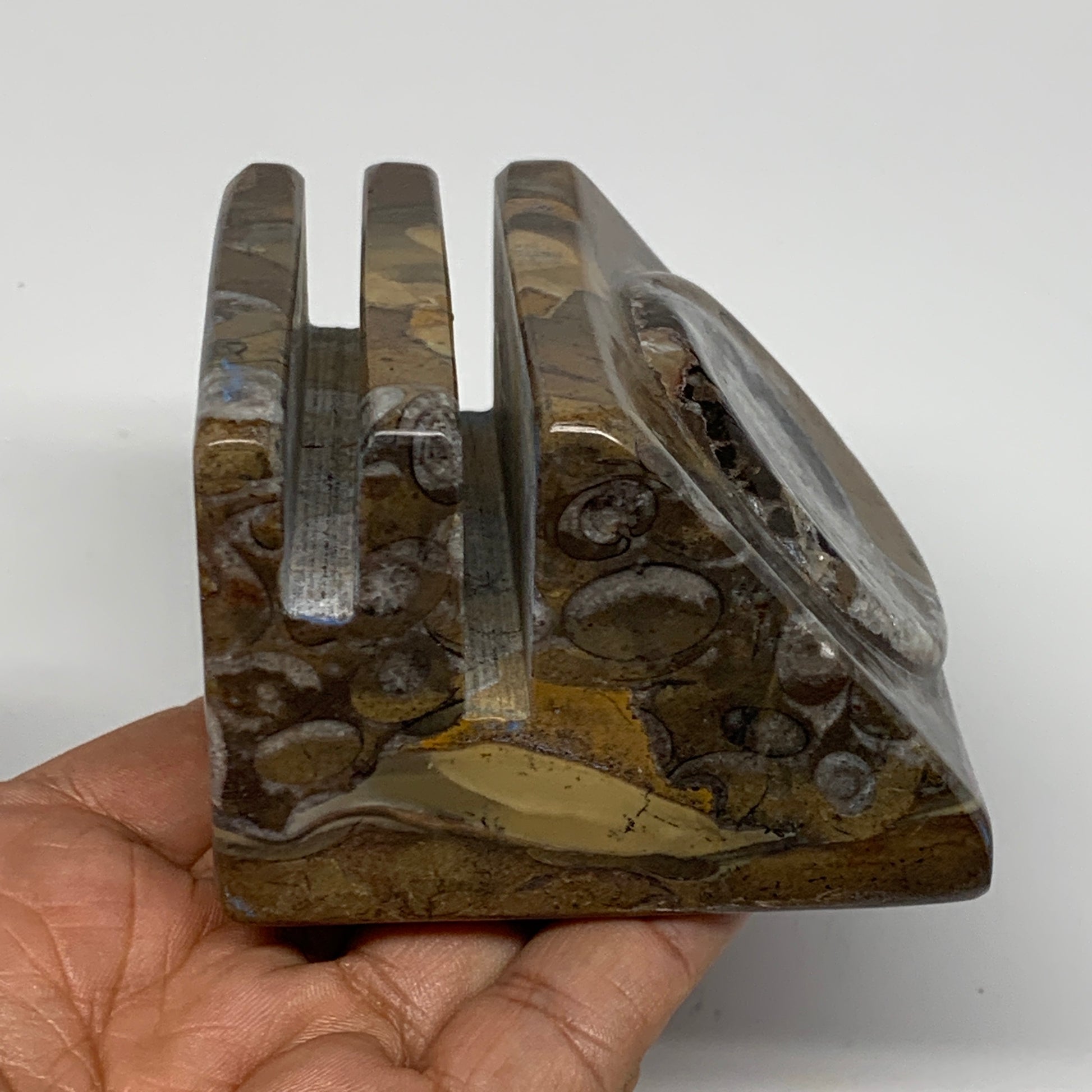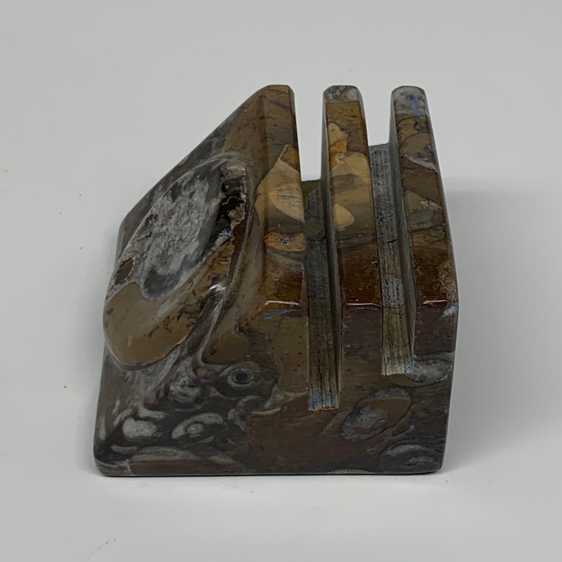 506g, 2.8" x 2.8" x 2" Fossils Orthoceras Ammonite Business Card Holder,B8100