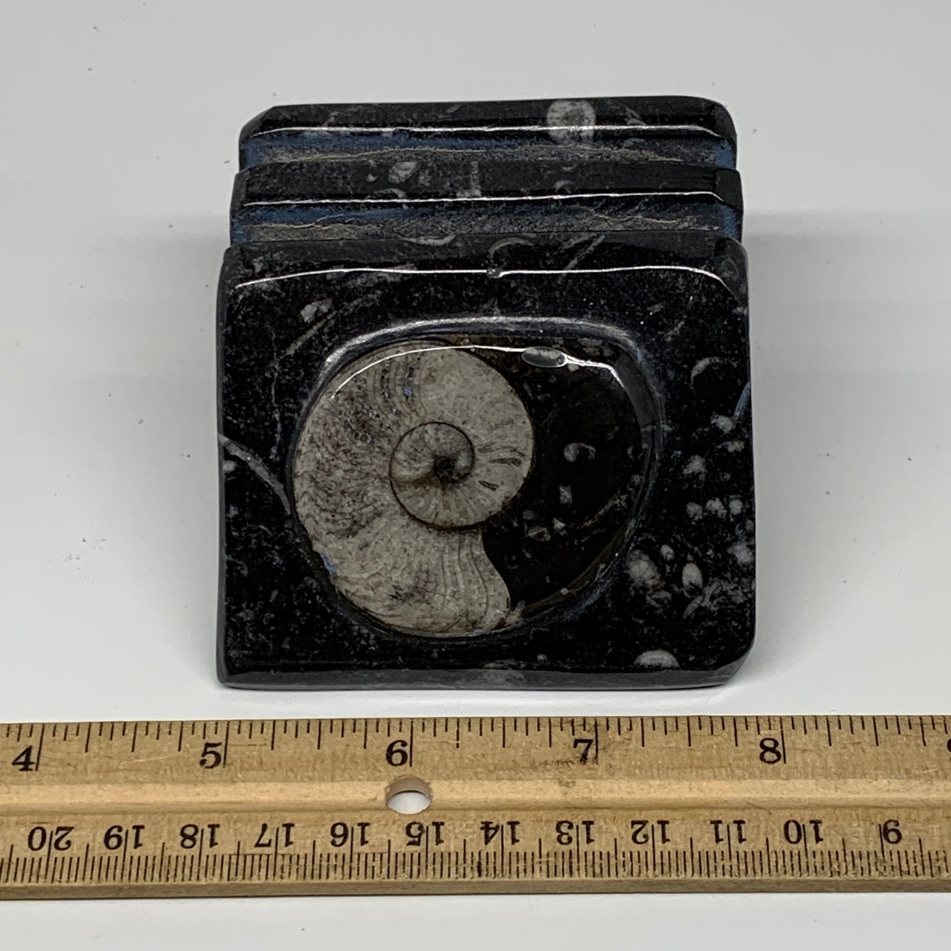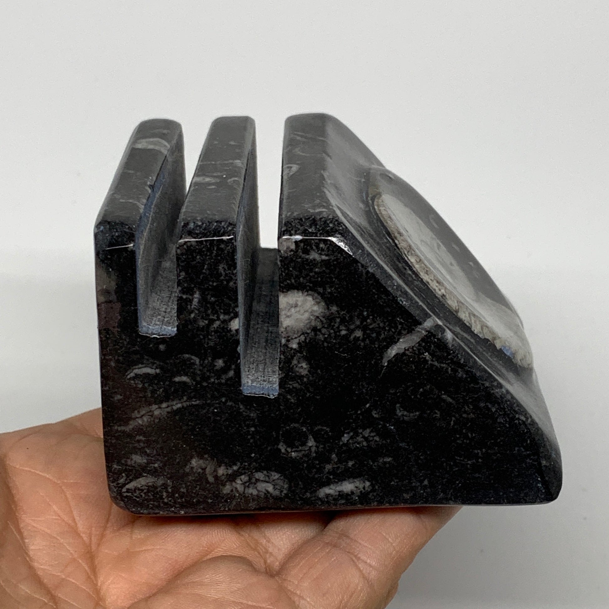 520g, 2.9" x 2.9" x 1.9" Black Fossils Orthoceras Ammonite Business Card Holder,B8253