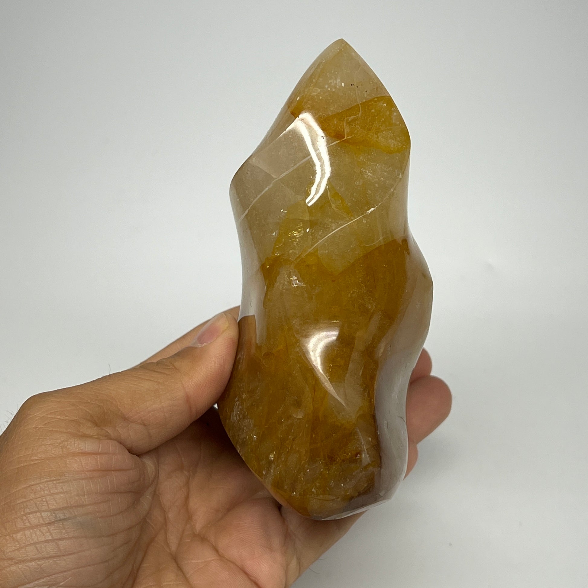 535g,4.6"x3.1"x2.3" Golden Healer Quartz Flame Crystal @Madagascar, B19560