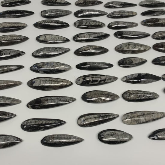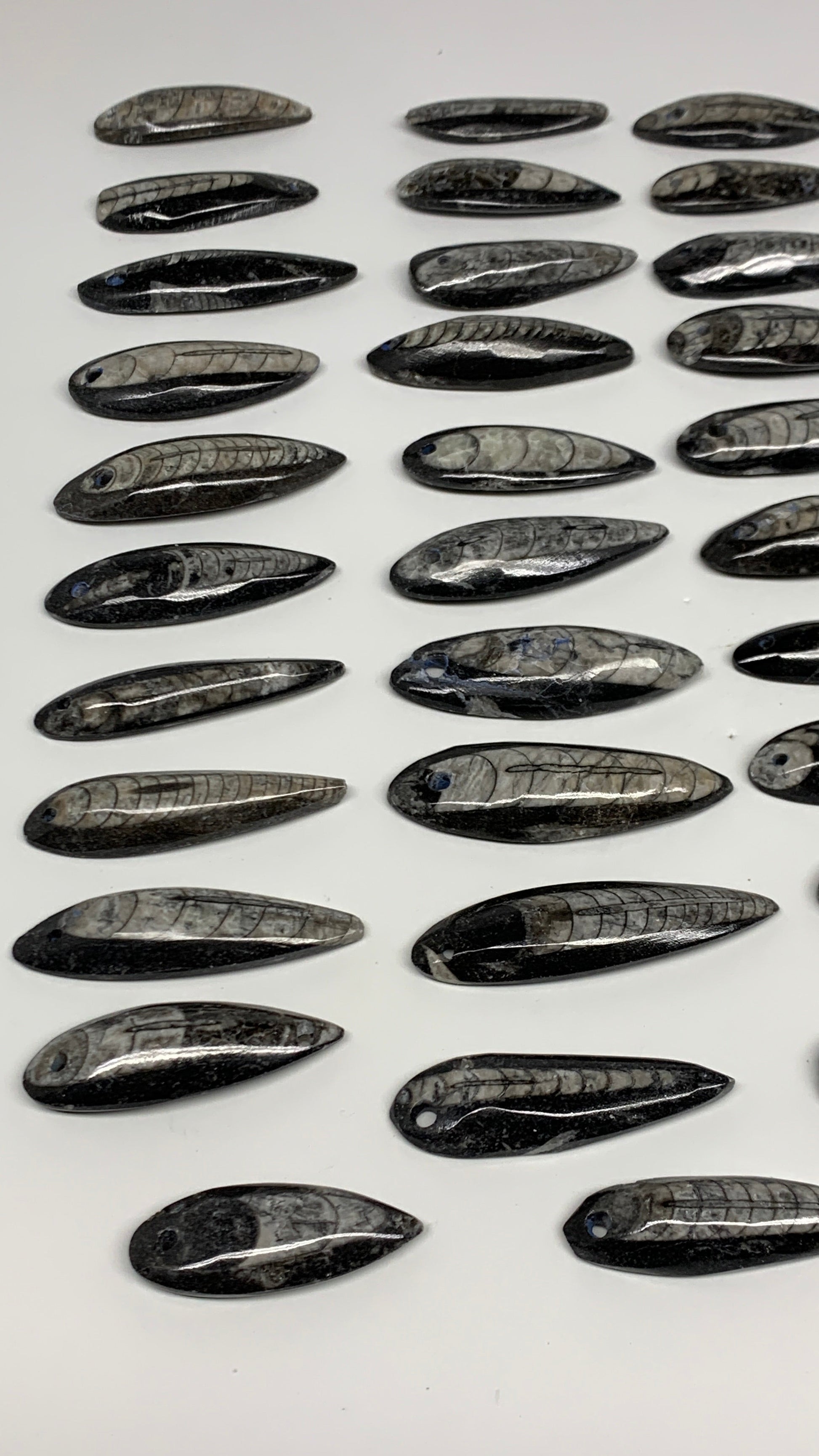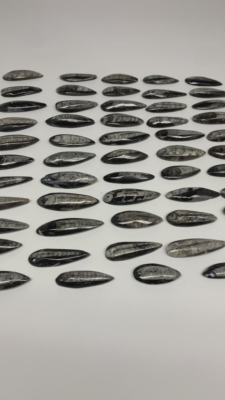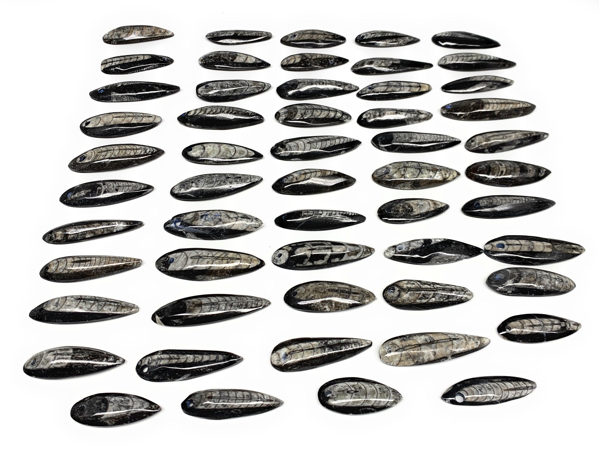540g (1.19 lbs), 52 pcs, 1.6"-2.5", Small Orthoceras Fossils Drilled Pendants, B29893