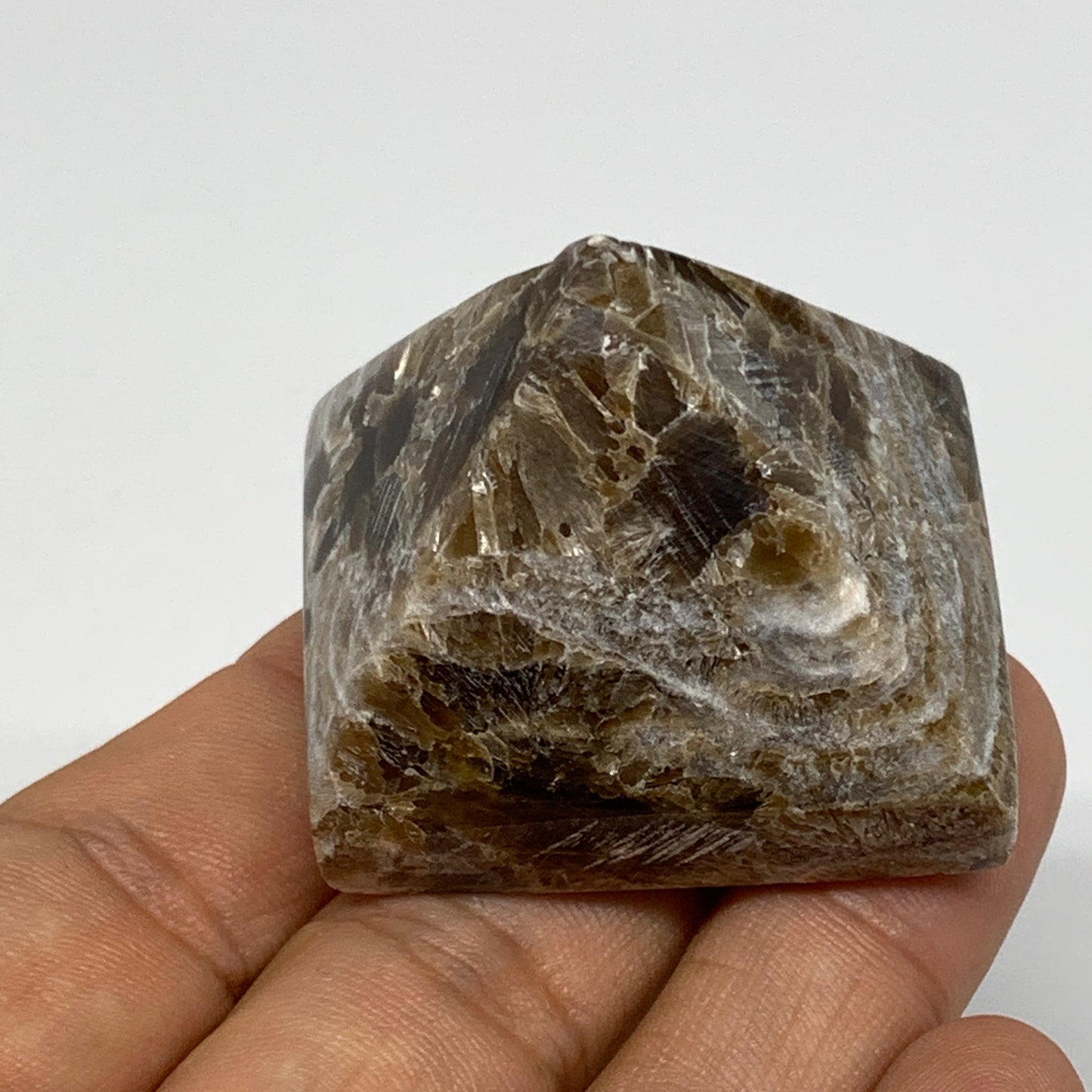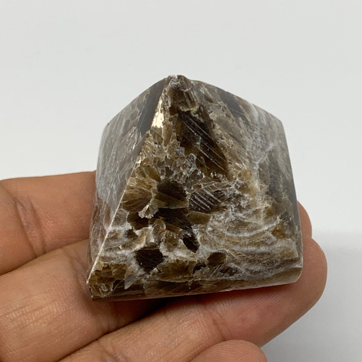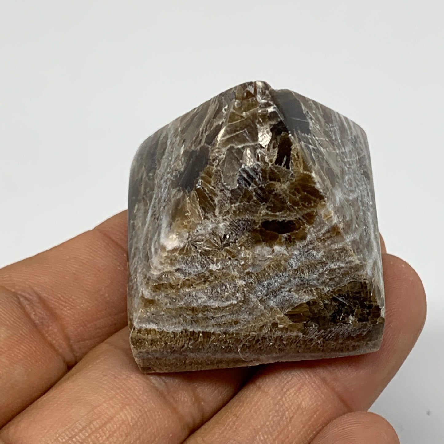 55.7g, 1.3"x1.6"x1.4" Chocolate/Gray Onyx Pyramid Gemstone @Morocco, B18953