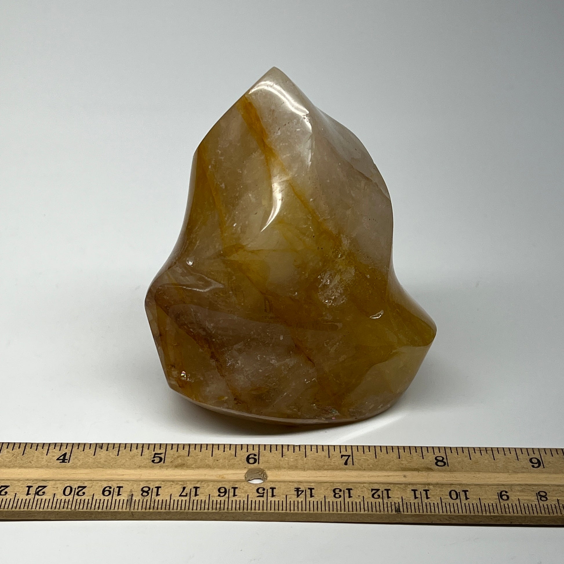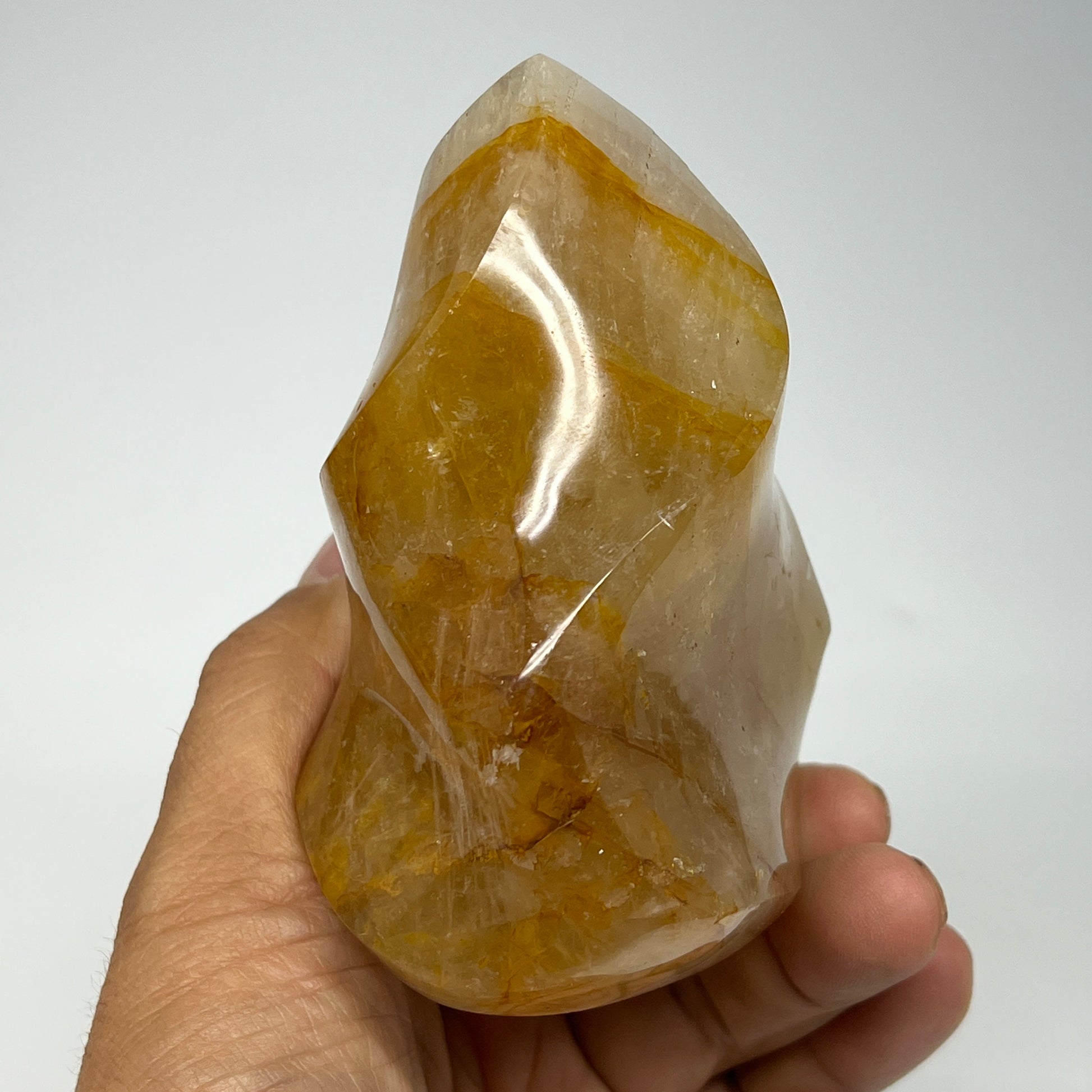 550g,4"x3.3"x2.2" Golden Healer Quartz Flame Crystal @Madagascar, B19547