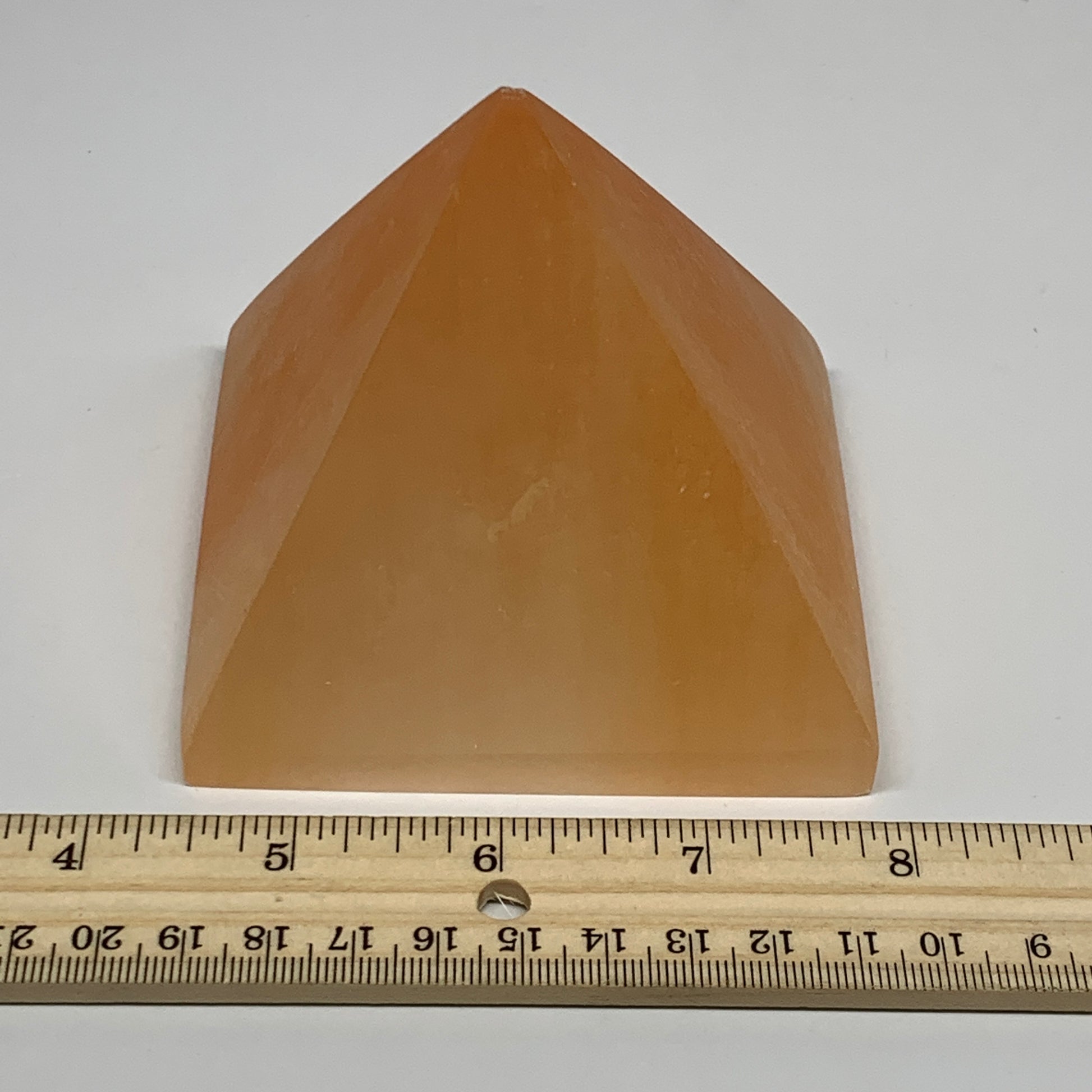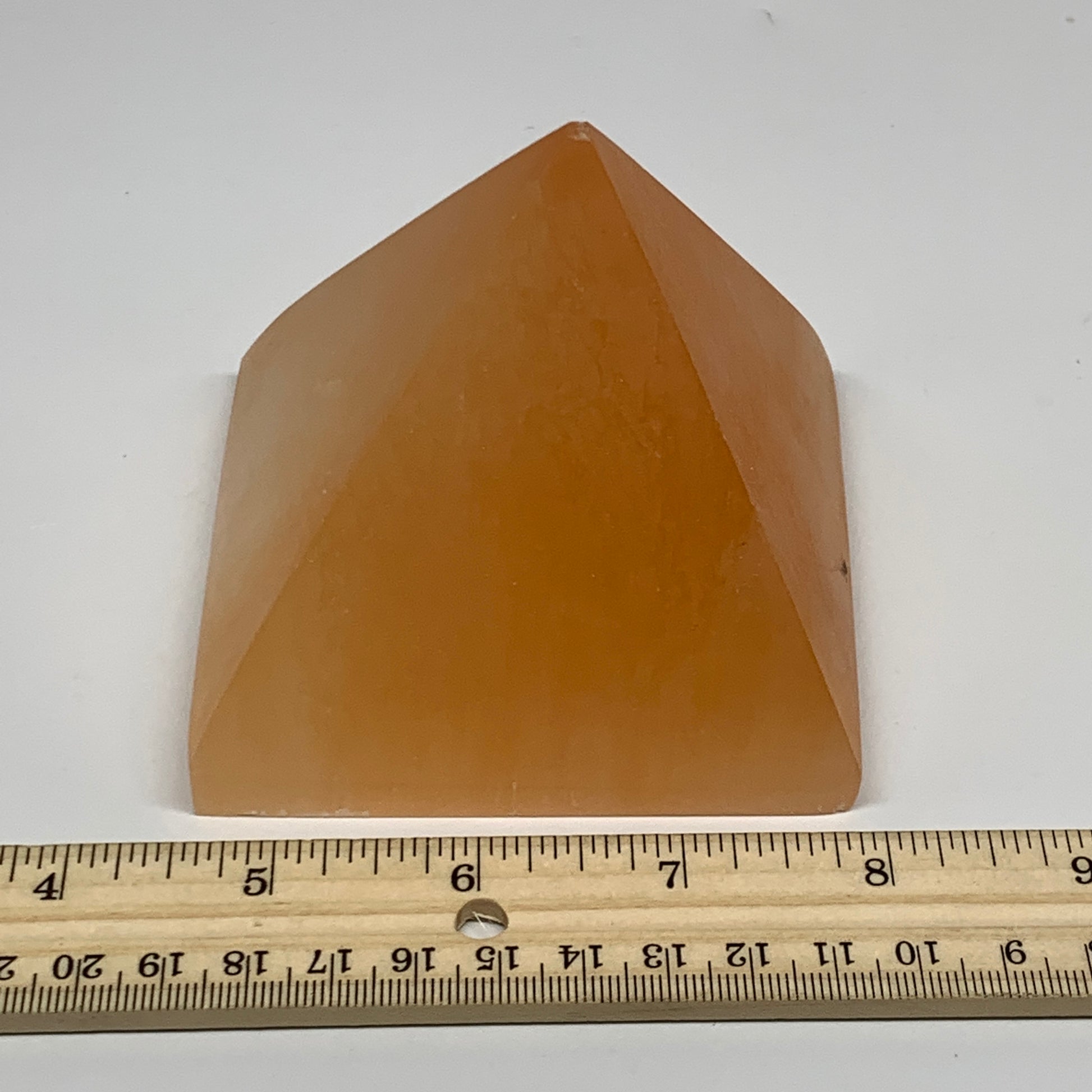 558g, 2.9"x3.5" Orange Selenite/Satin Spar Pyramid Crystal @Morocco, B24199