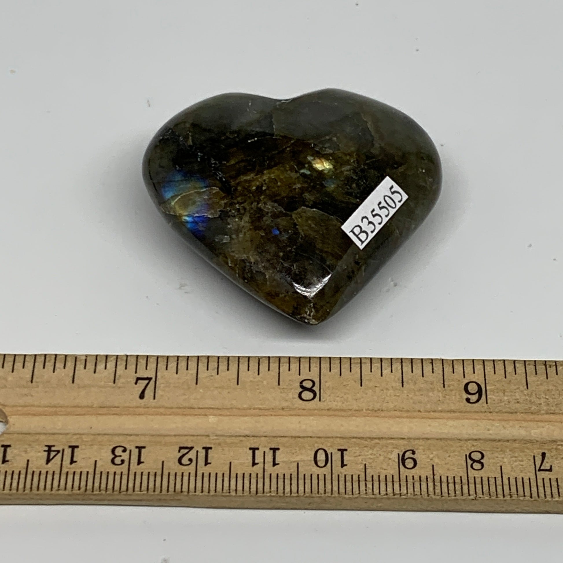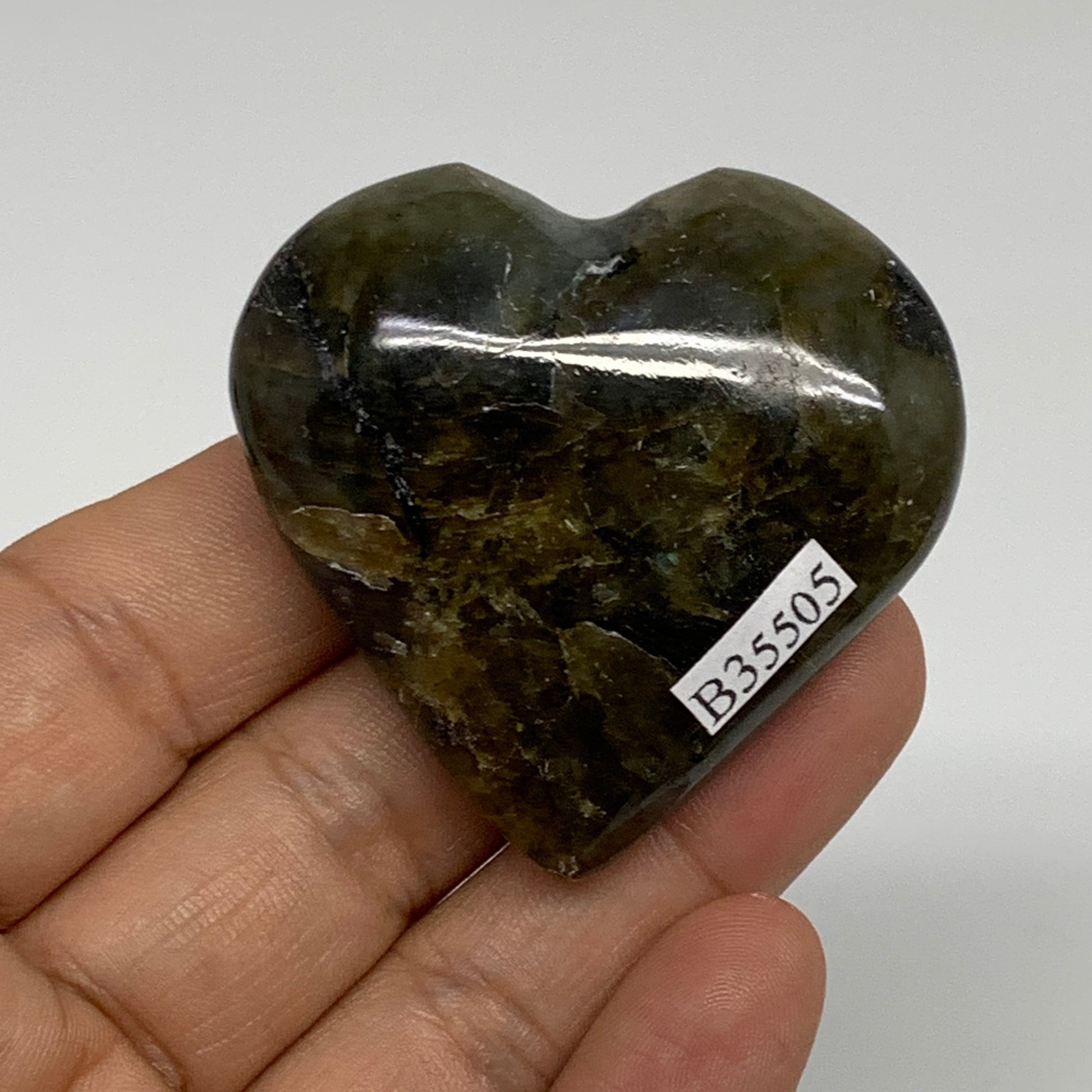 57.7g, 1.9"x2"x0.8", Natural Labradorite Heart Polished Crystal, B35505