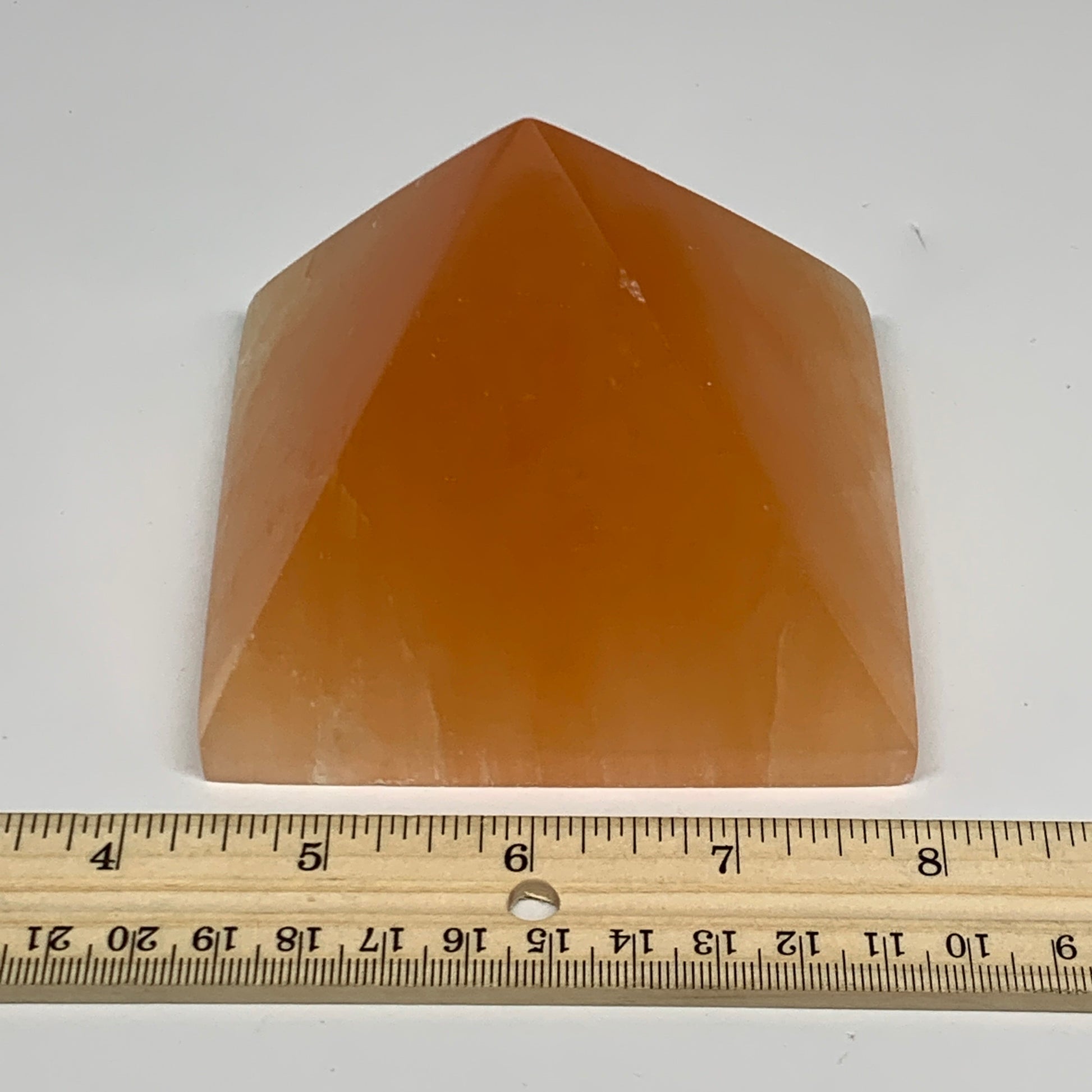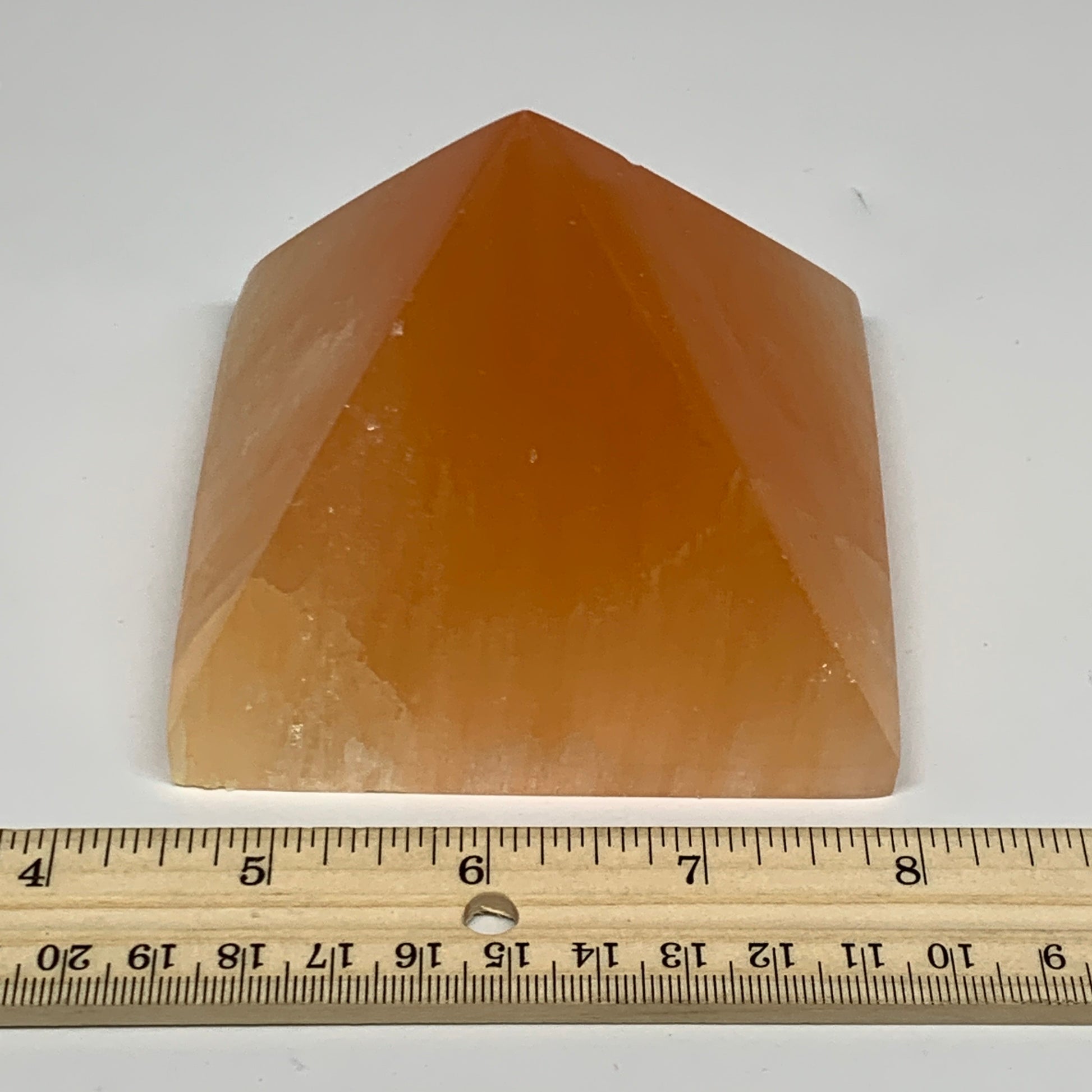 573g, 2.8"x3.6" Orange Selenite/Satin Spar Pyramid Crystal @Morocco, B24196