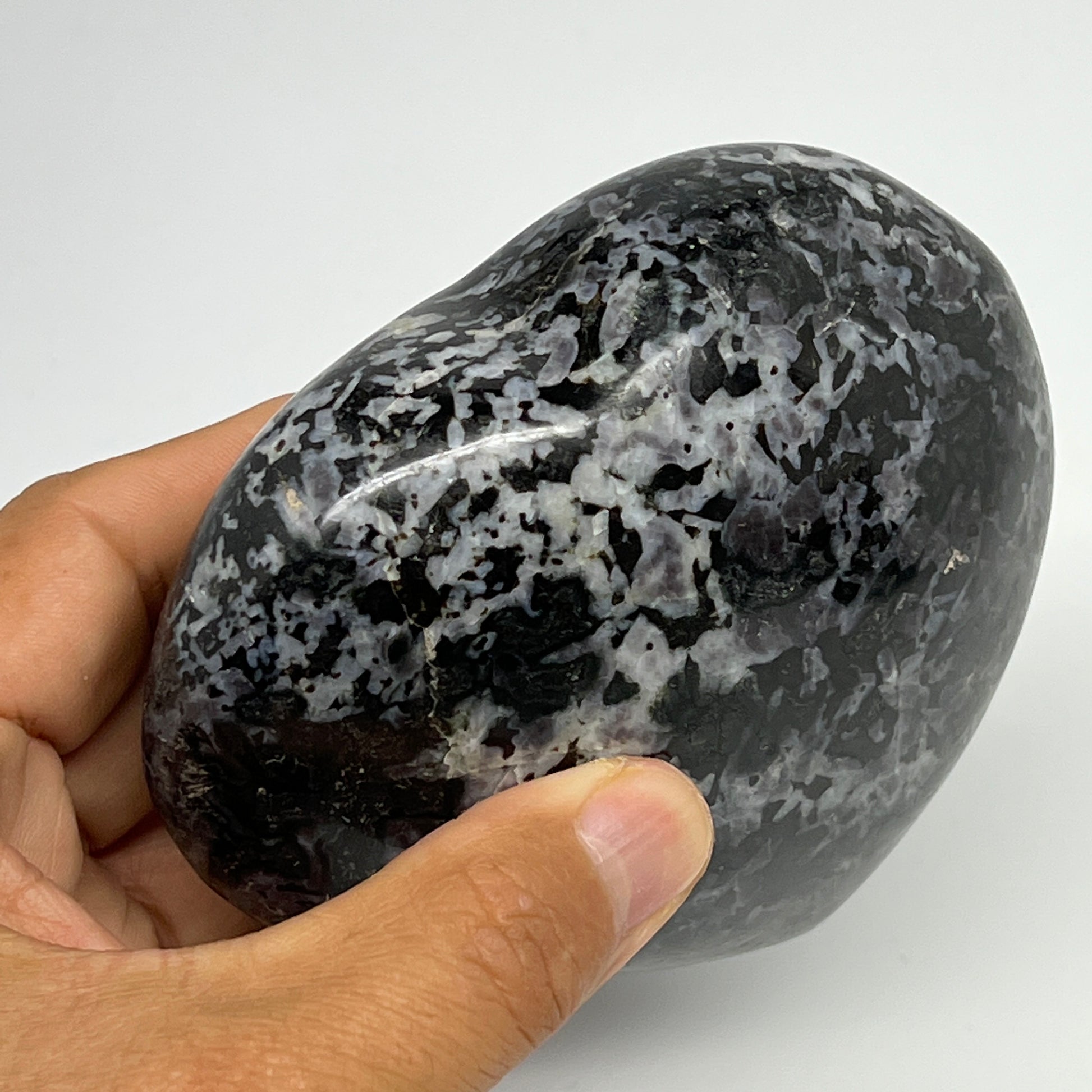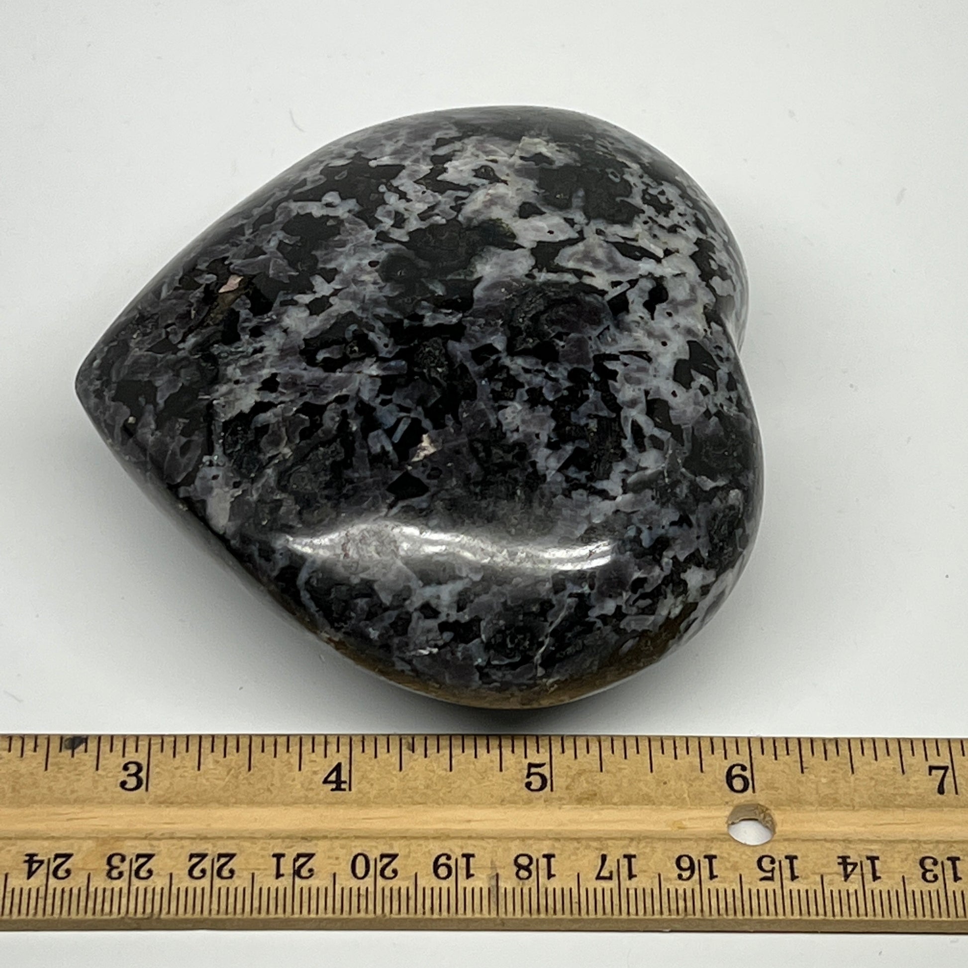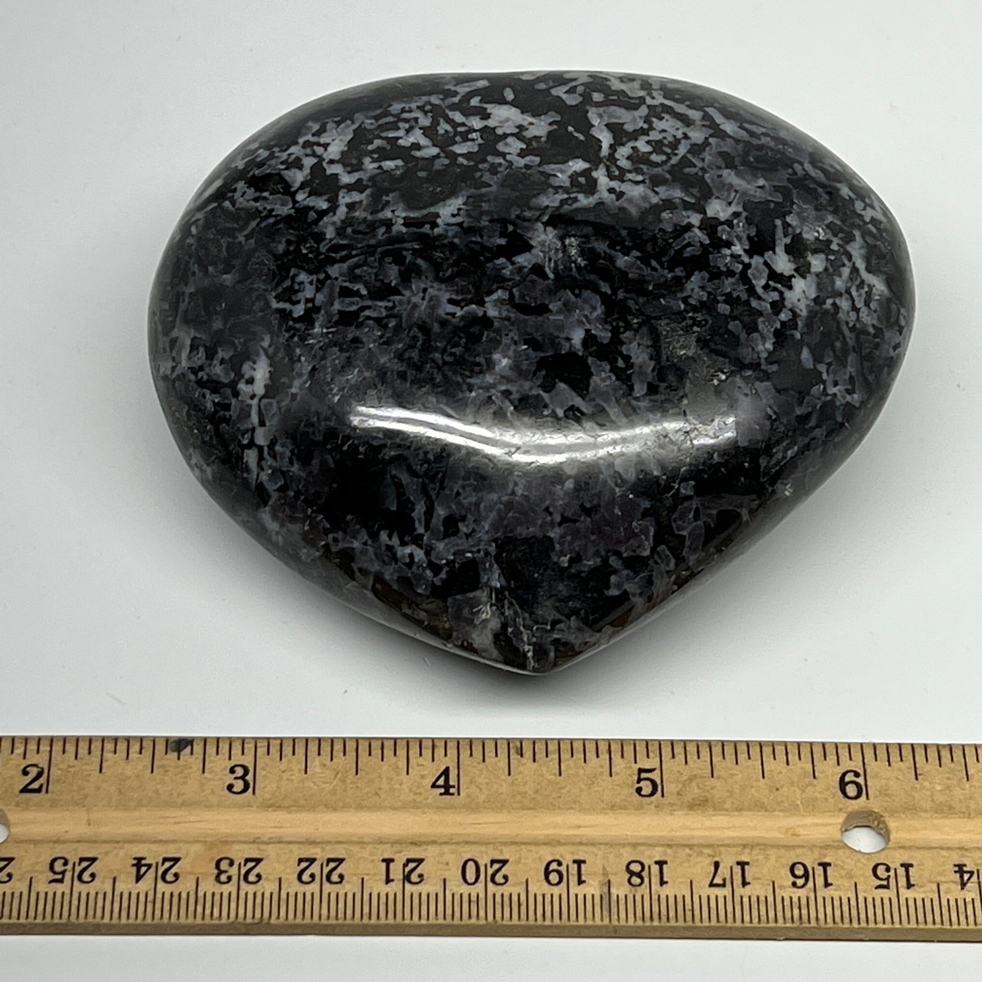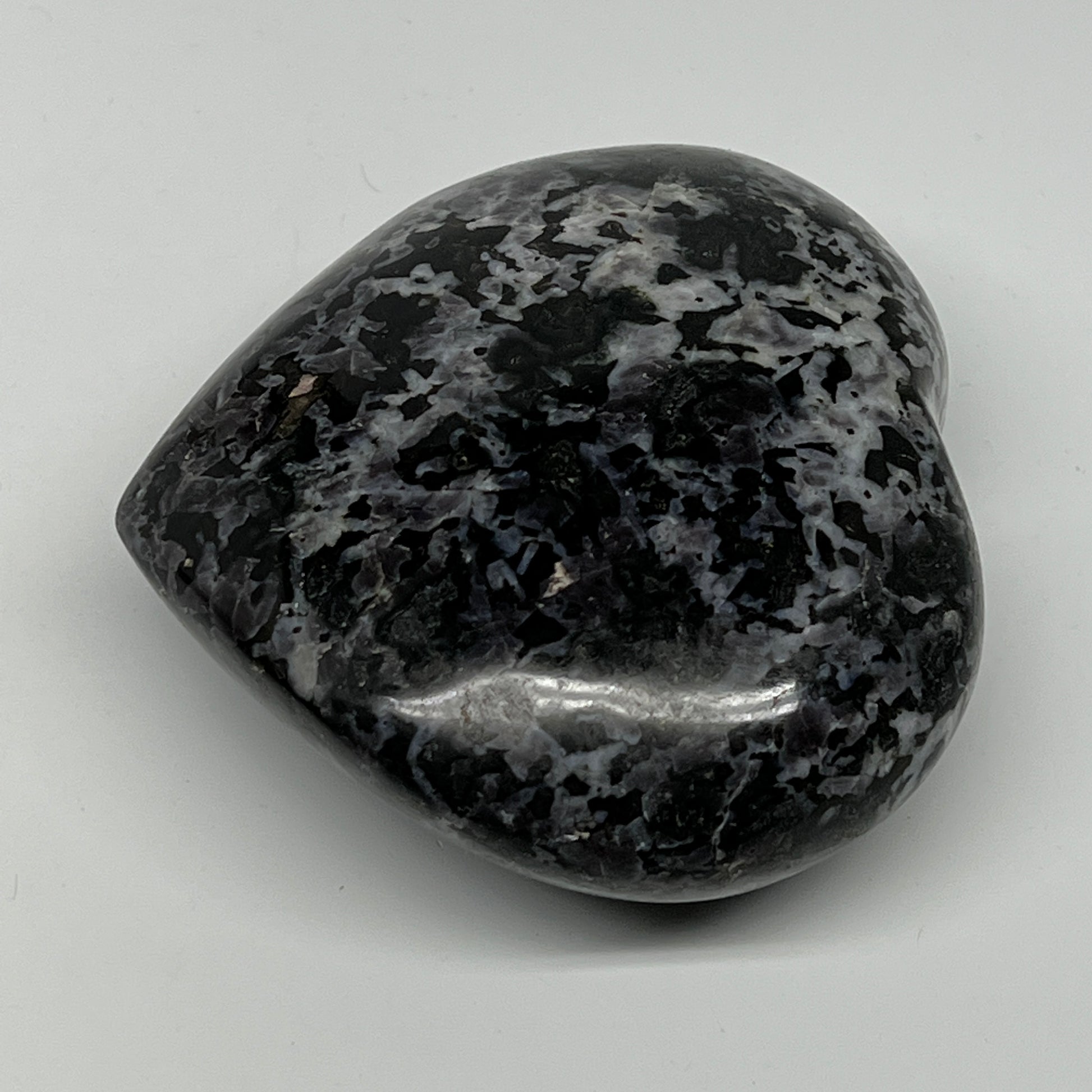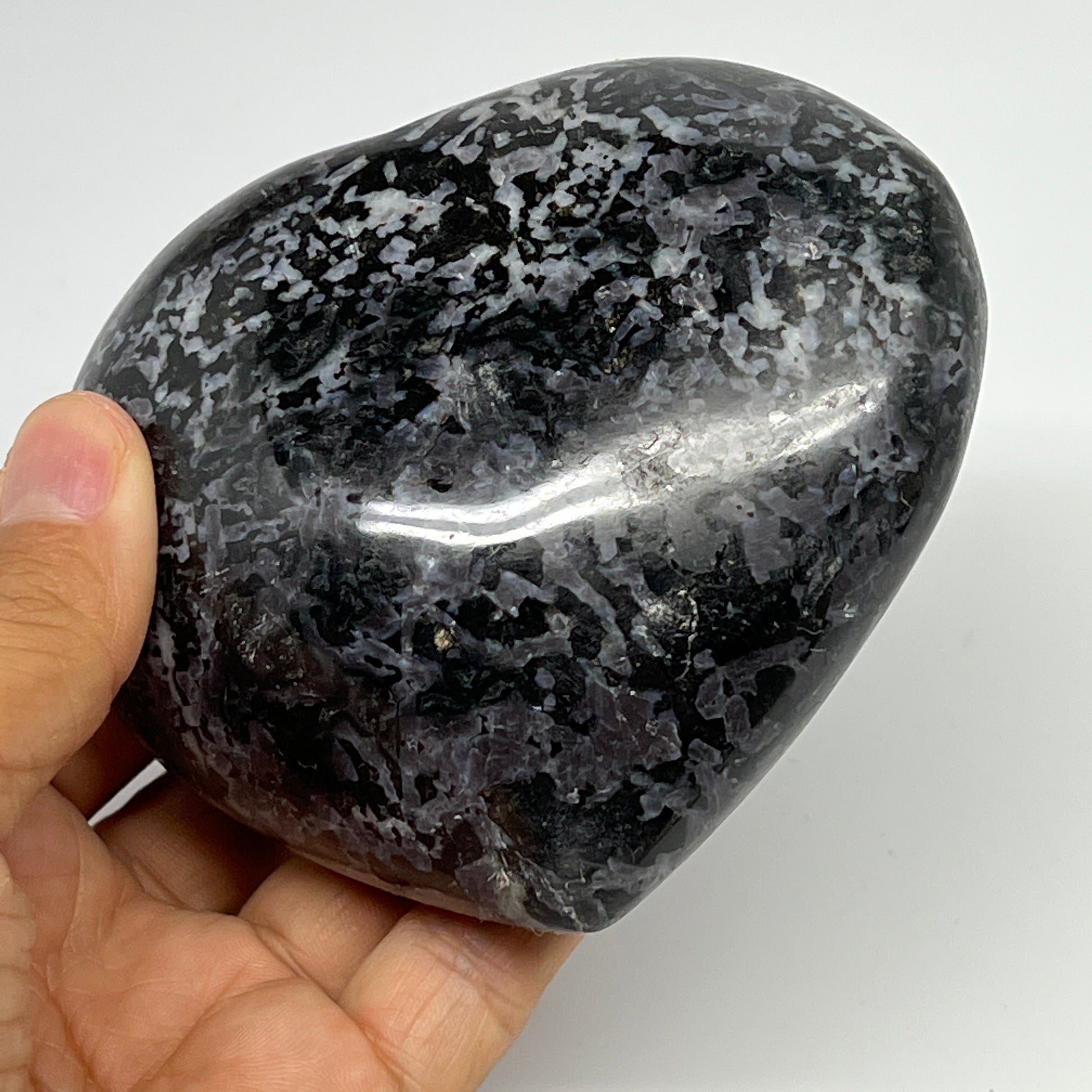 580g,3.6"x4"x1.7" Indigo Gabro Merlinite Heart Gemstone @Madagascar,B19908