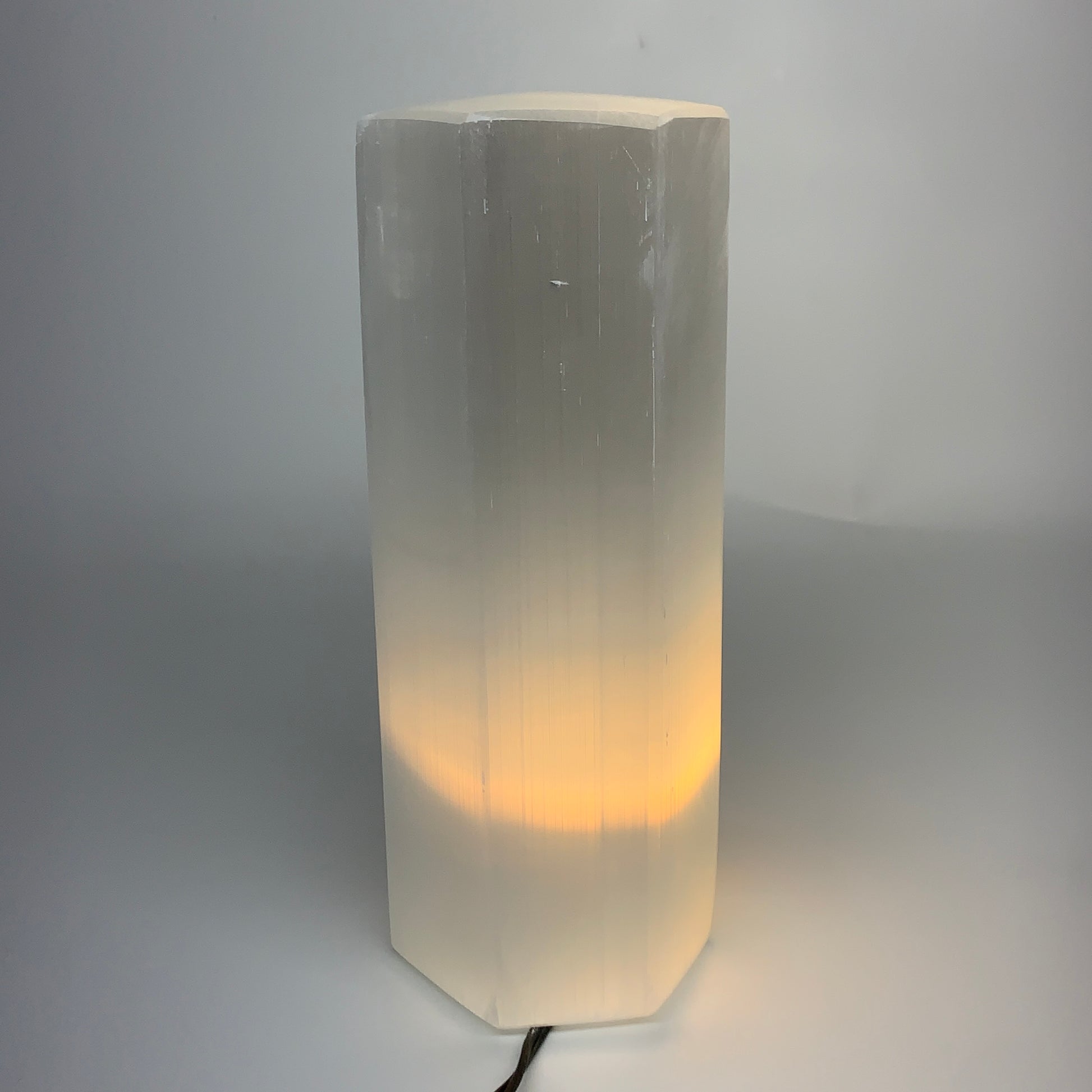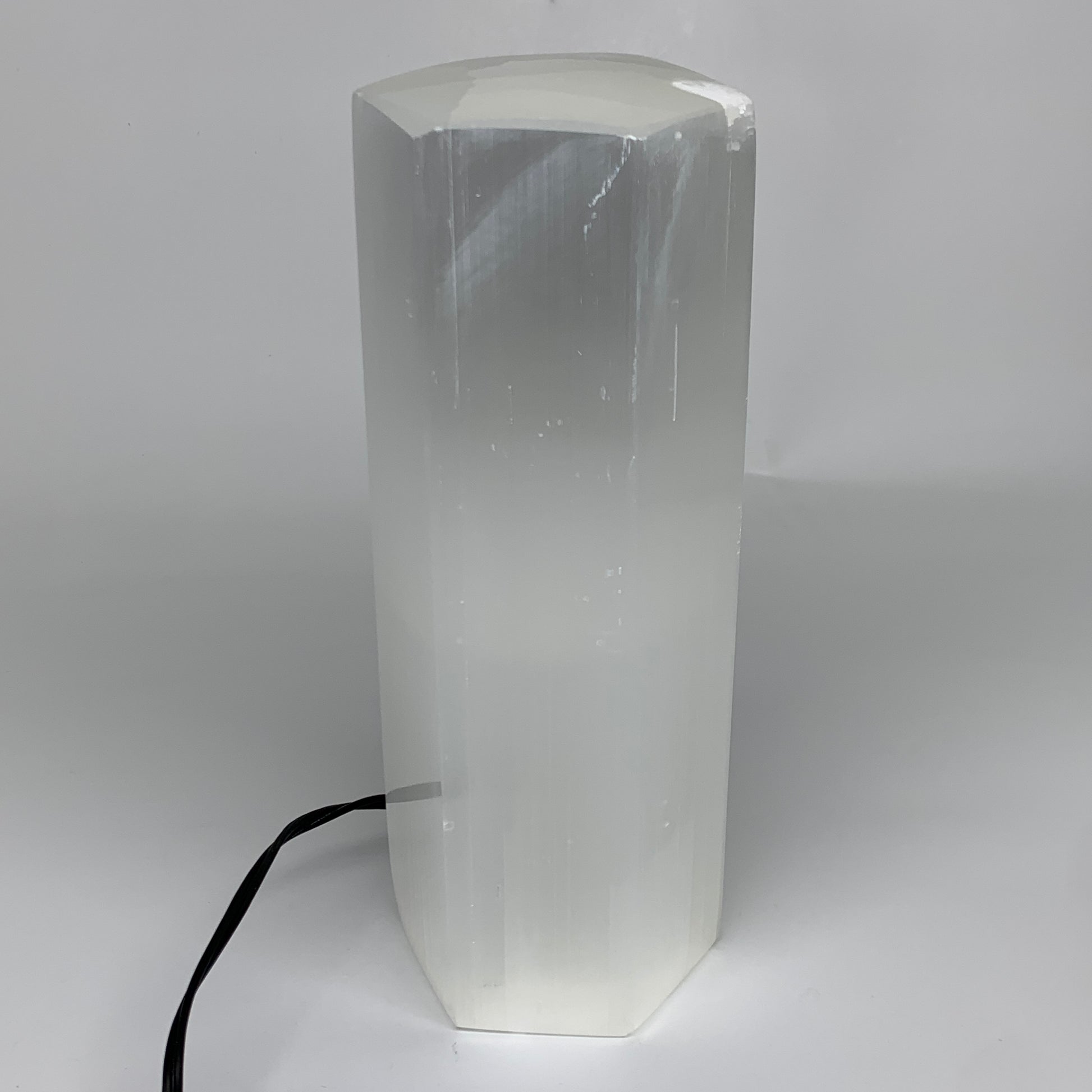 6.7 lbs. 9.25"x3.4", Hexagon Selenite (Satin Spar) Lamp, w/6ft Chord, B35831