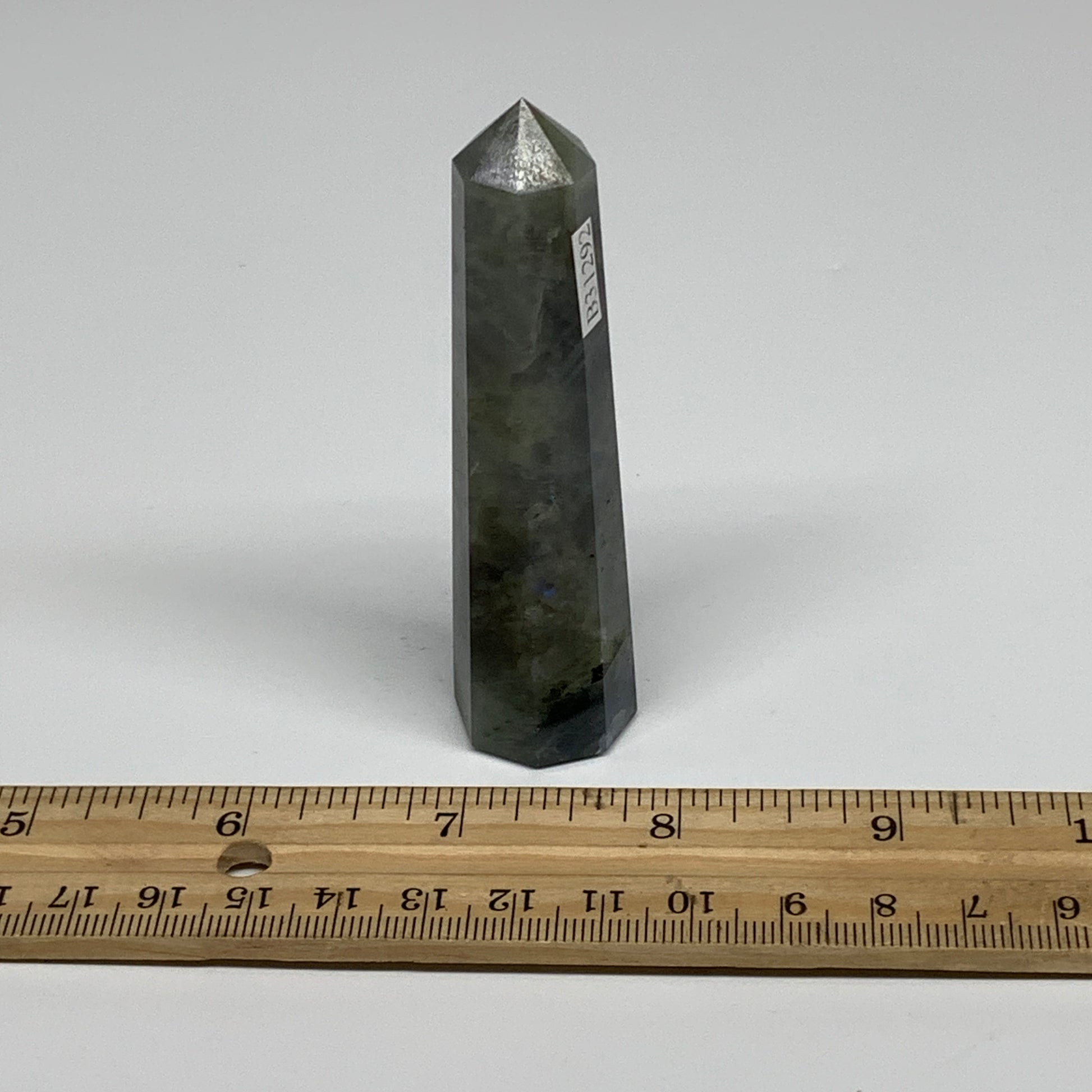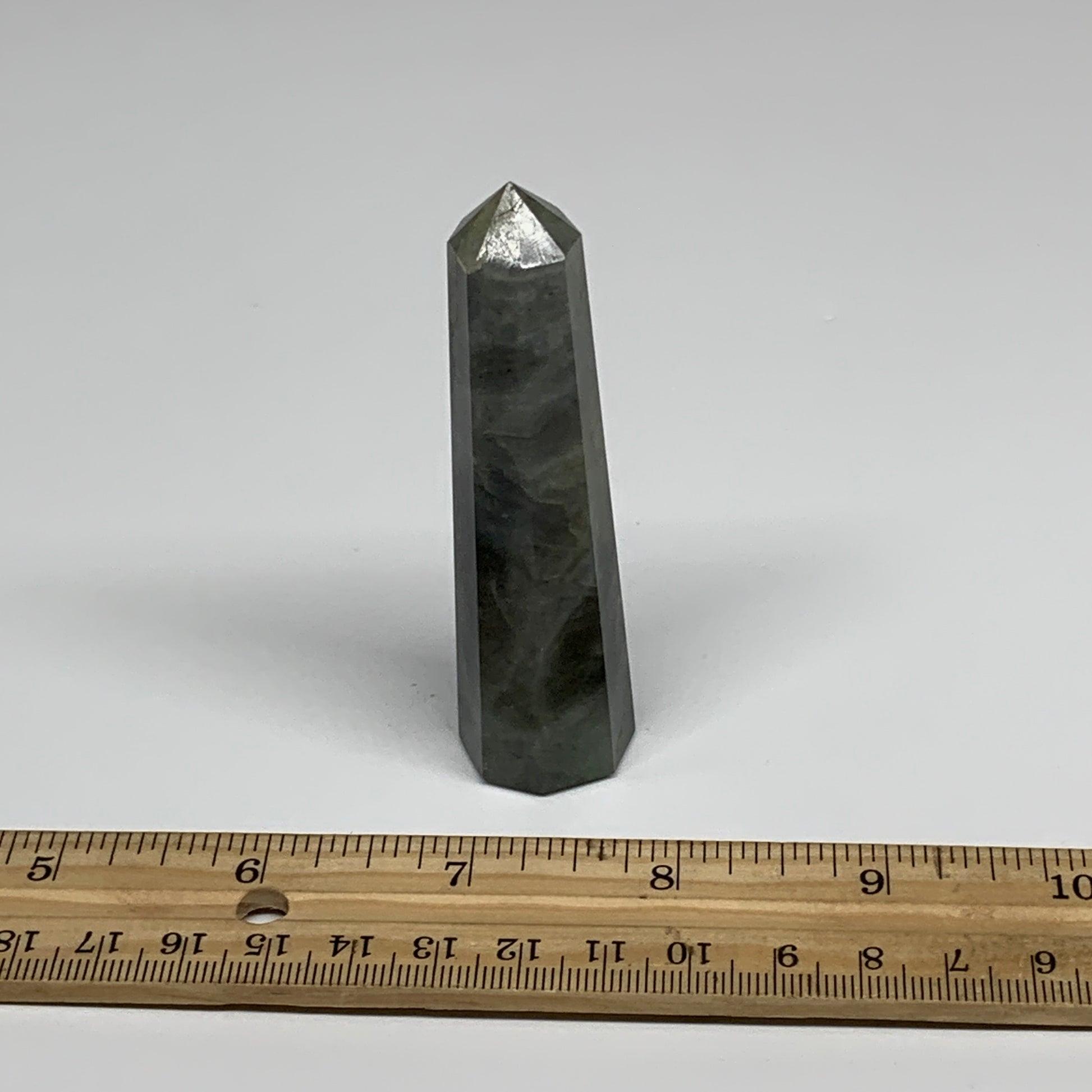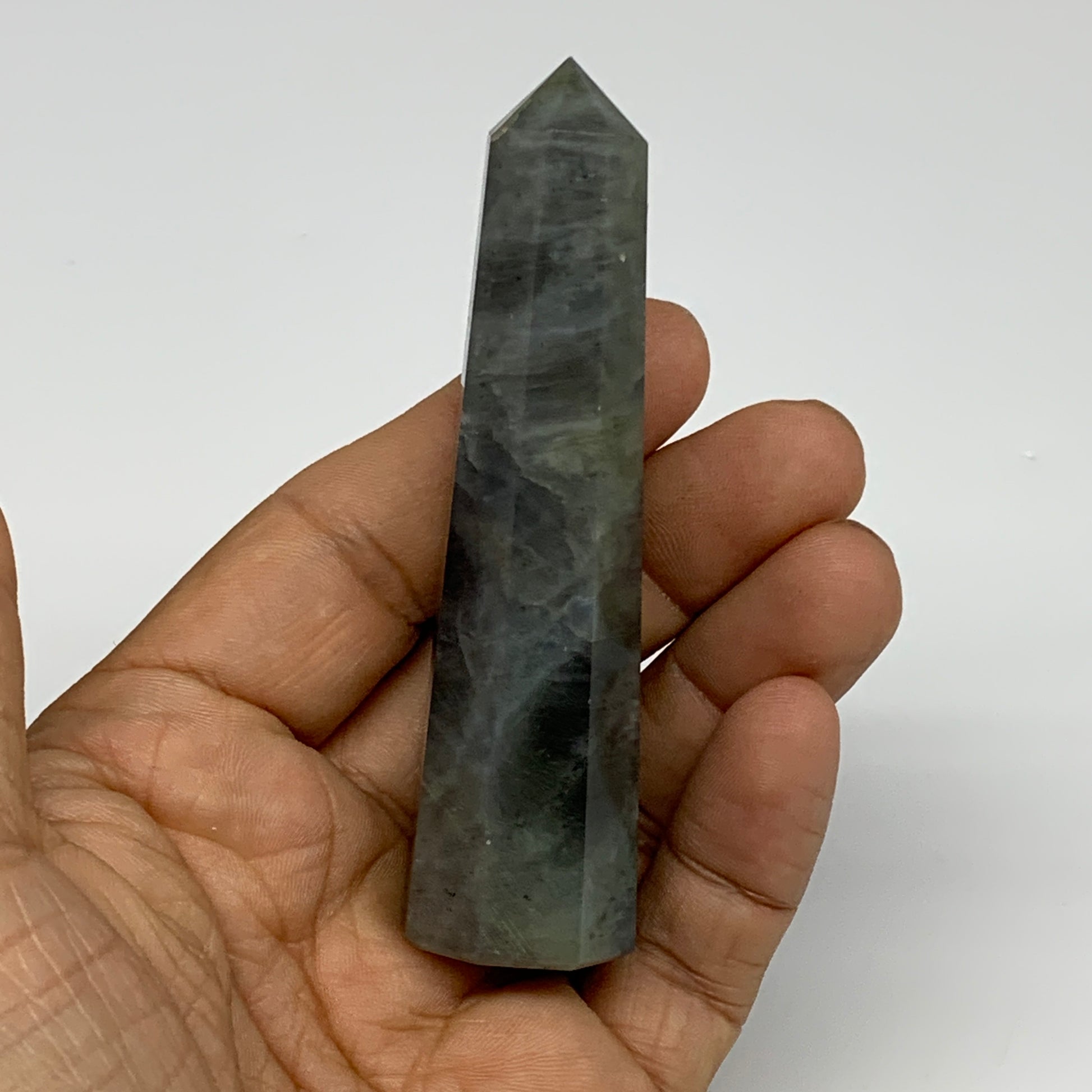 60.4g, 3.3"x0.8", Labradorite Tower Point Crystal @Madagascar, B31292