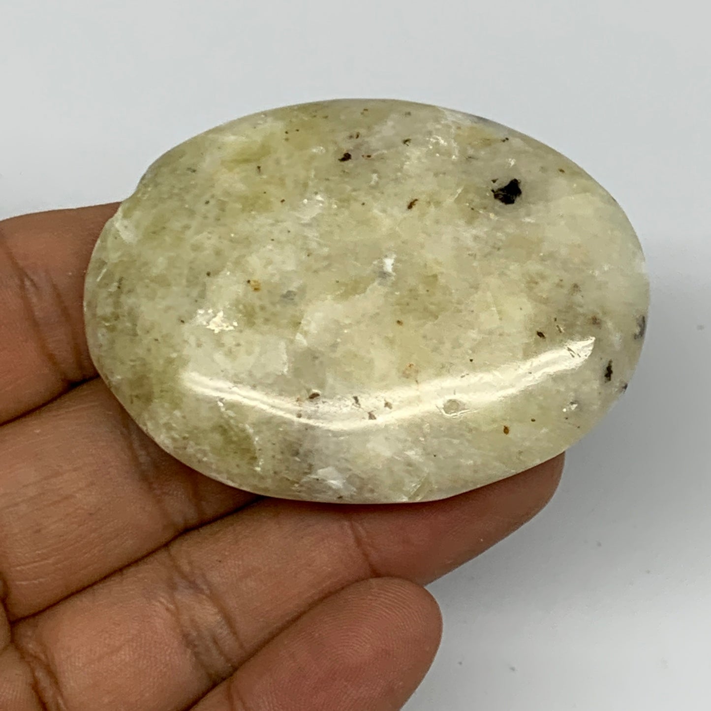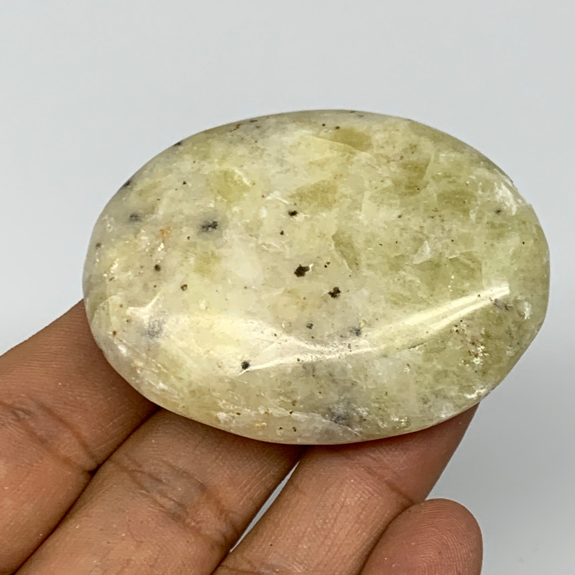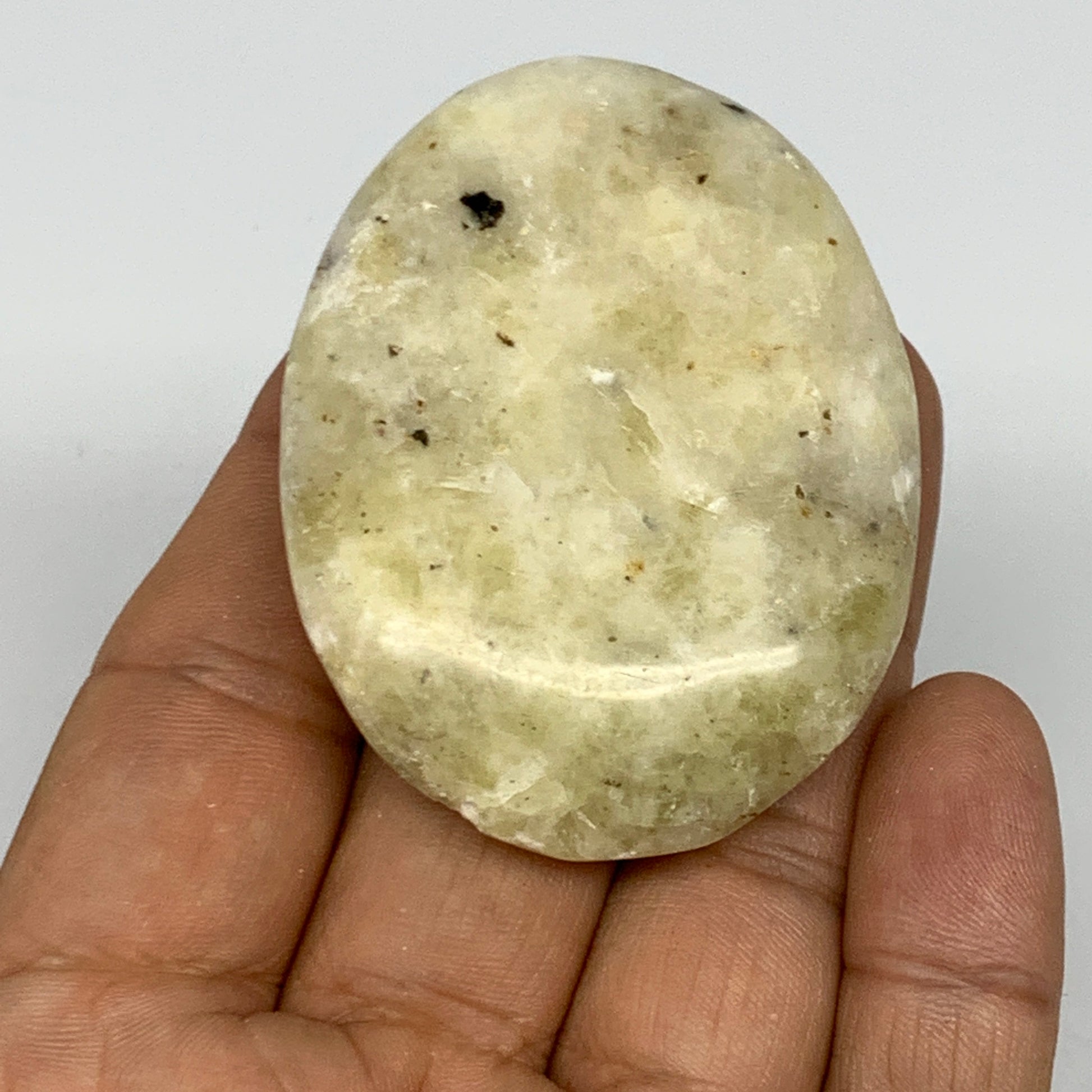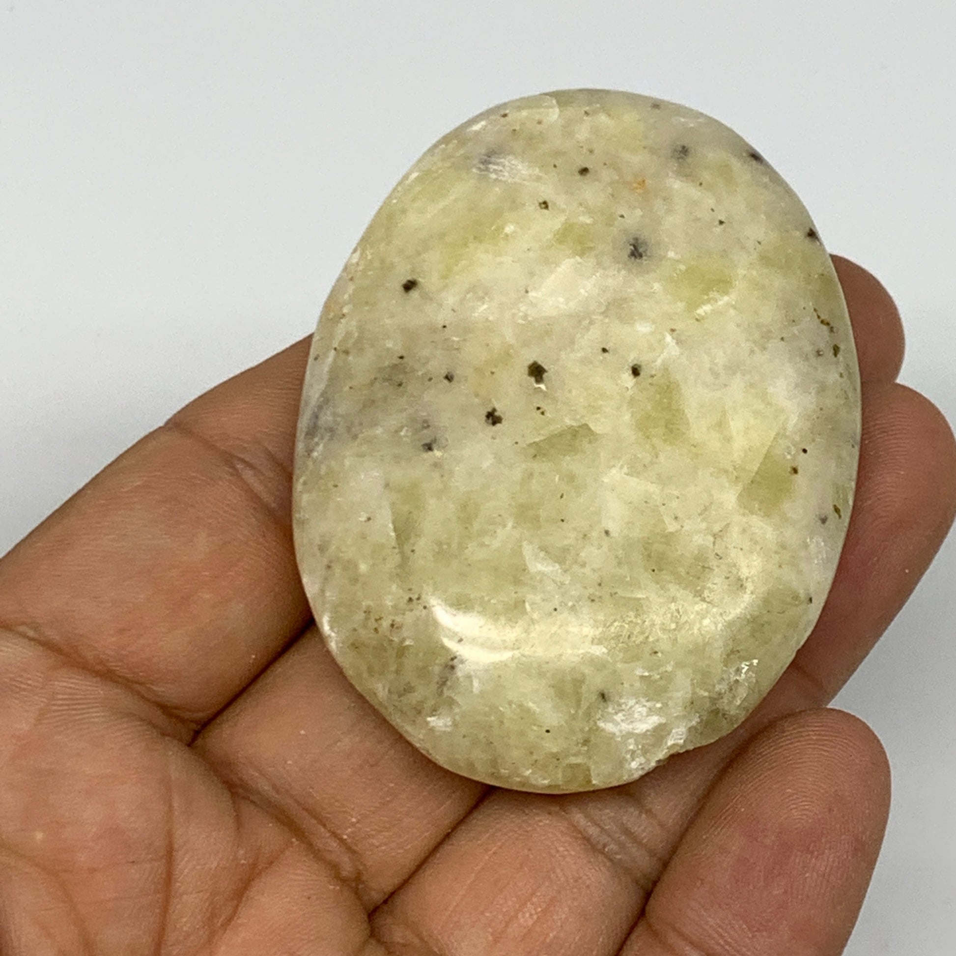 60.7g, 2.2"x1.7"x0.6", Natural Yellow Calcite Palm-Stone Crystal Polished Reiki, B16761