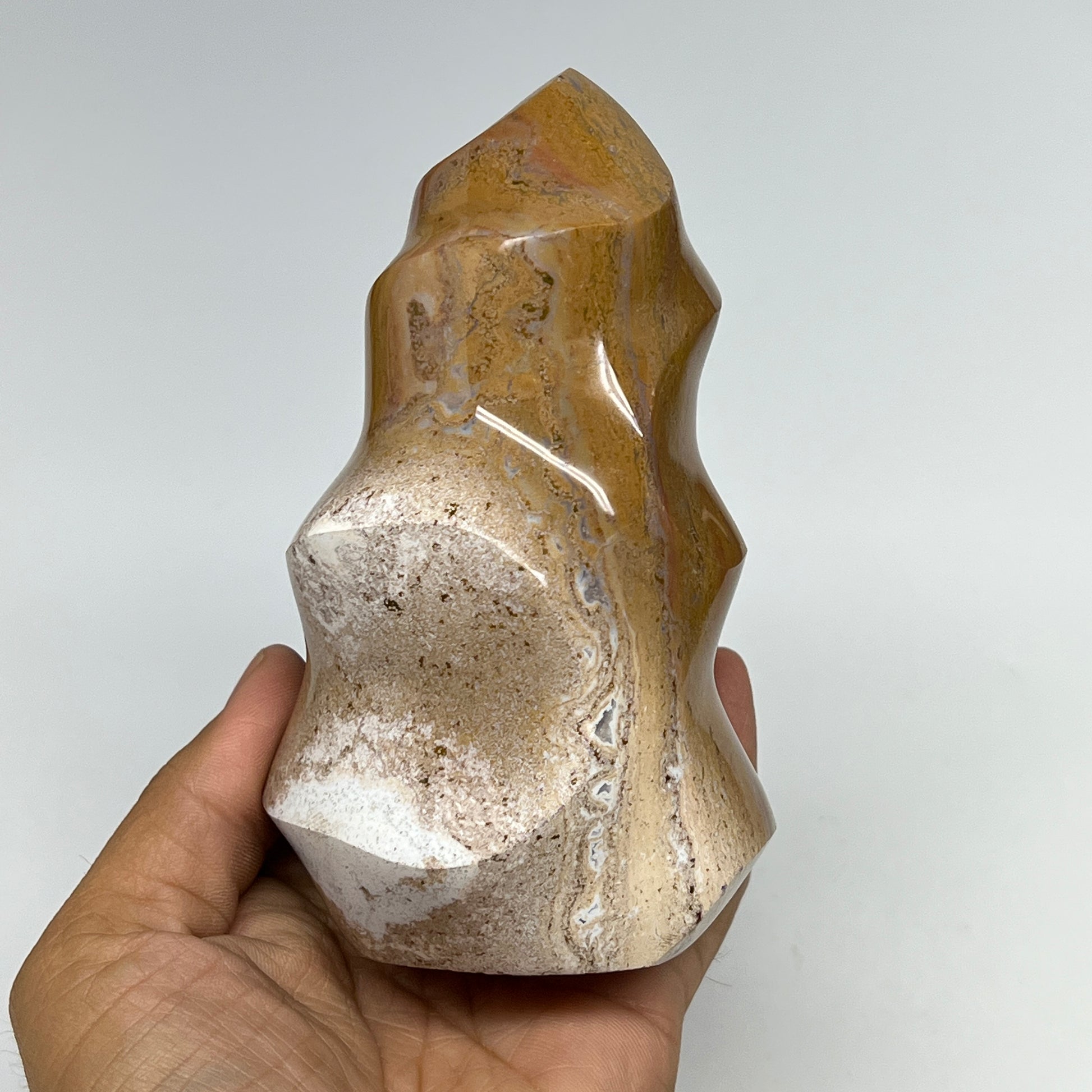 555g, 4"x2.9"x2.3", Natural Ocean Jasper Flame Gemstones Reiki Tool, B19604