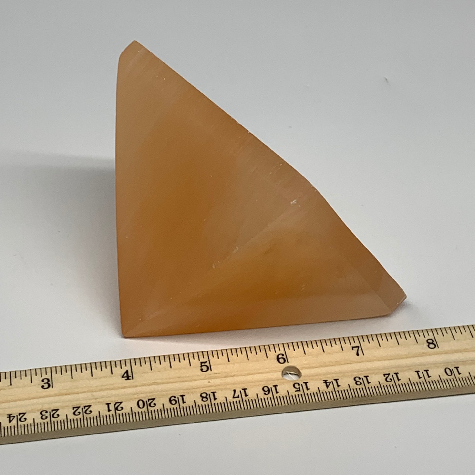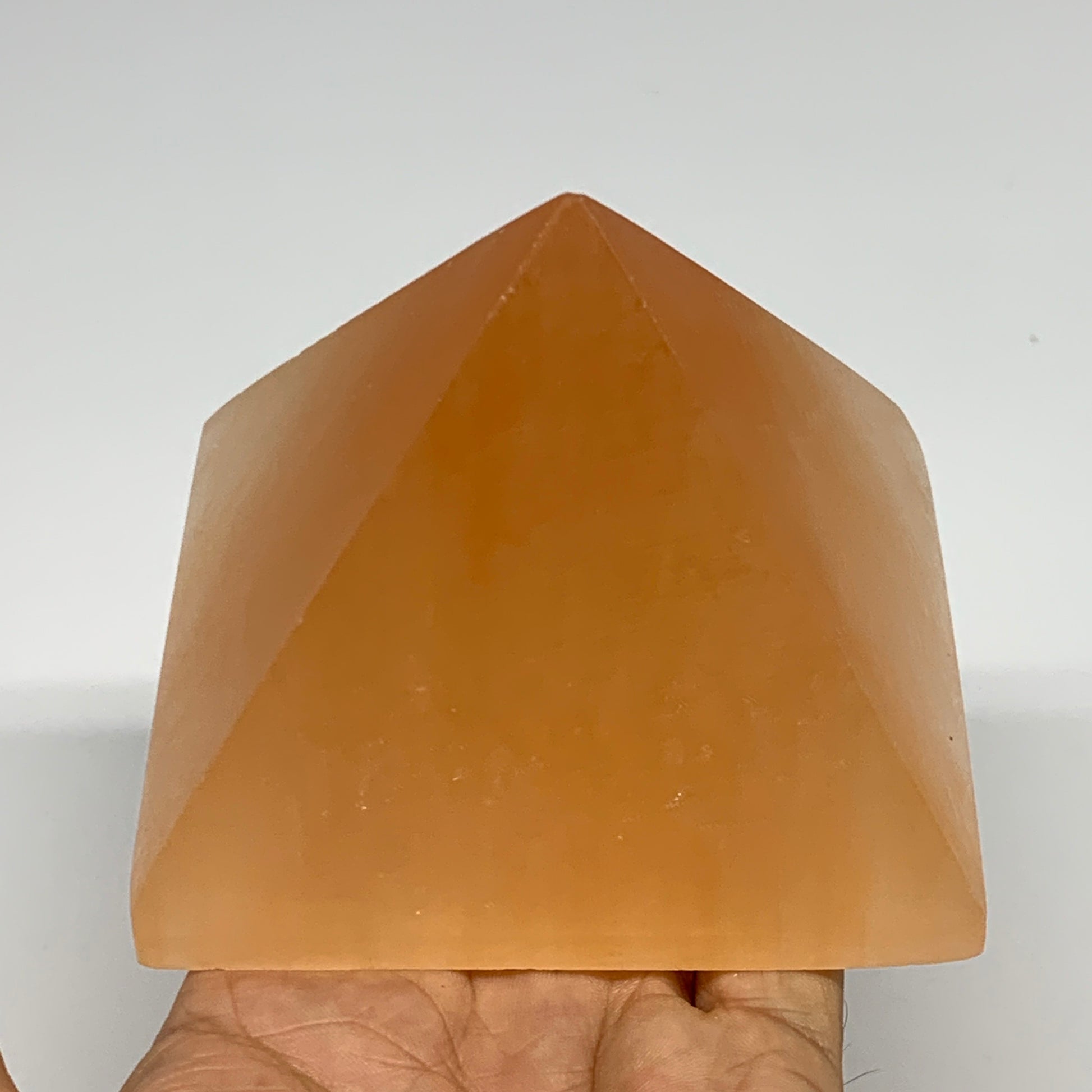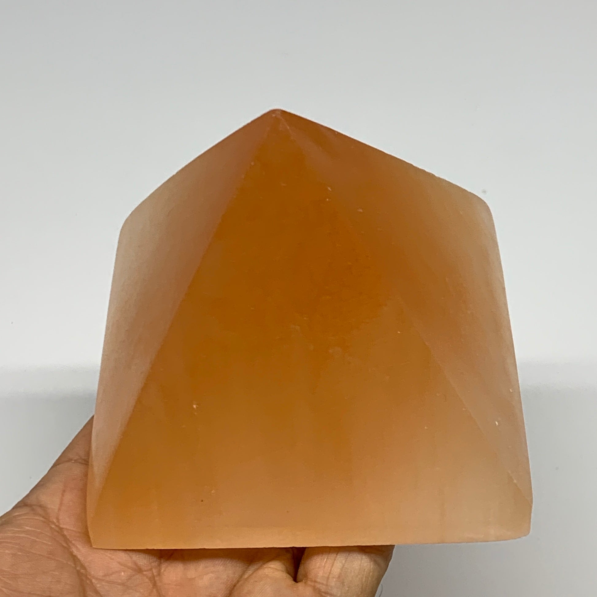 608g, 2.9"x3.6" Orange Selenite/Satin Spar Pyramid Crystal @Morocco, B24200