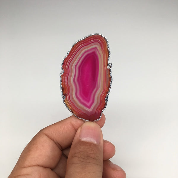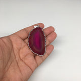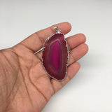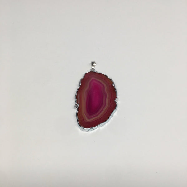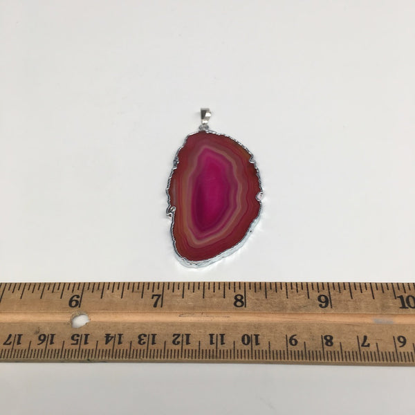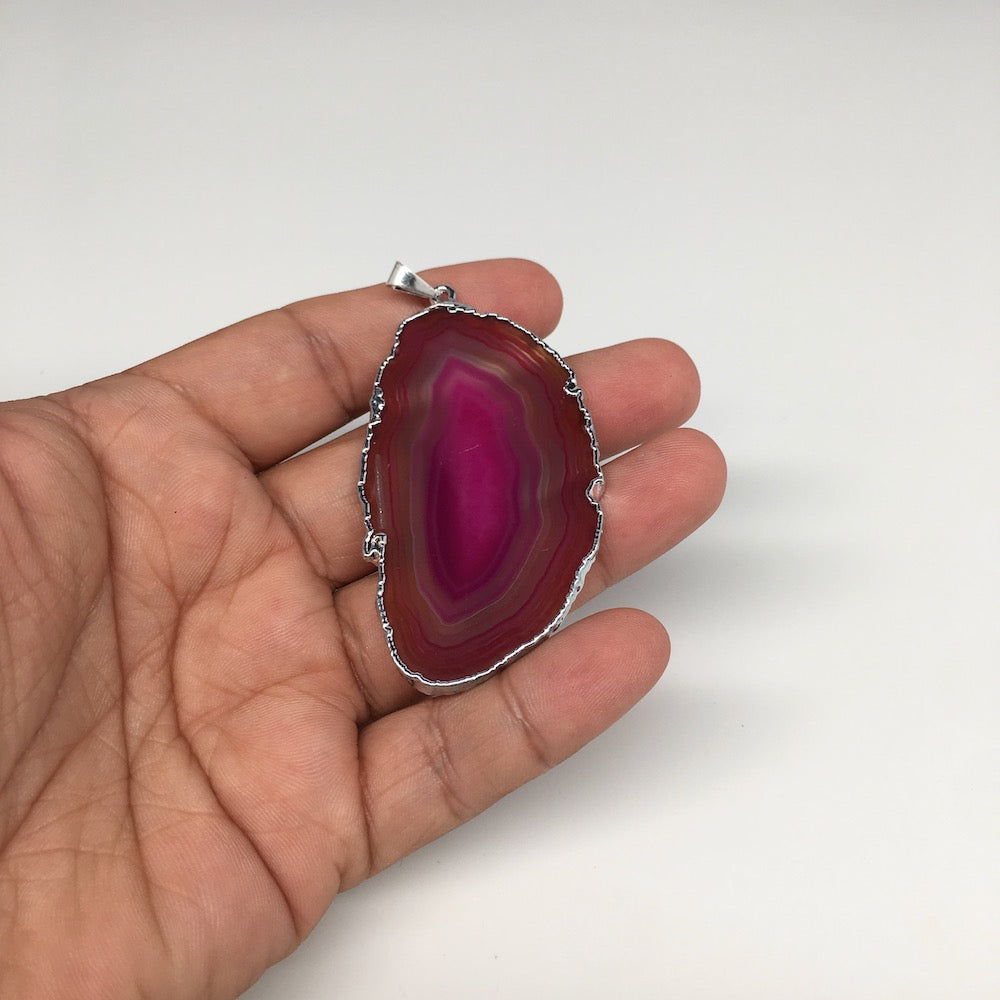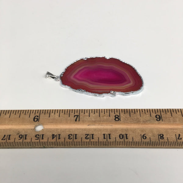 61.5cts, 2.8"x1.4" Blue Agate Druzy Geode Pendant Silver Plated @Brazil, Bp1300