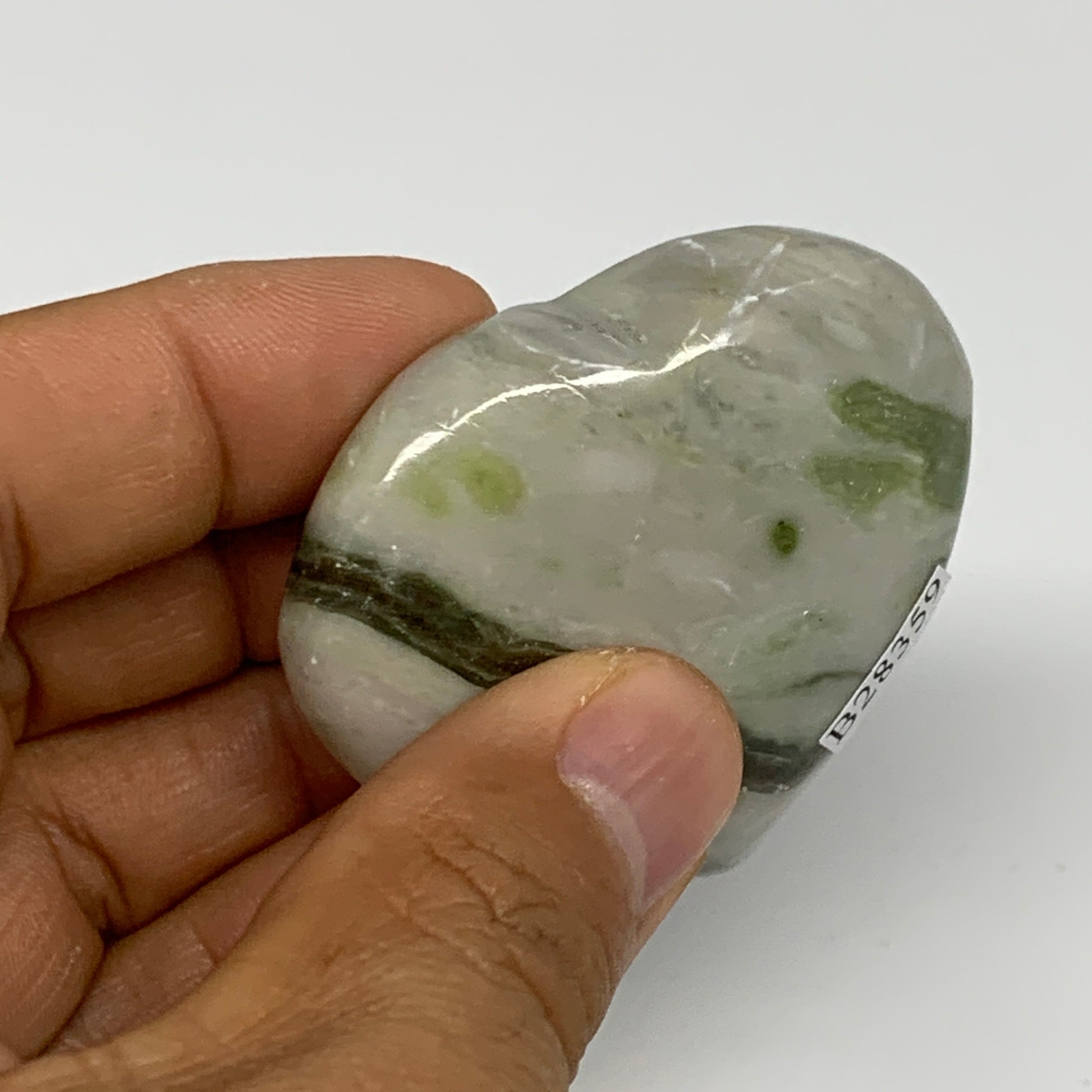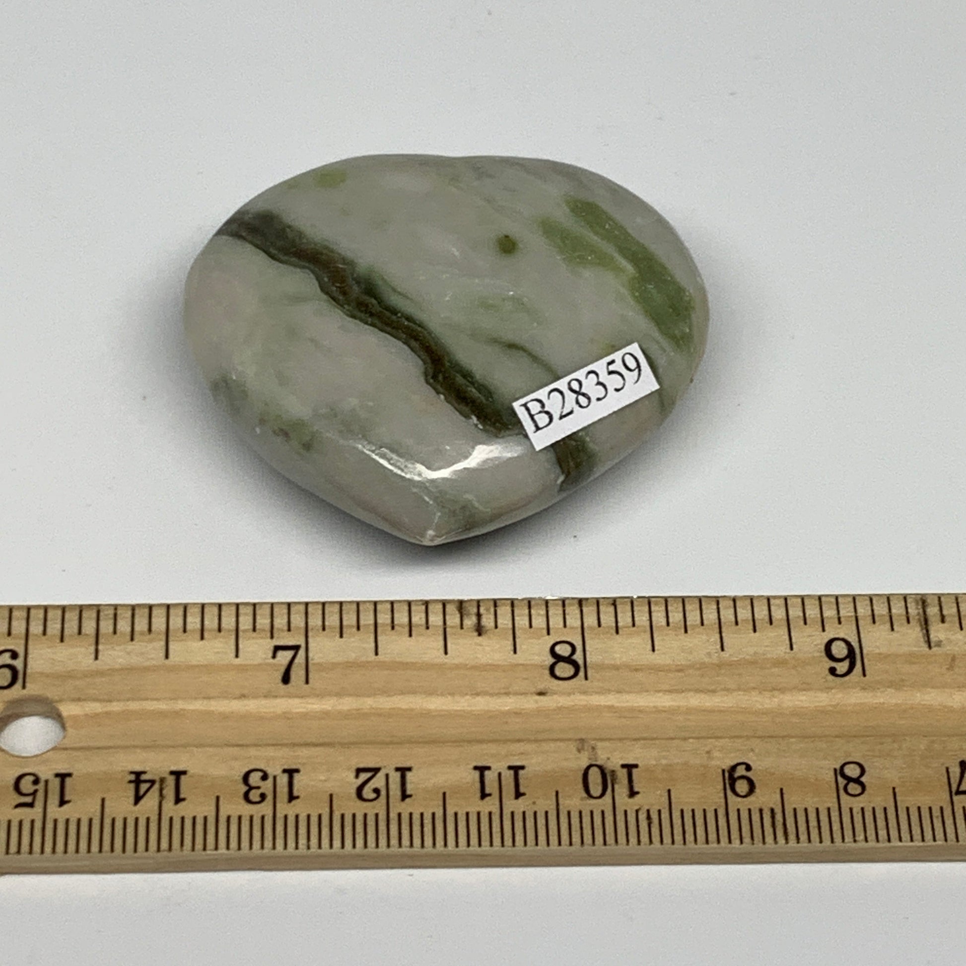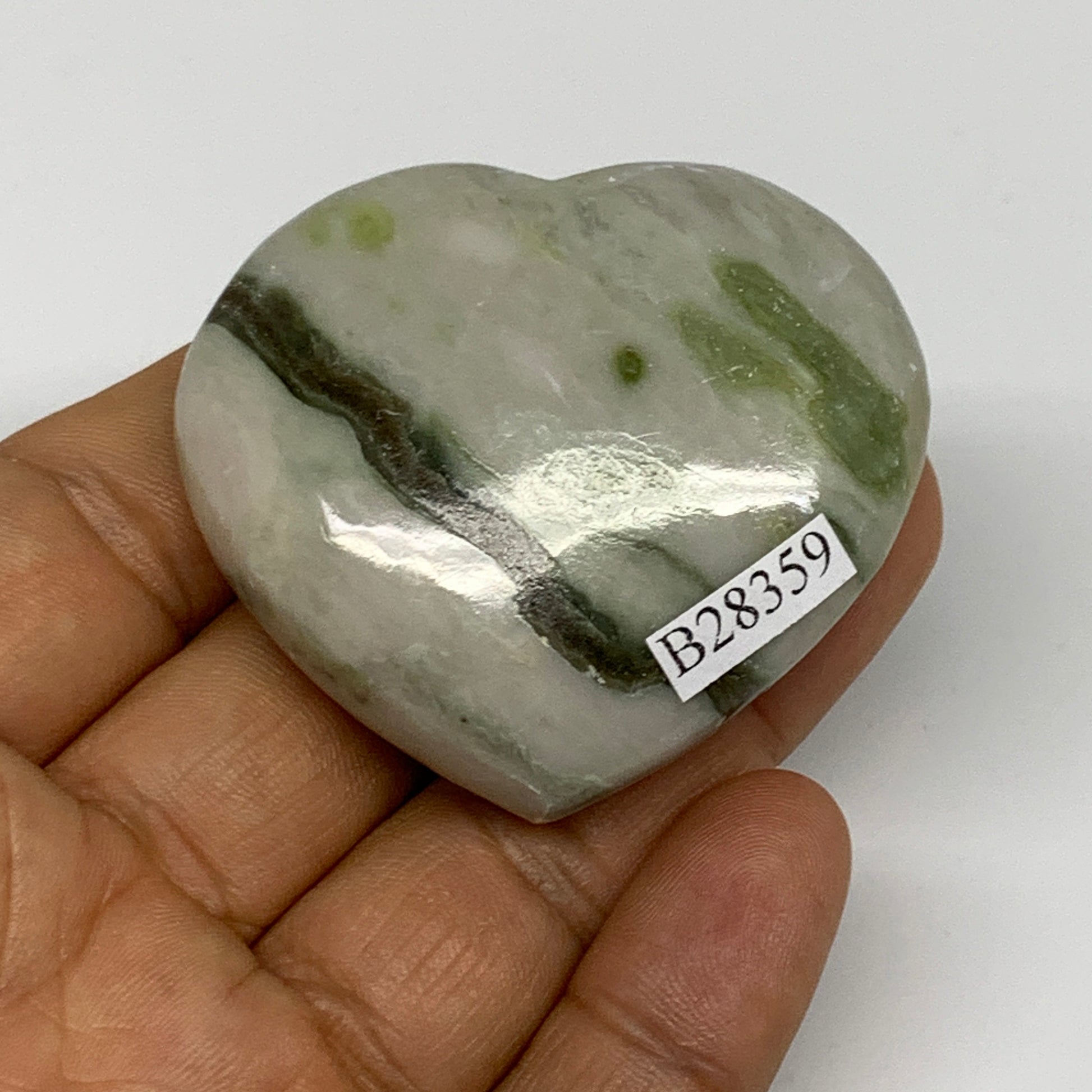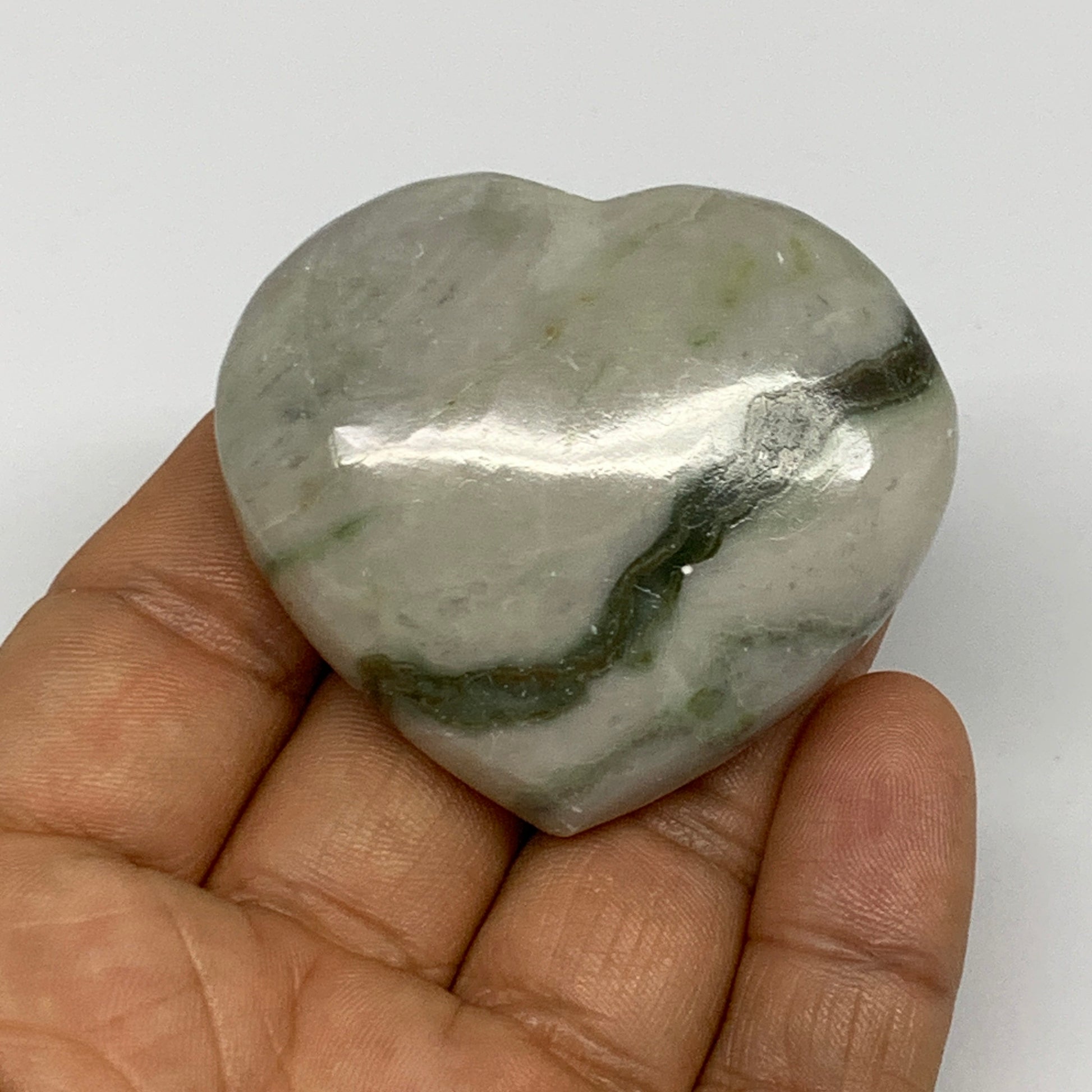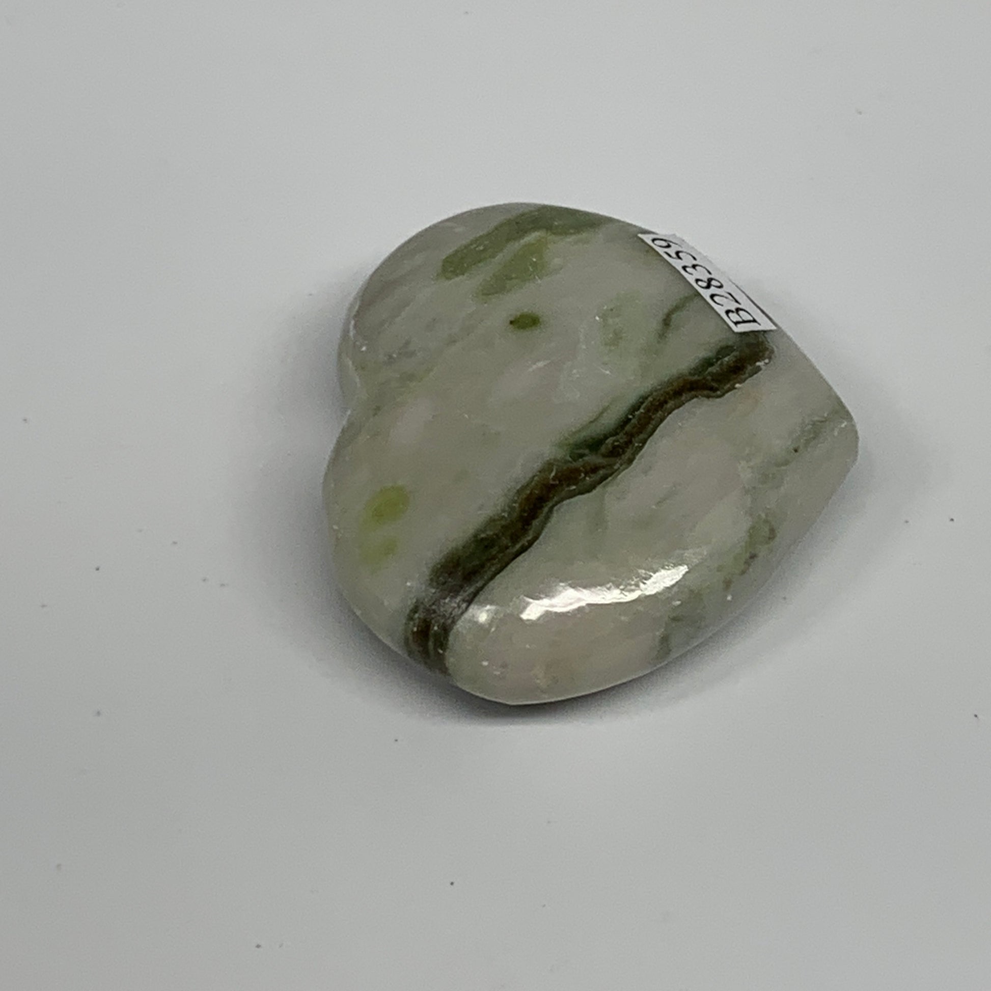 65g, 1.8"x2"x0.7" Green Serpentine Heart Gemstones @India, B28359
