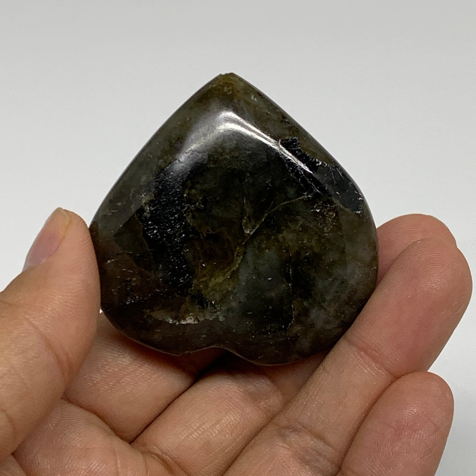 65g, 1.9"x2"x0.8", Natural Labradorite Heart Polished Crystal, B35508