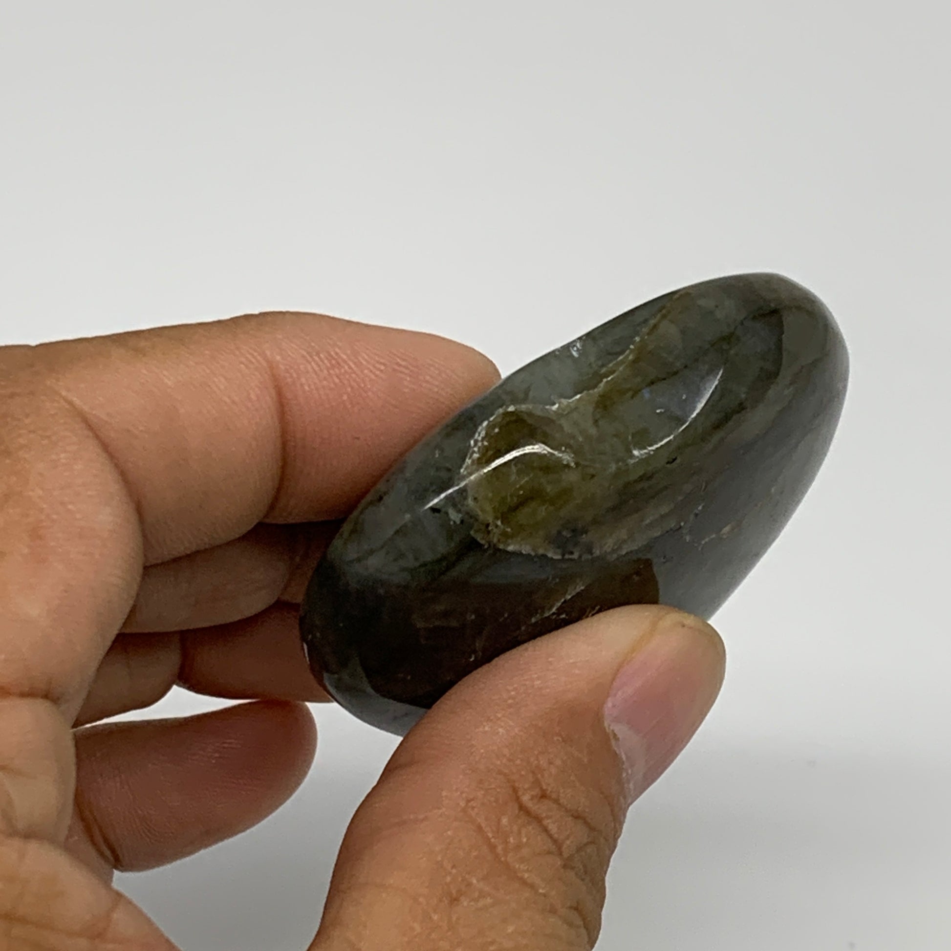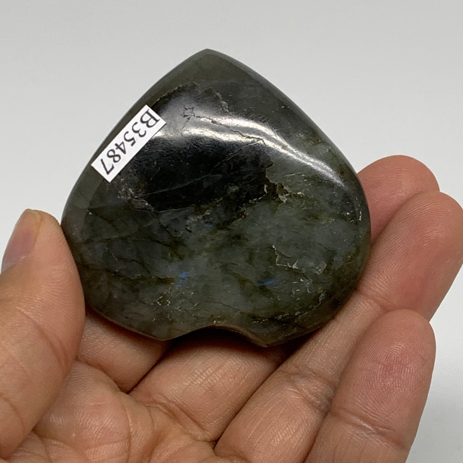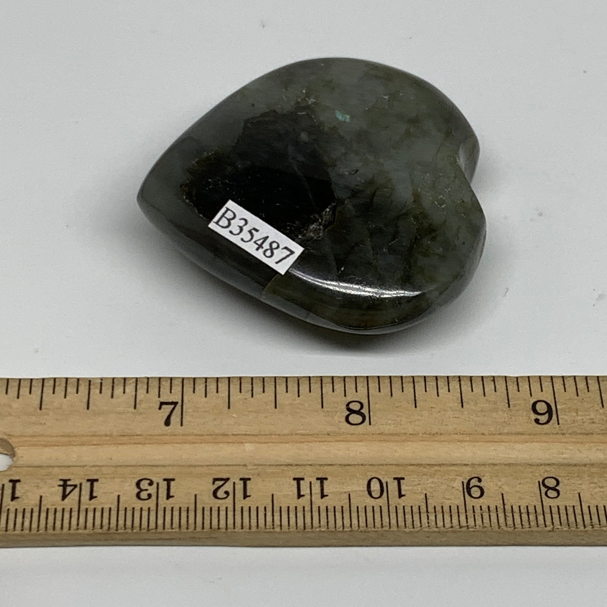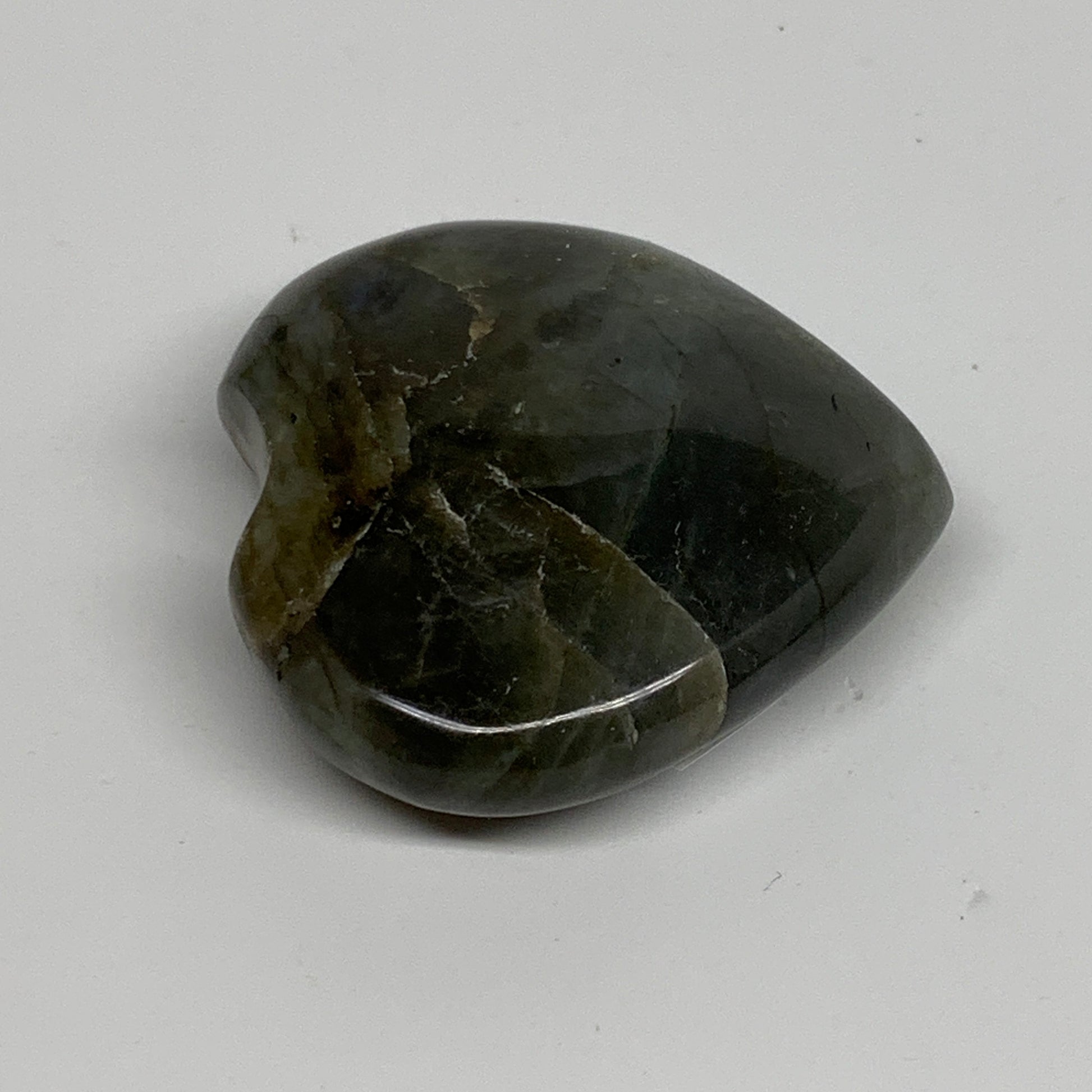 67.3g, 2"x2.1"x0.7", Natural Labradorite Heart Polished Crystal, B35487