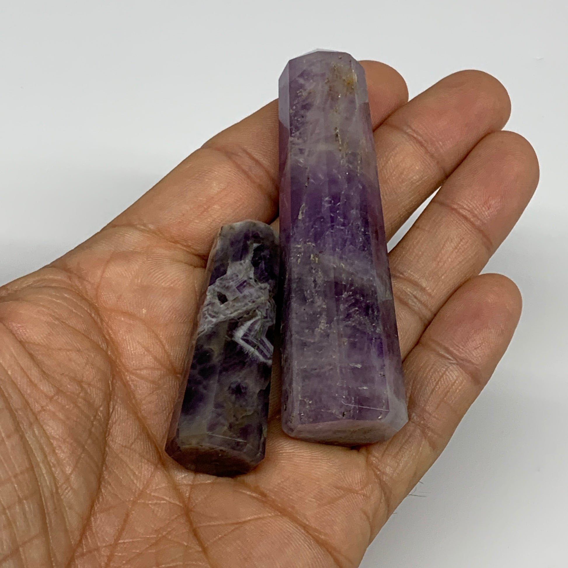 68.5g, 1.9"- 3", 2pcs, Natural Amethyst Tower Point Obelisk @Brazil, B31275