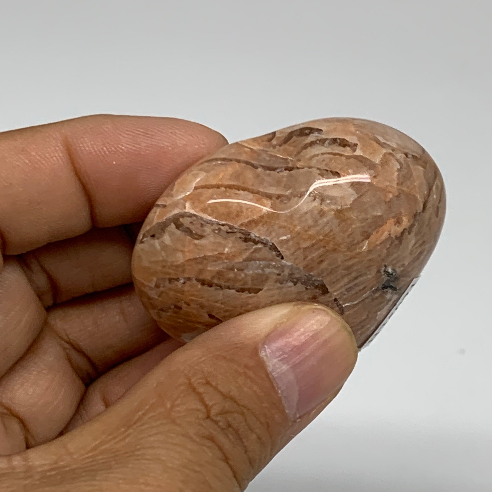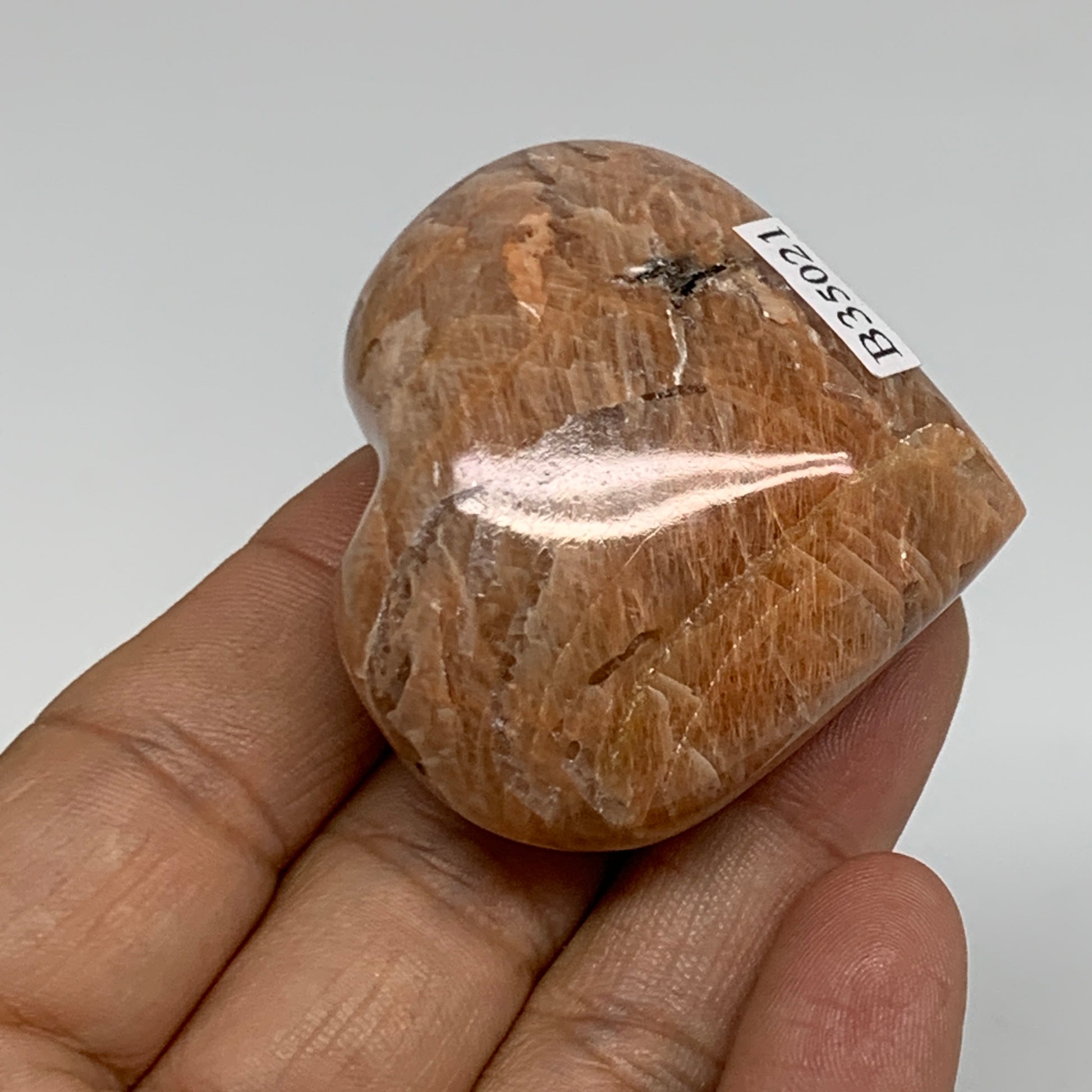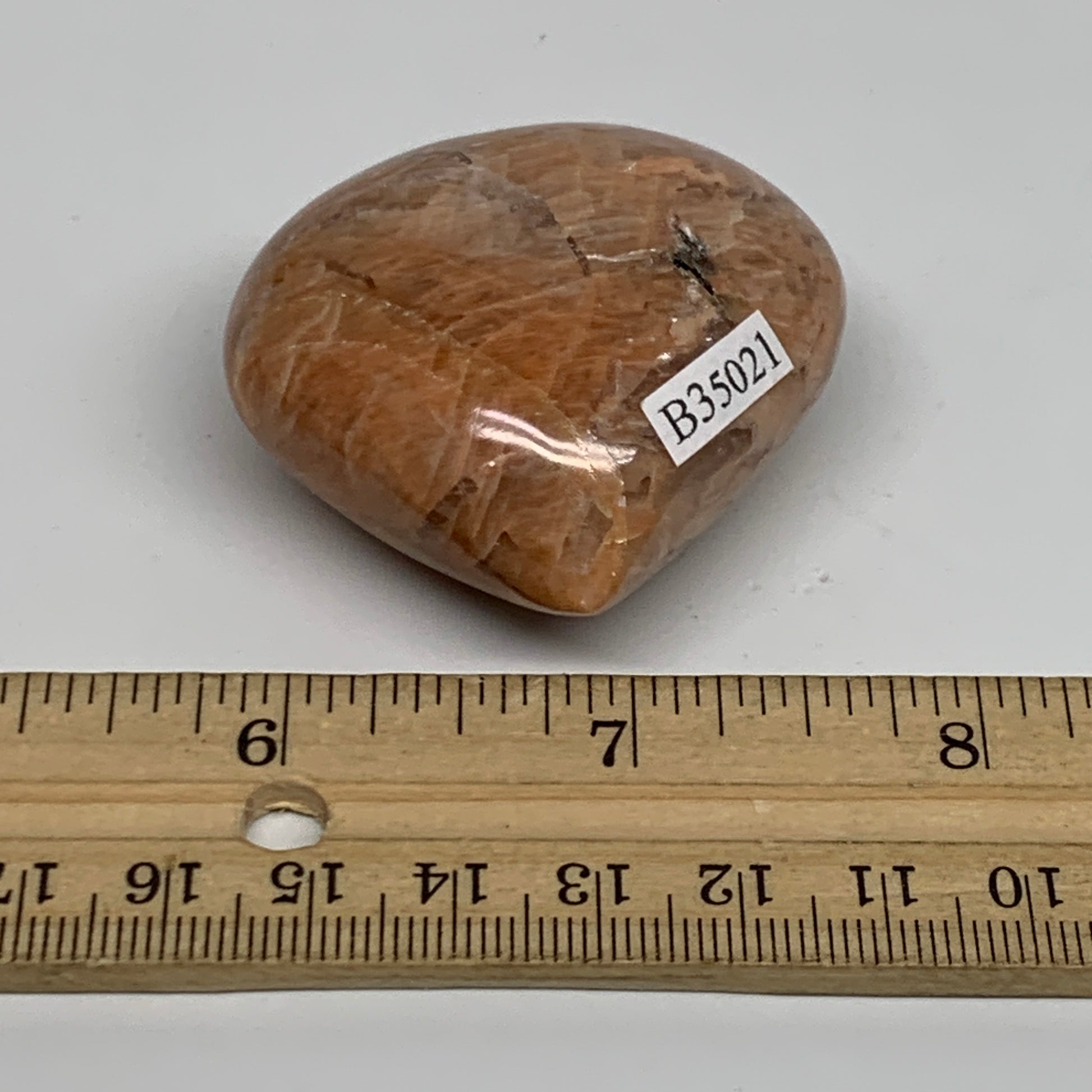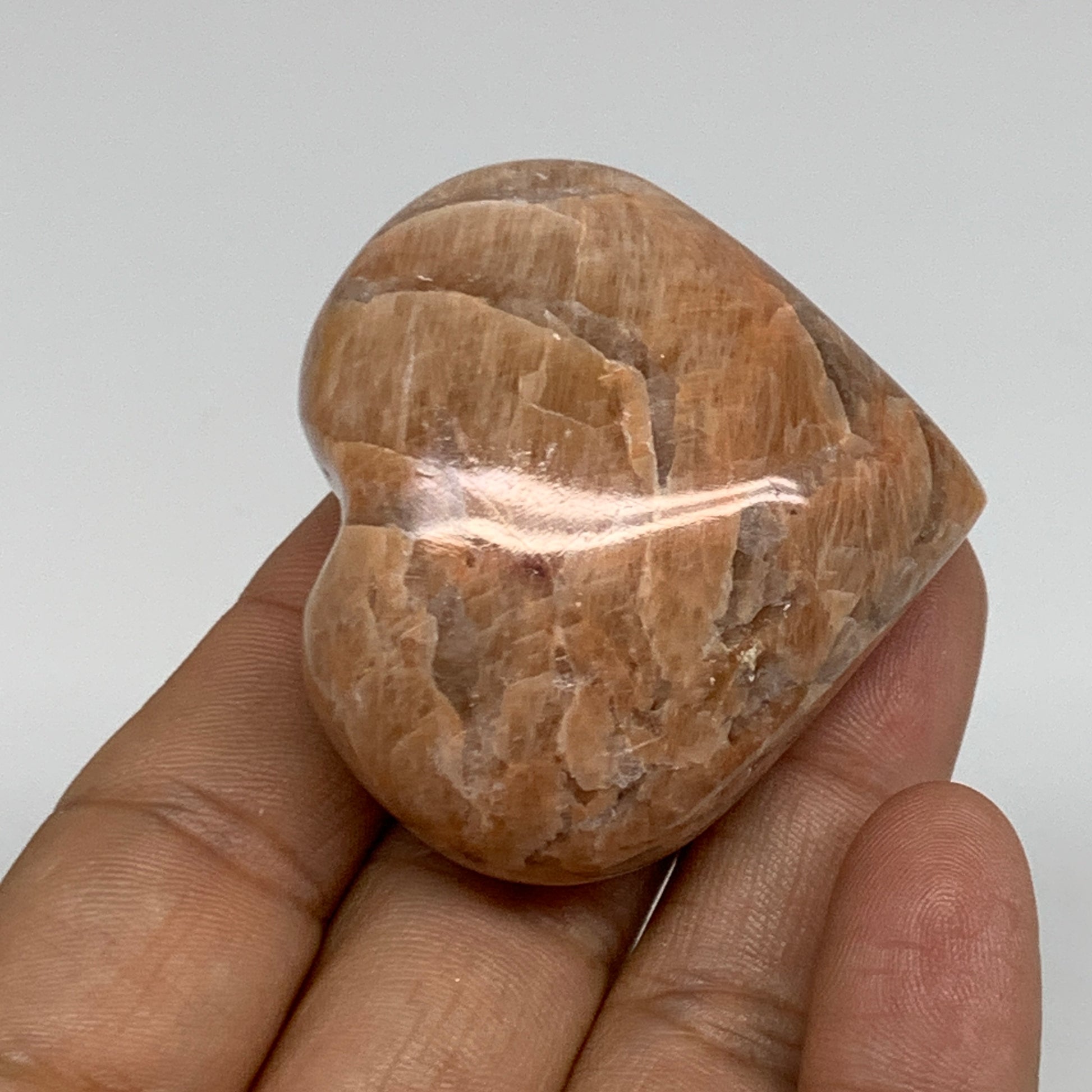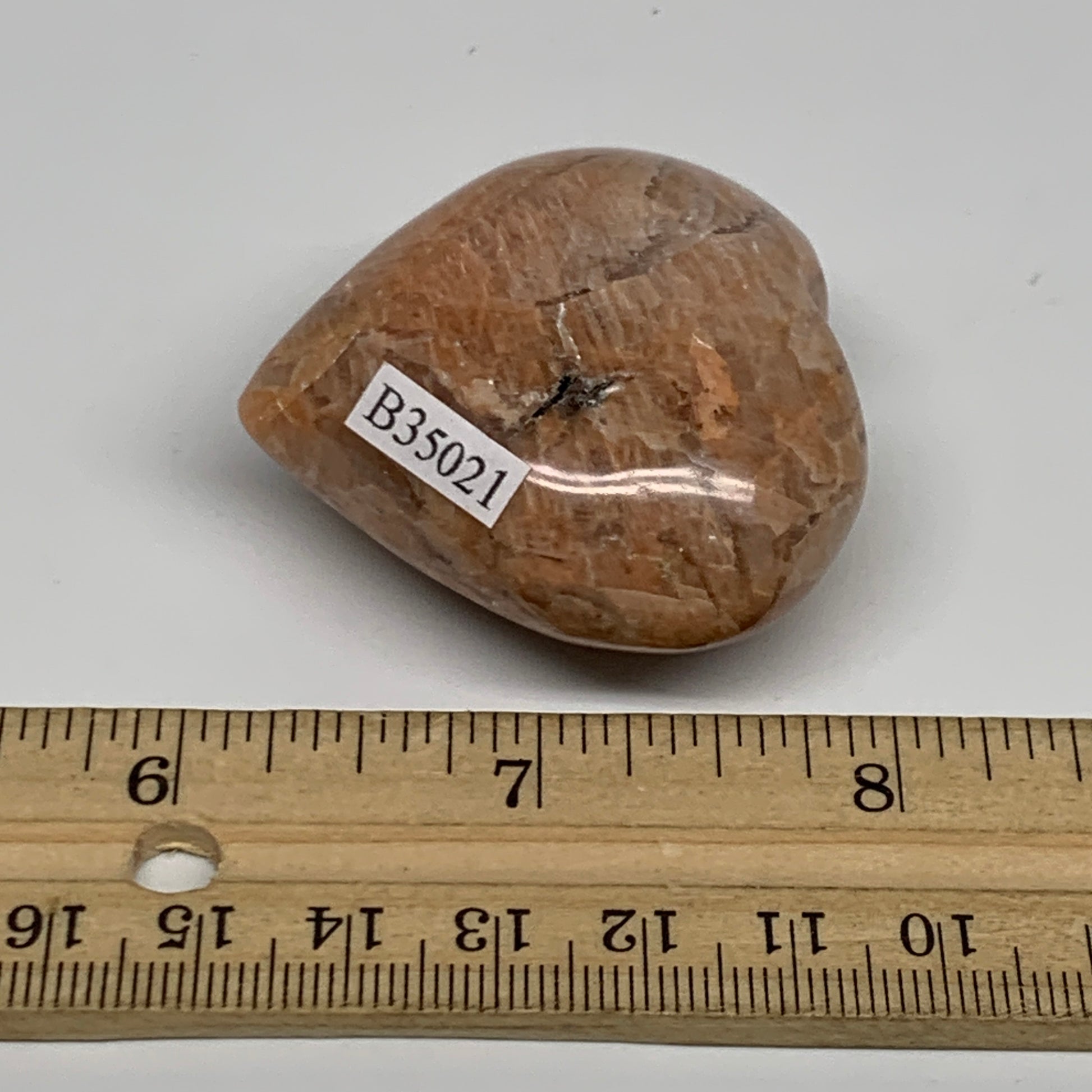 68.7g, 1.8"x1.9"x1", Peach Moonstone Heart Crystal Polished, B35021