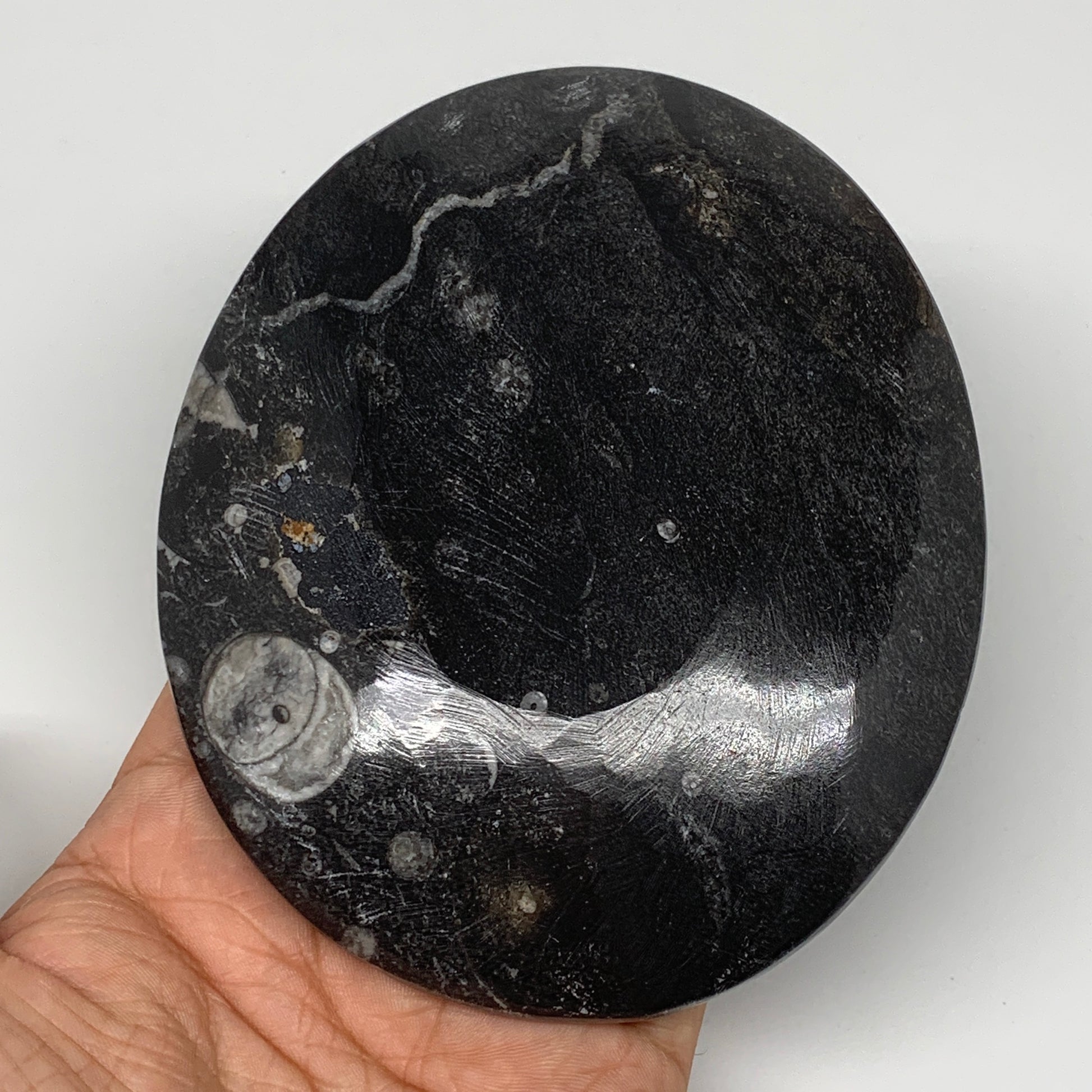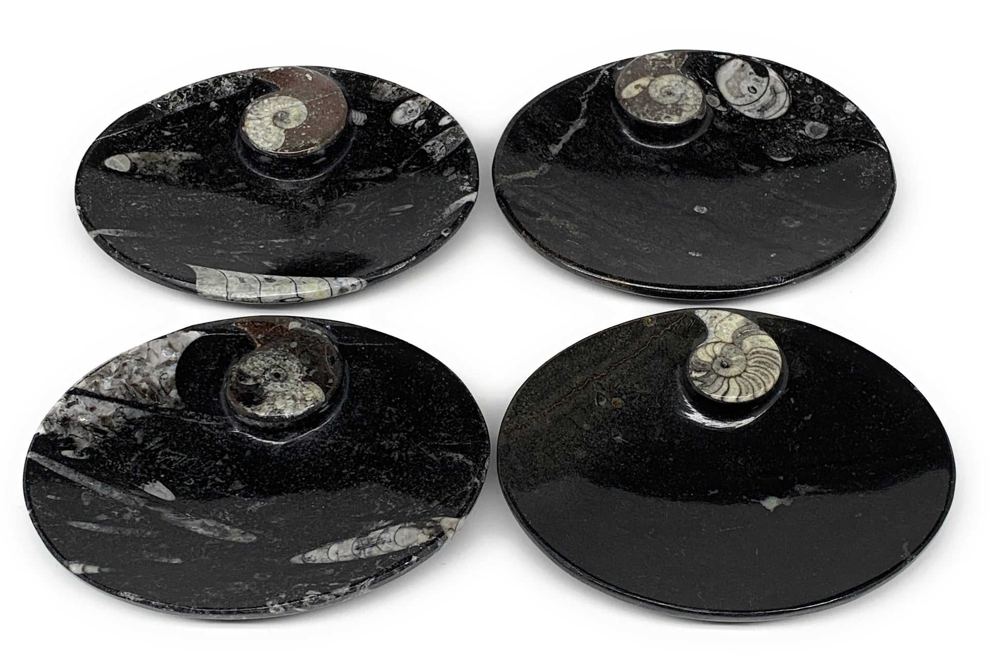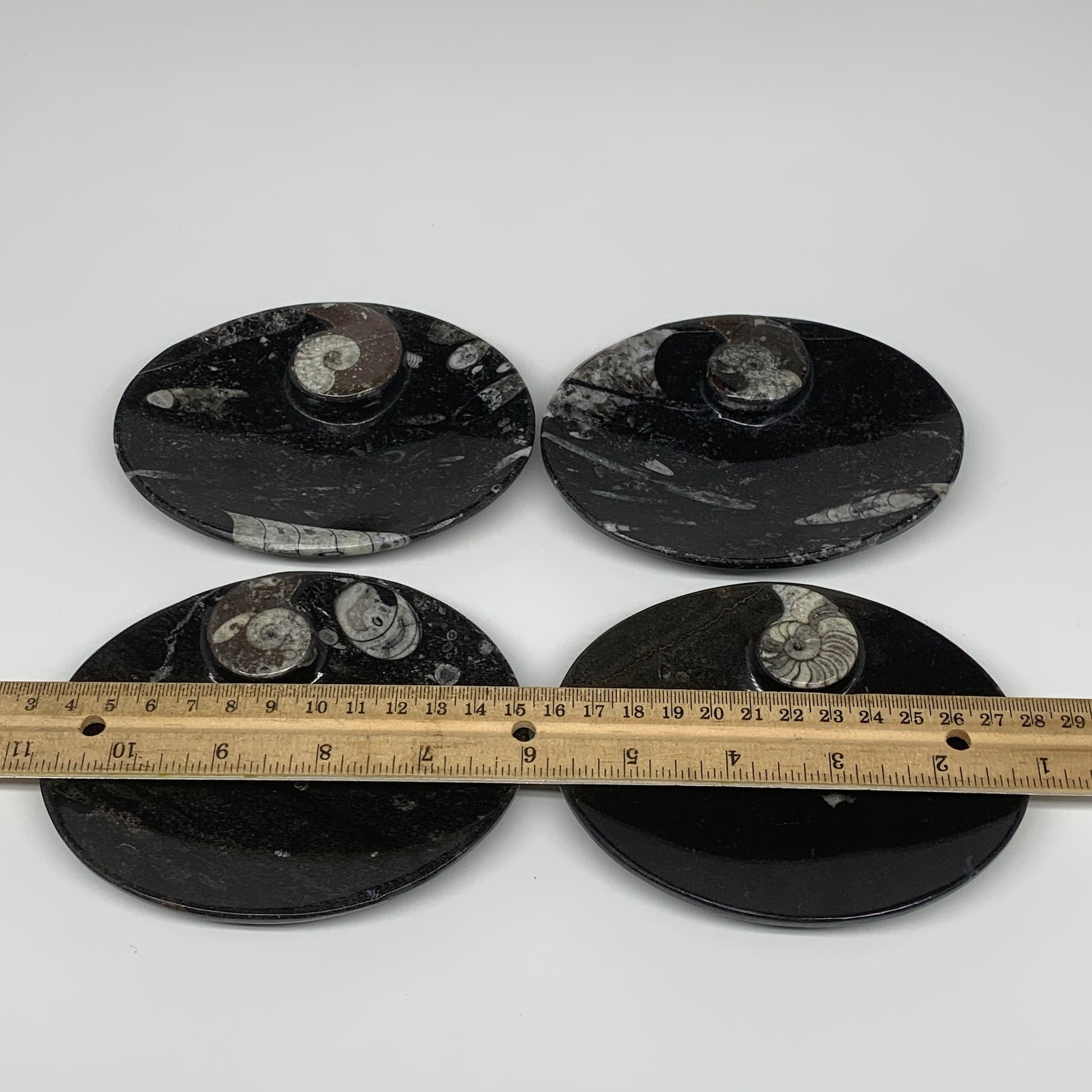 694g, 4pcs, 4.7"x3.8" Small Black Fossils Ammonite Orthoceras Bowl Oval Ring,B88