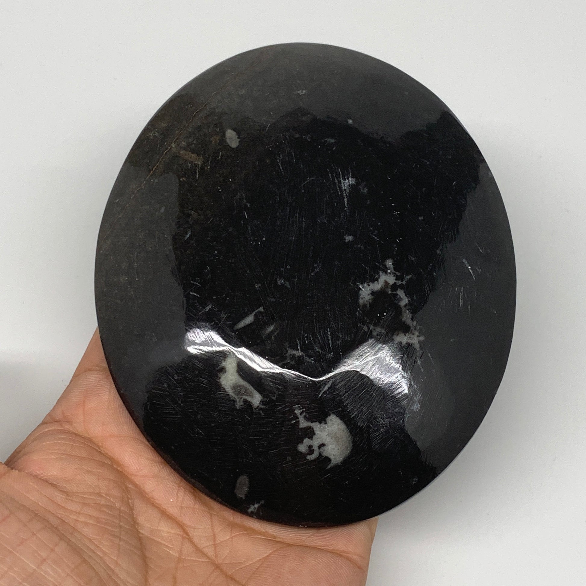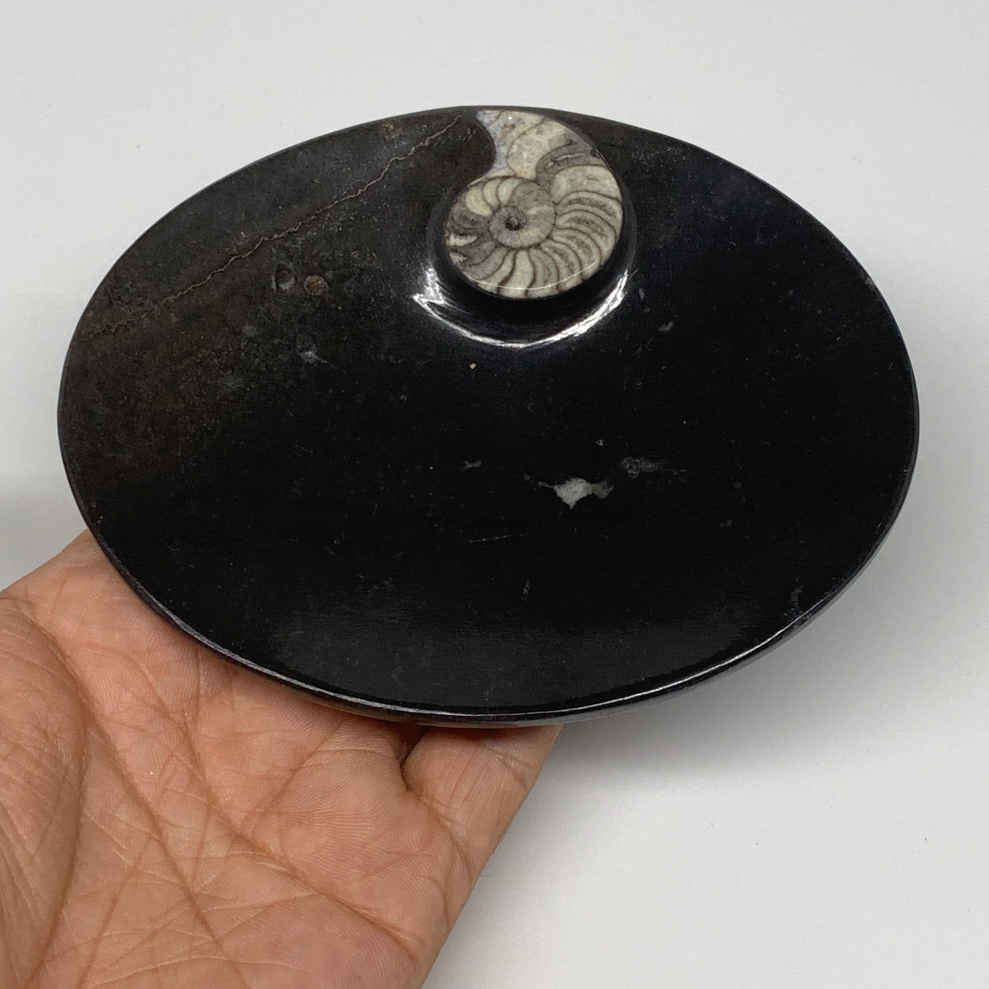 694g, 4pcs, 4.7"x3.8" Small Black Fossils Ammonite Orthoceras Bowl Oval Ring,B8891