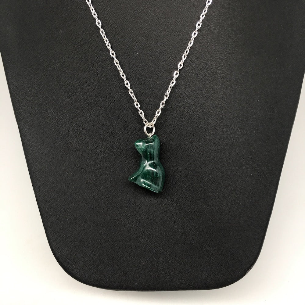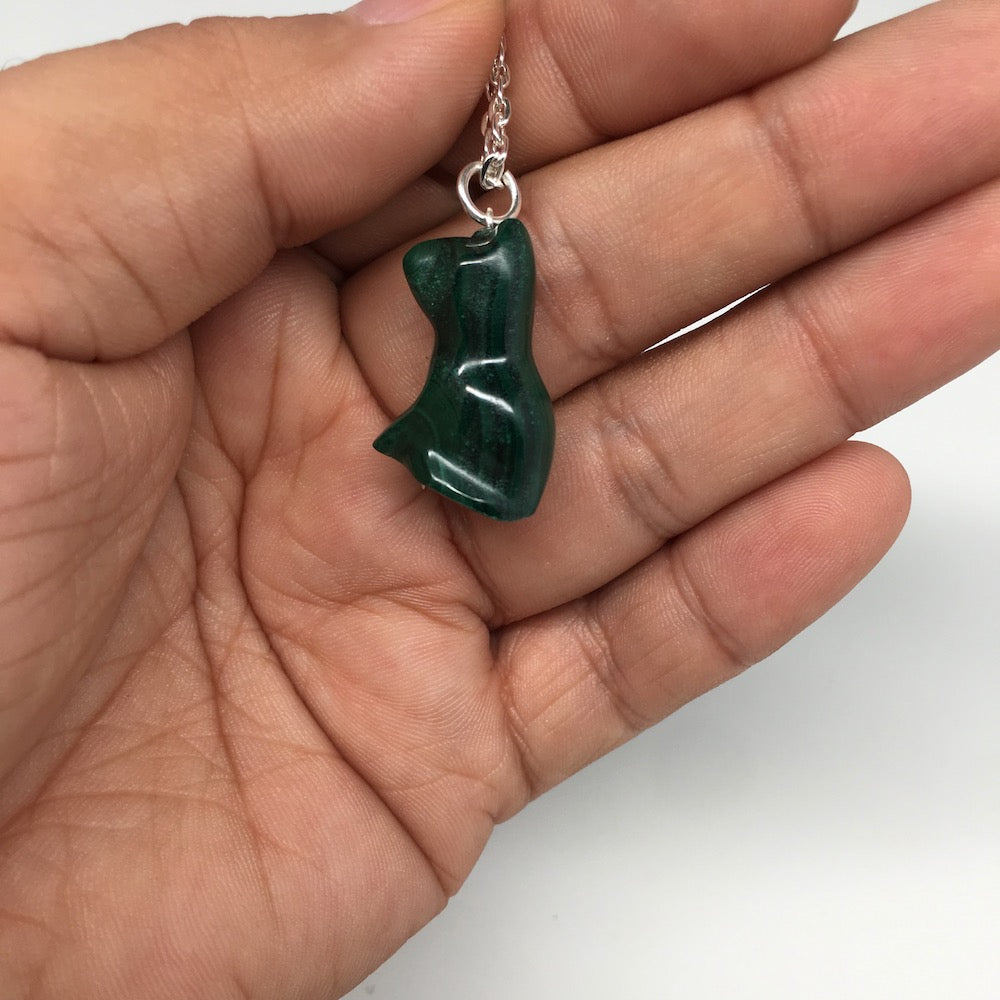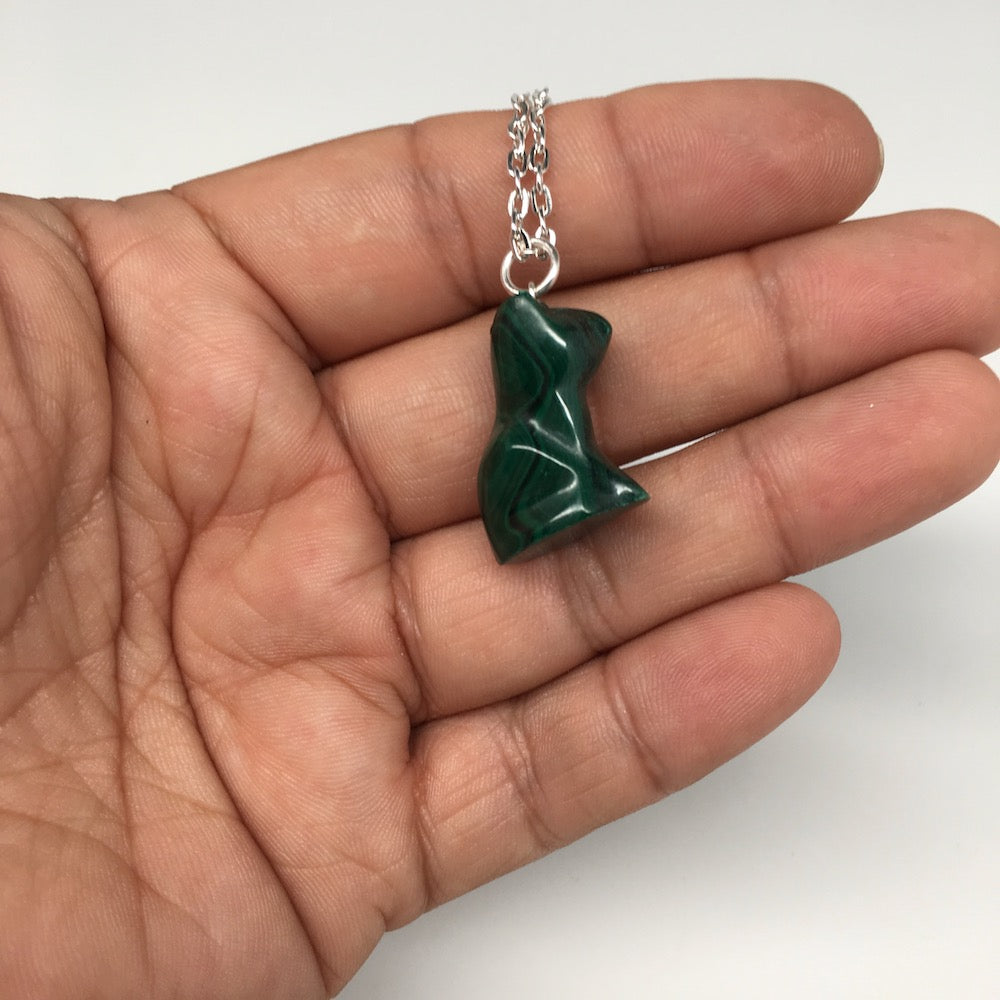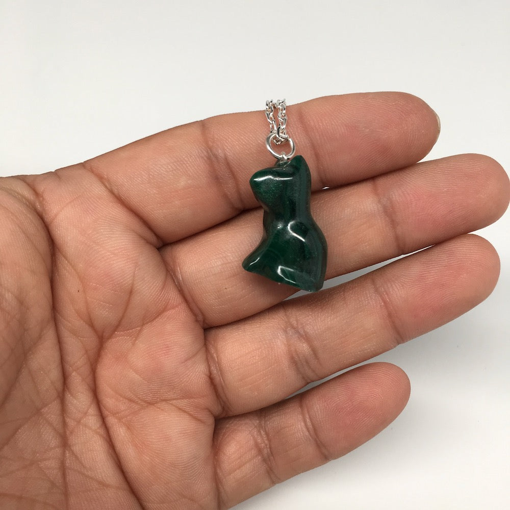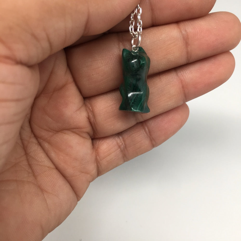 7.2g,1"x0.6"x11mm Natural Solid Malachite Animal Pendant W/Chain Congo,MS190