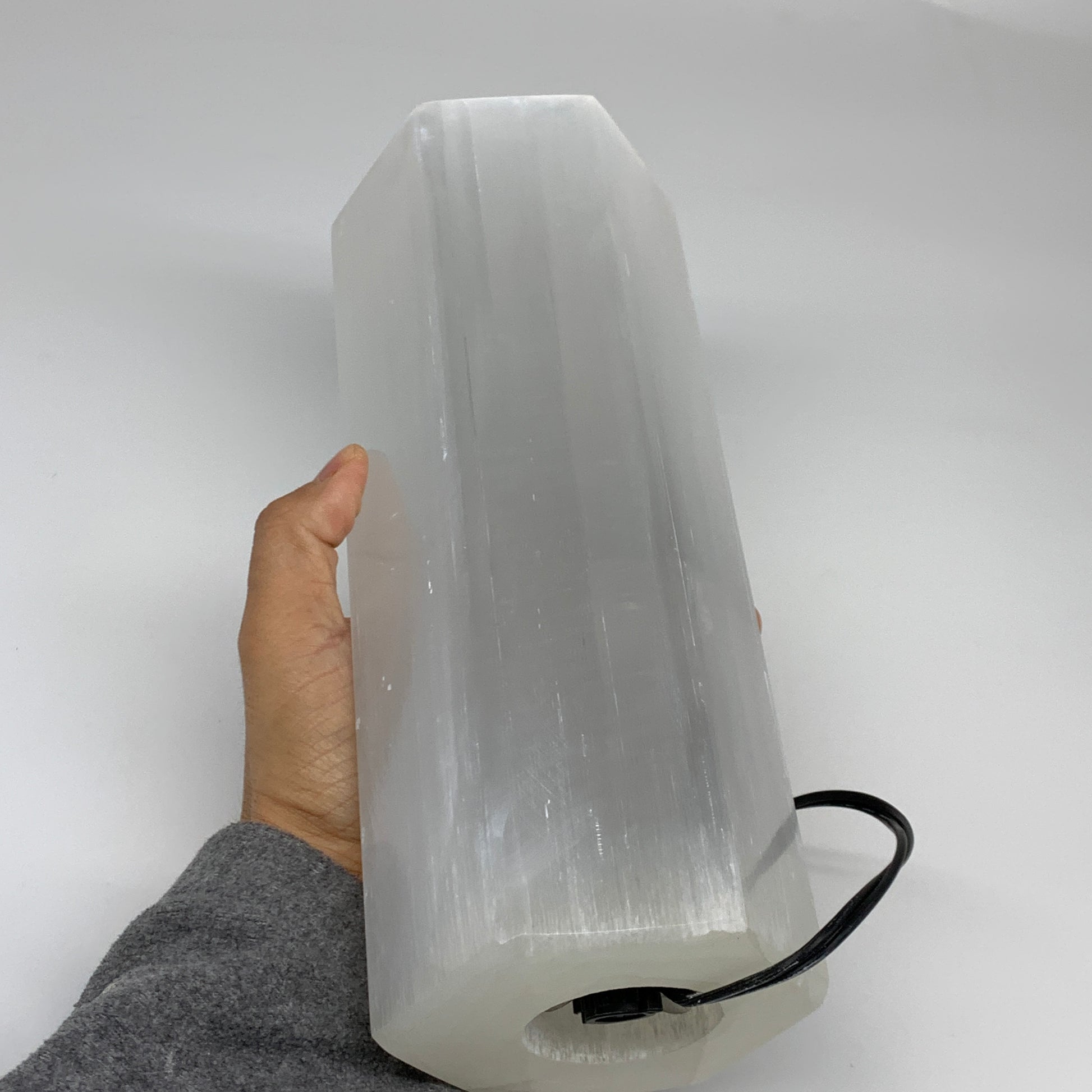 7.5 lbs. 9.5"x3.4", Hexagon Selenite (Satin Spar) Lamp, w/6ft Chord, B35834