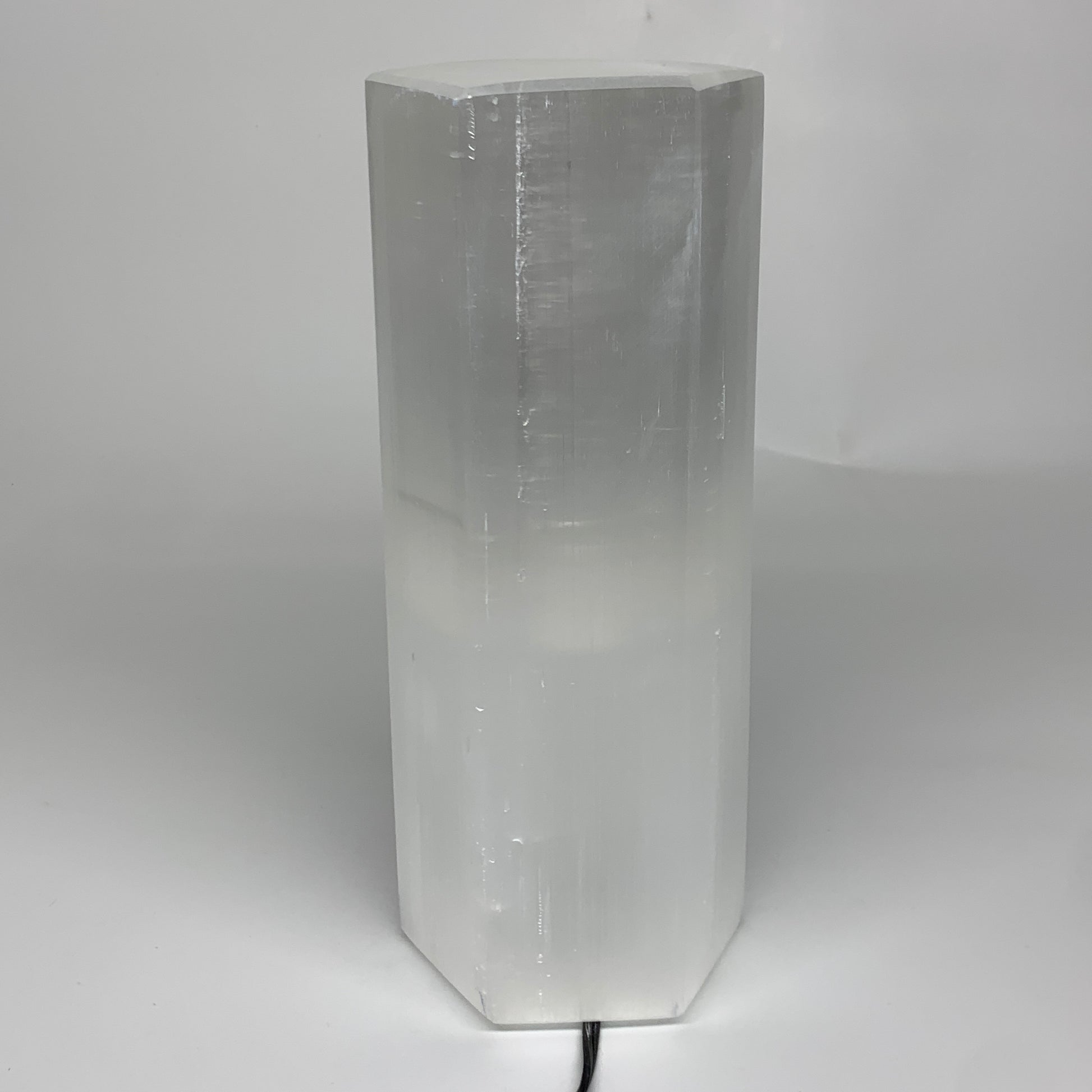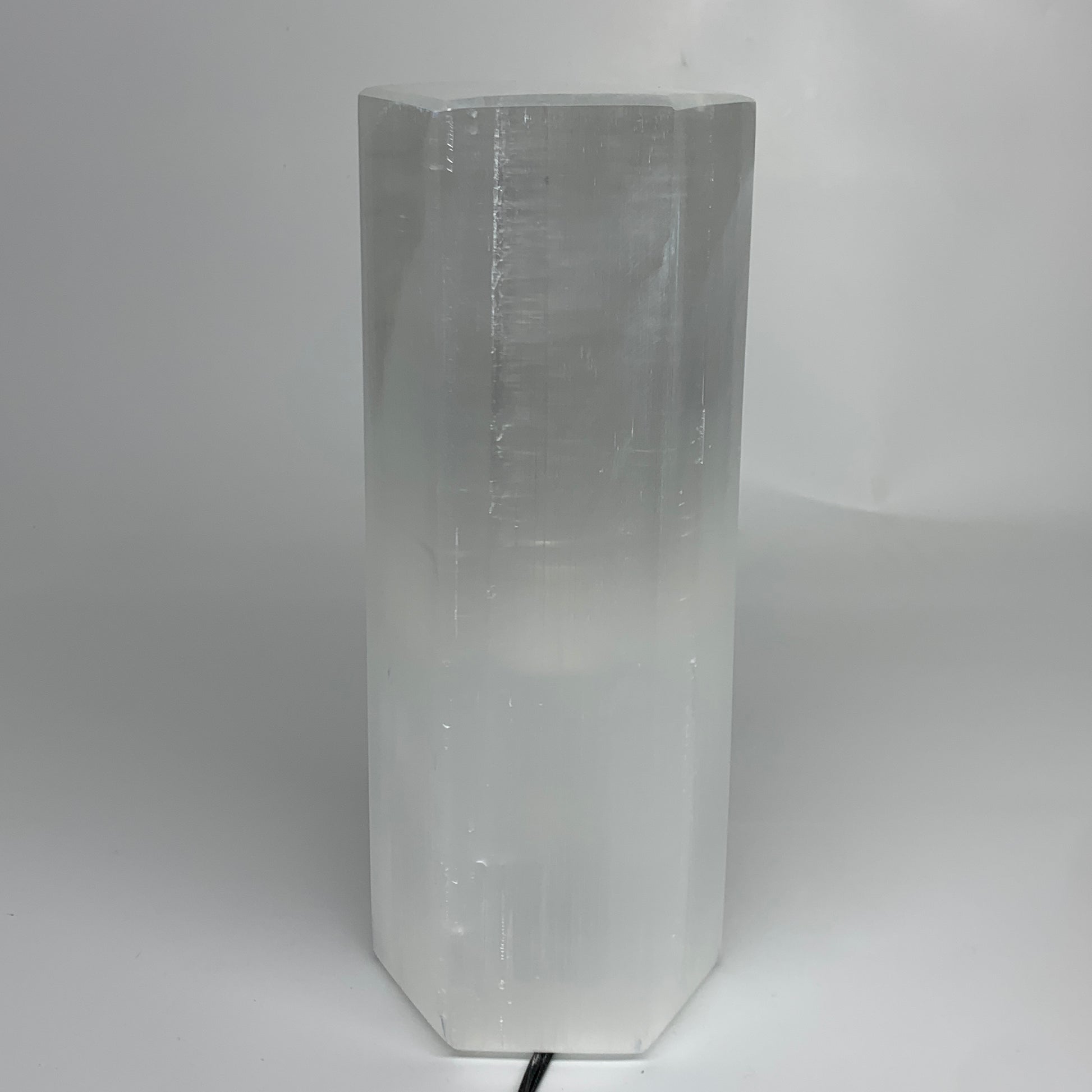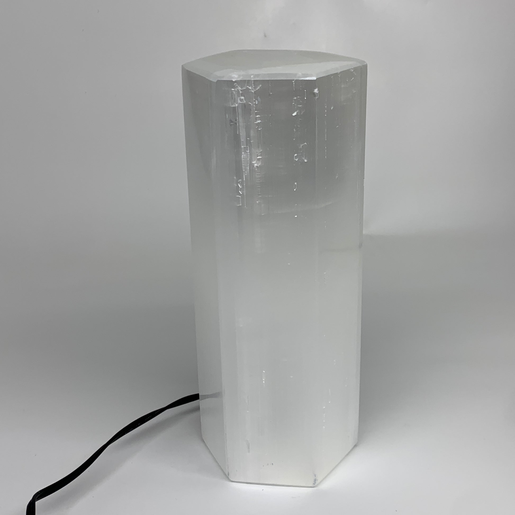 7.6 lbs. 9.75"x3.5", Hexagon Selenite (Satin Spar) Lamp, w/6ft Chord, B35830