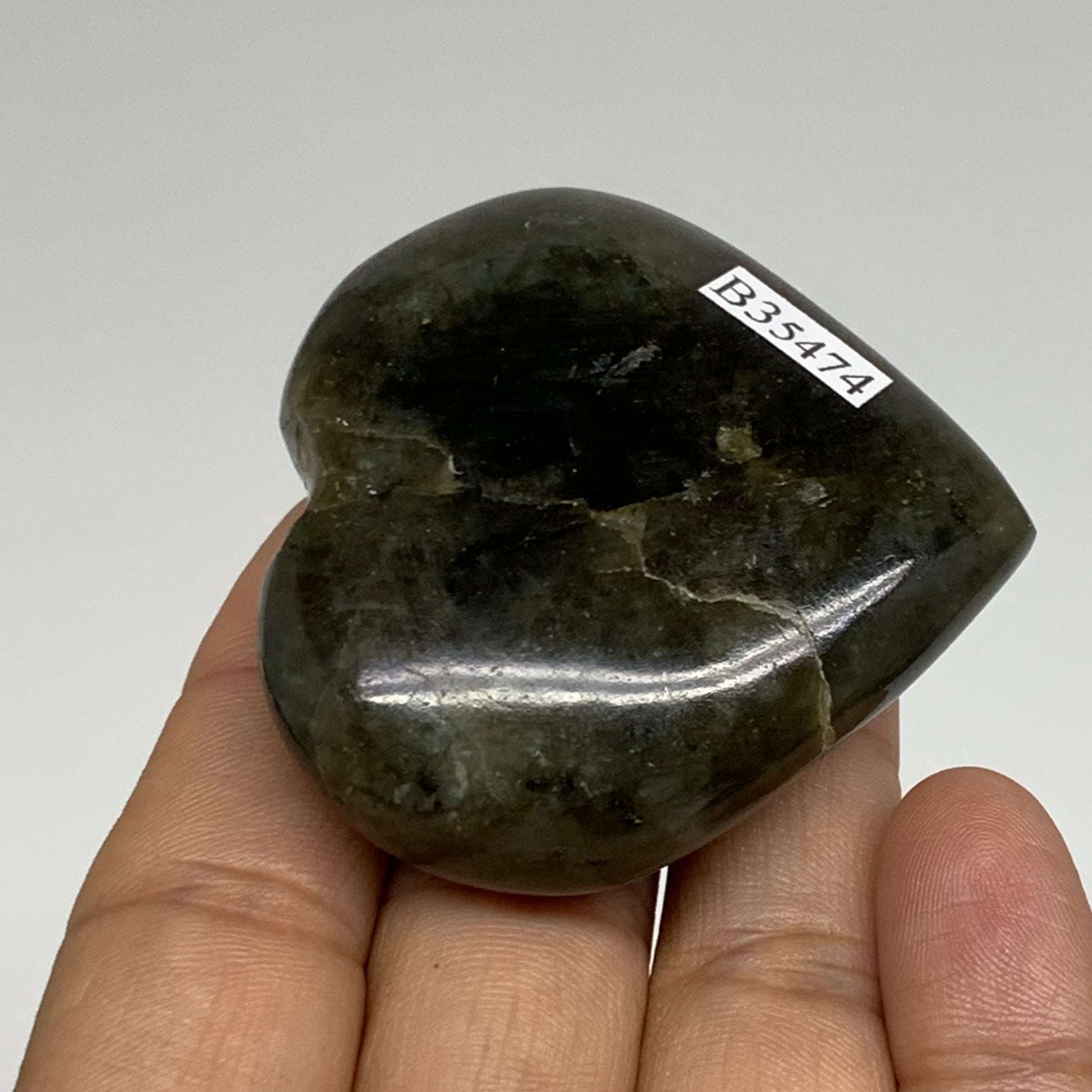70.8g, 2"x2.1"x0.7", Natural Labradorite Heart Polished Crystal, B35474