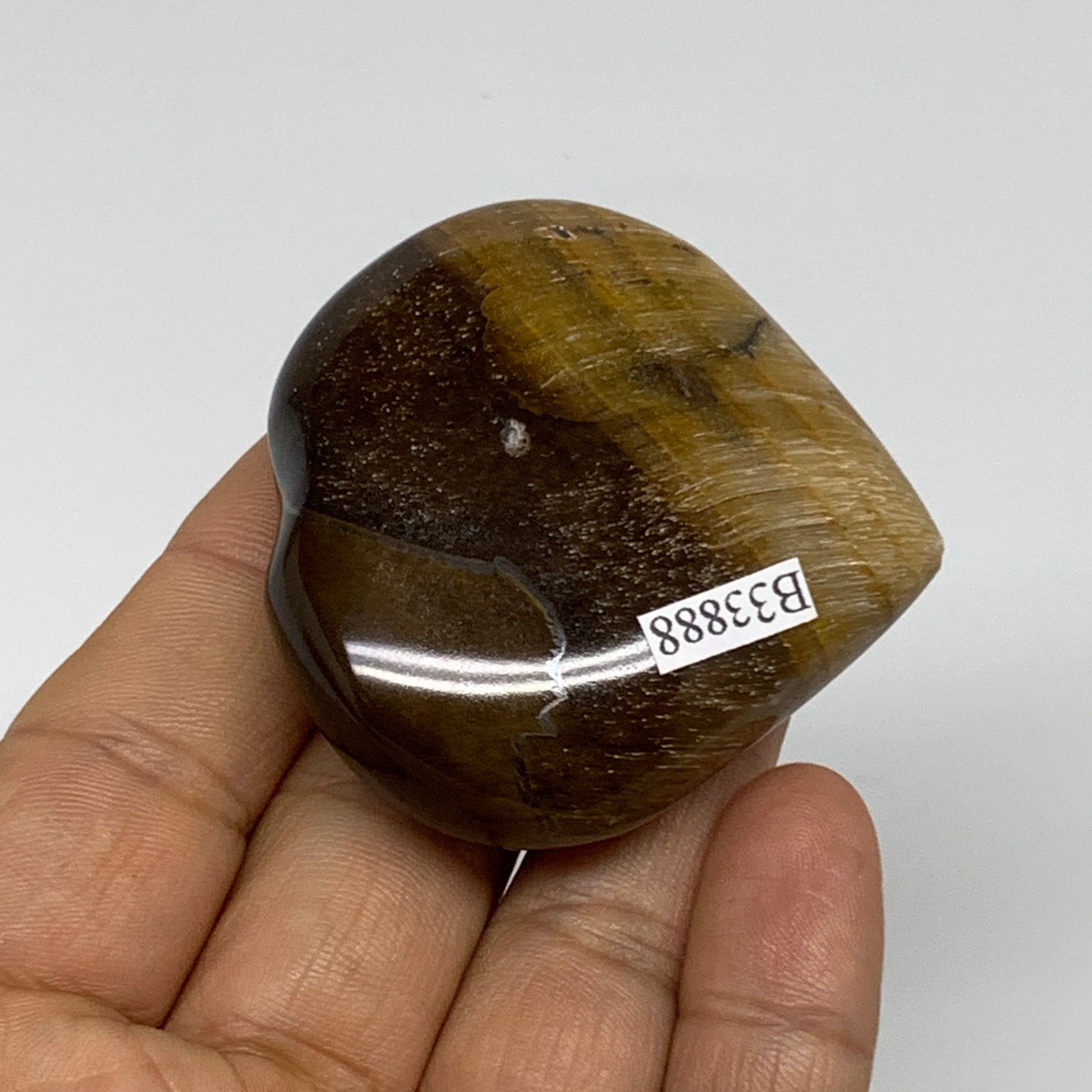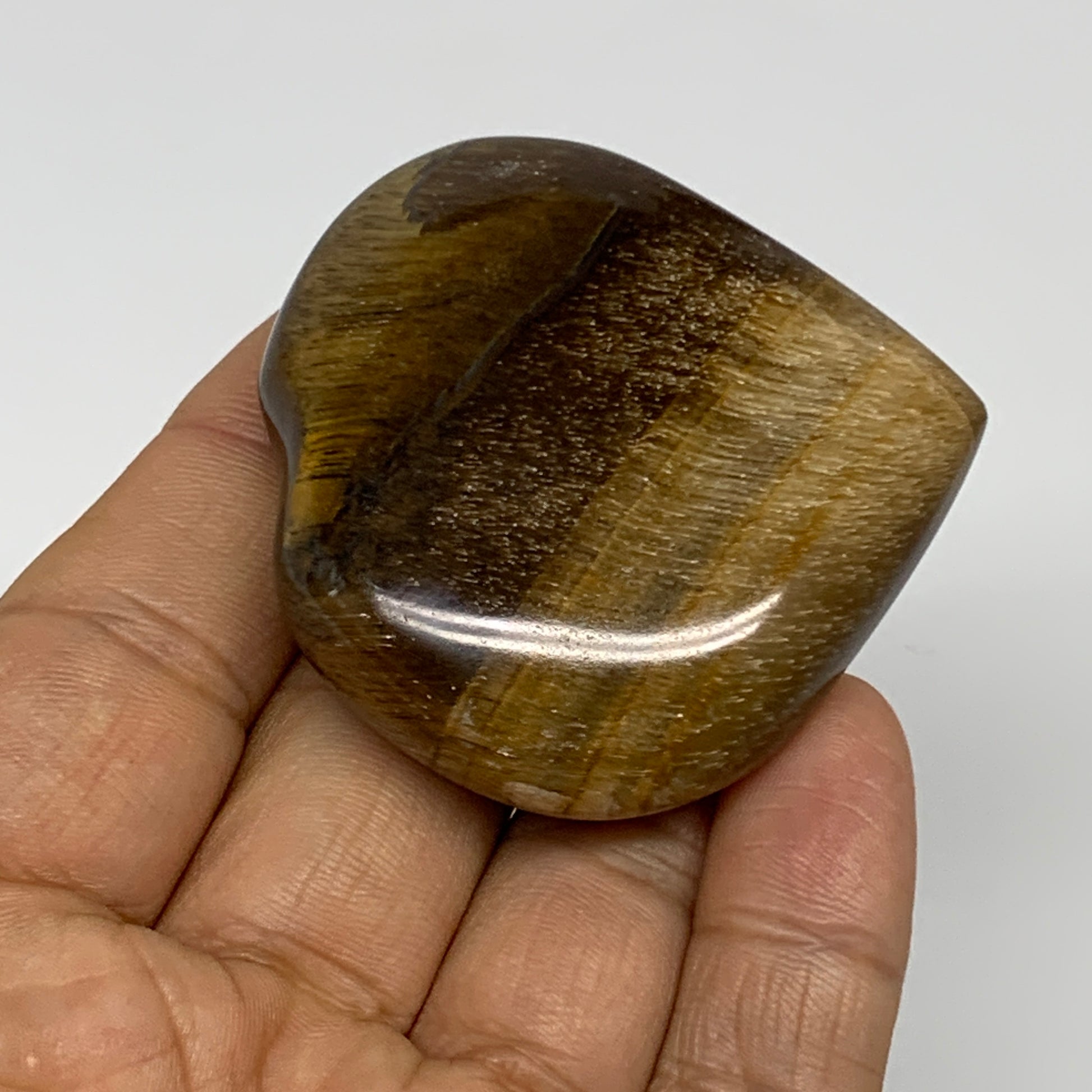 70g, 2"x2.1"x0.7", Tiger's Eye Heart Polished Healing Crystal @India, B33888