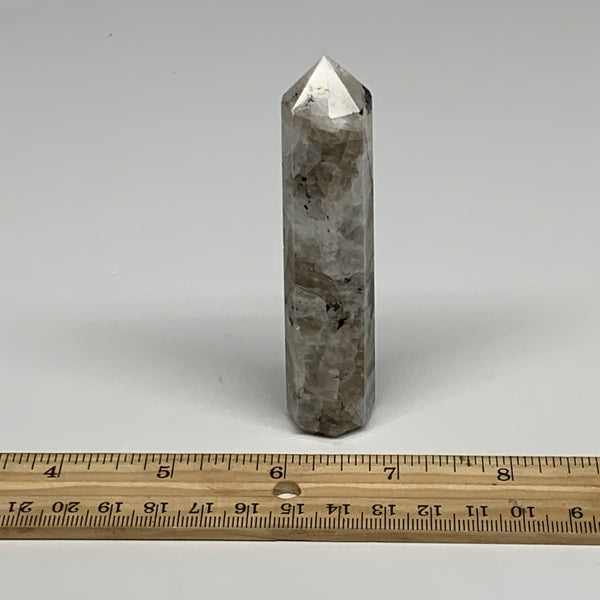 71.1g, 3.7"x0.8", Rainbow Moonstone Tower Obelisk Point Crystal @India, B29266