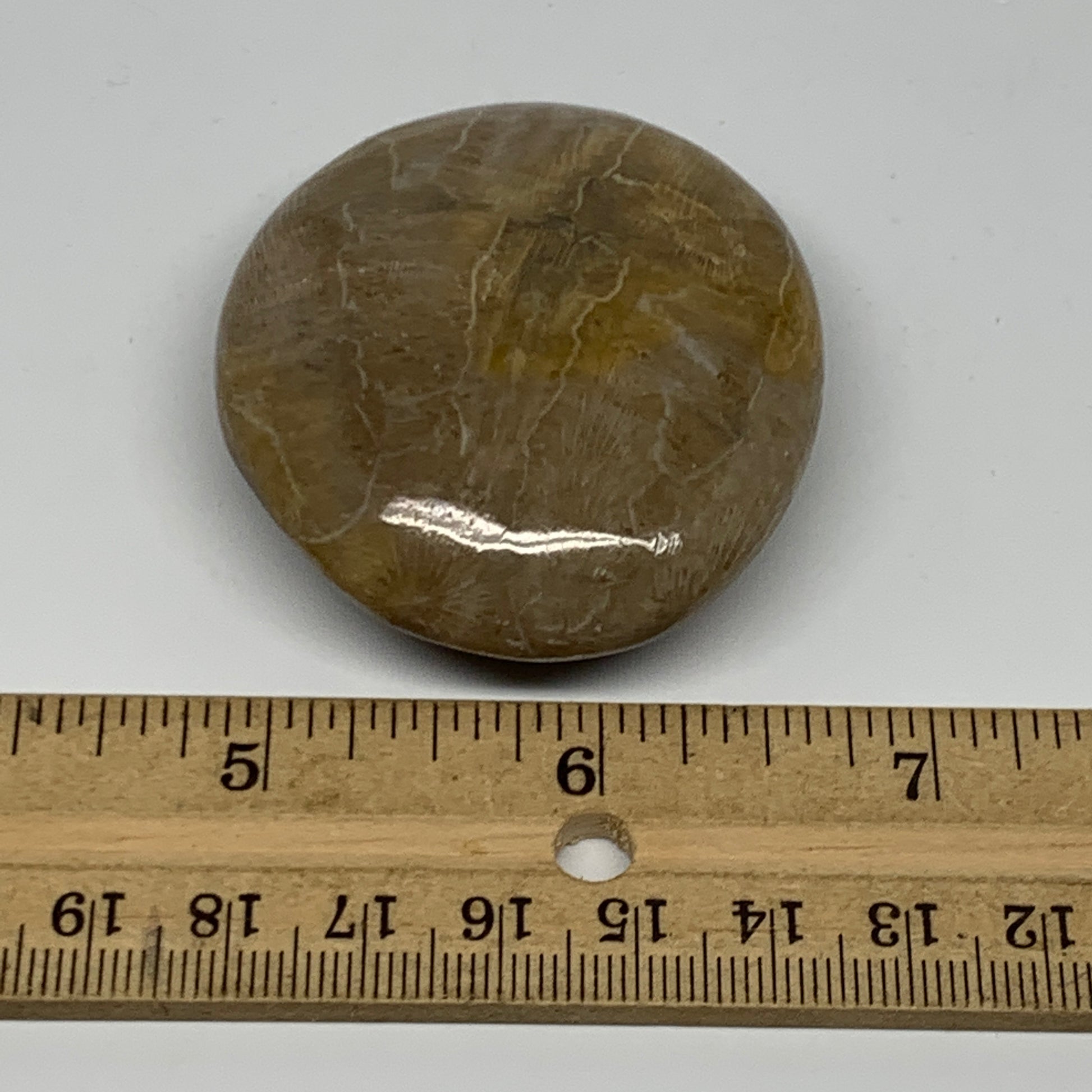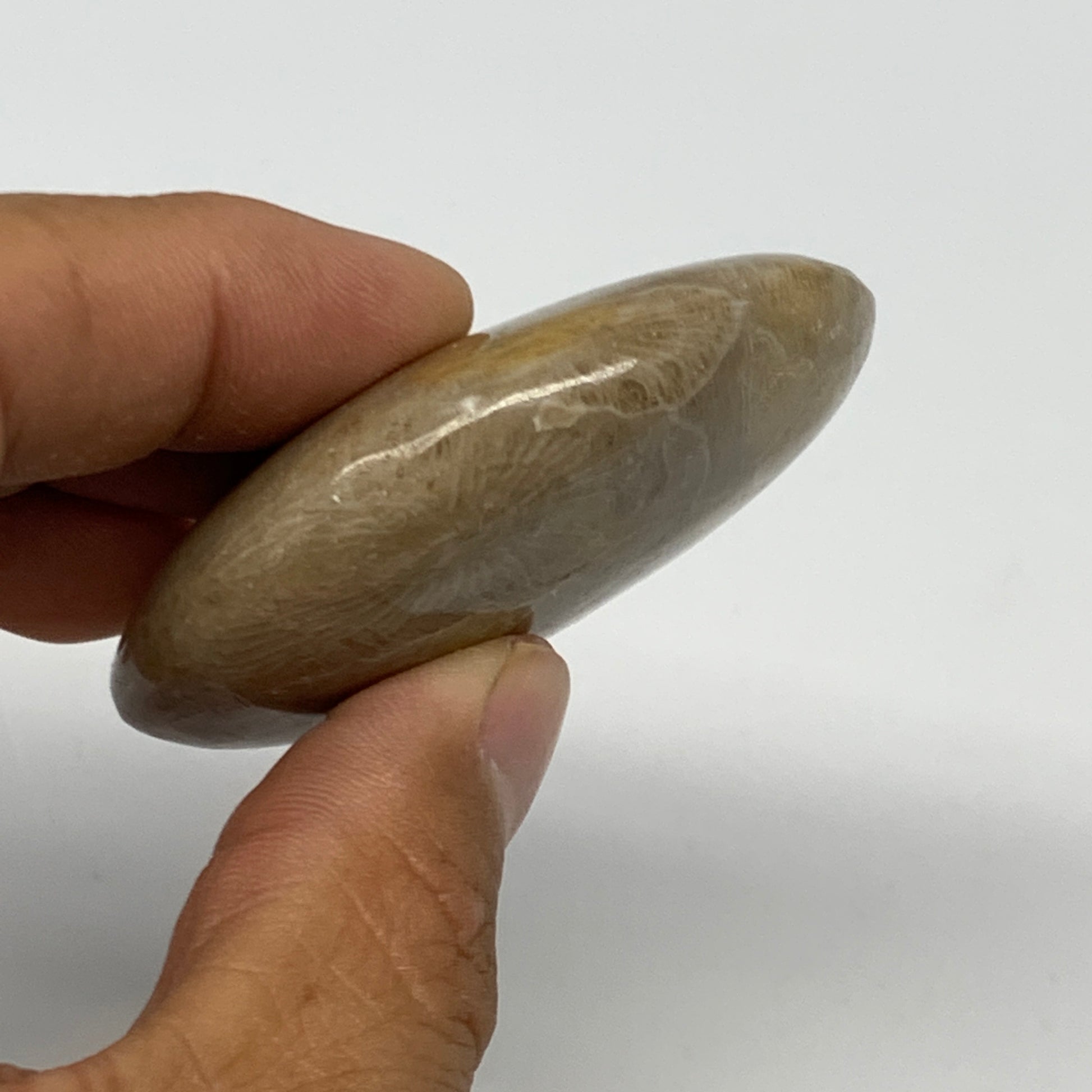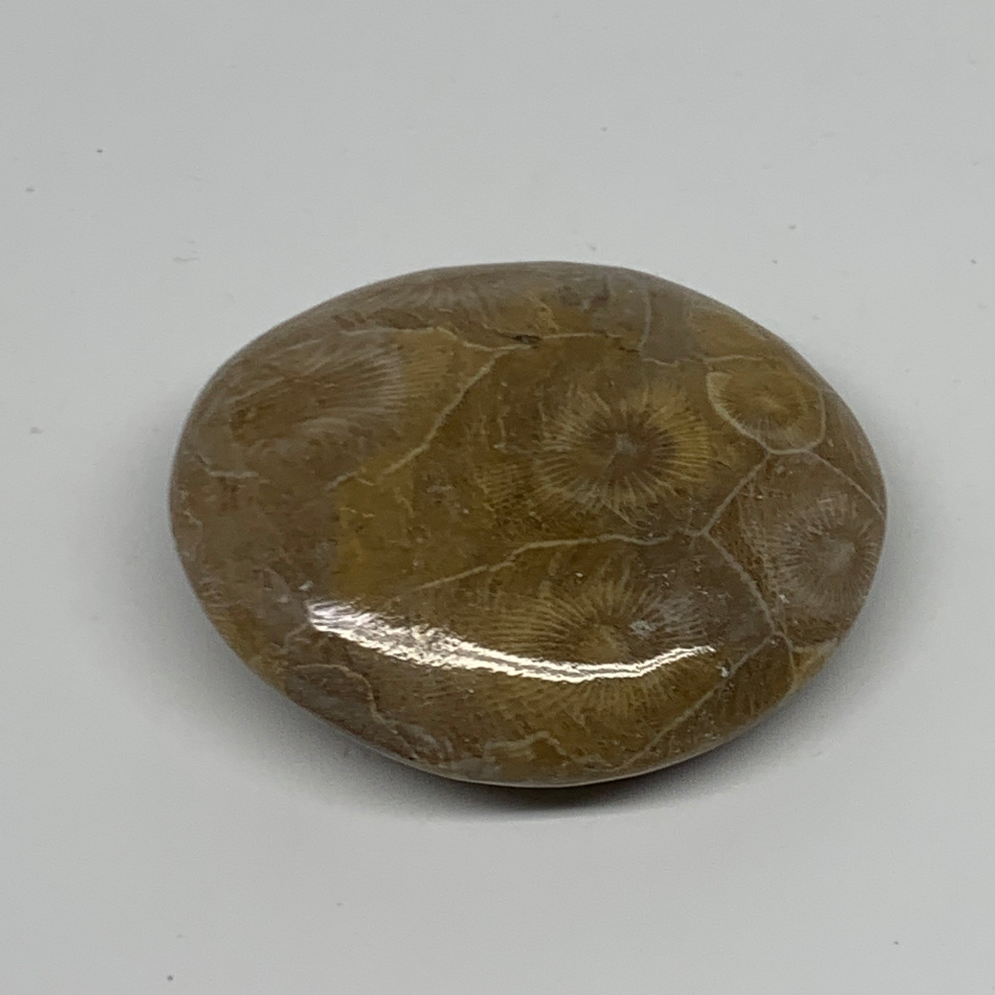 71.3g,2.2"x1.9"x 0.7", Coral Fossils Palm-Stone Polished from Morocco, B20398