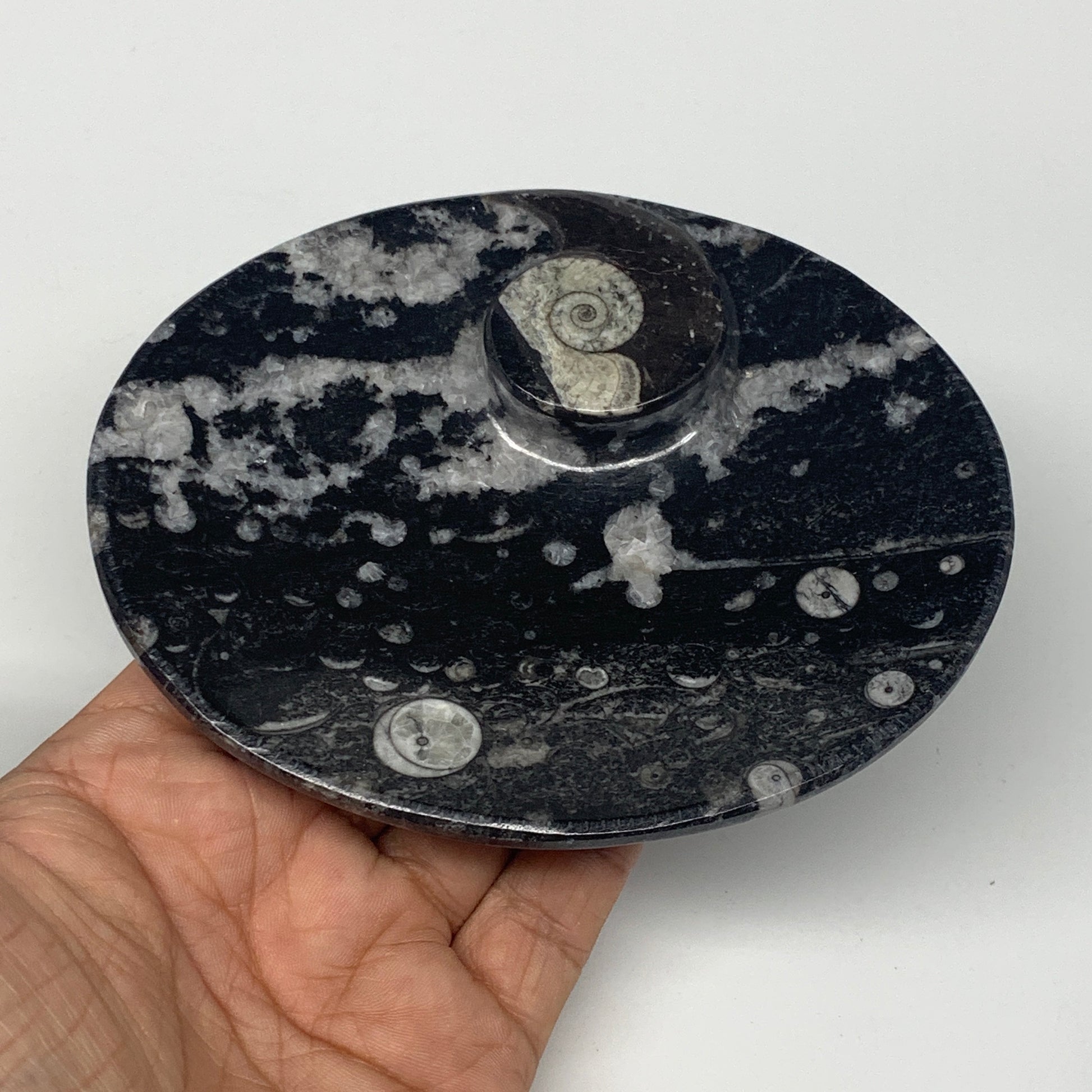 726g, 4pcs, 4.7"x3.8" Small Black Fossils Ammonite Orthoceras Bowl Oval Ring,B88