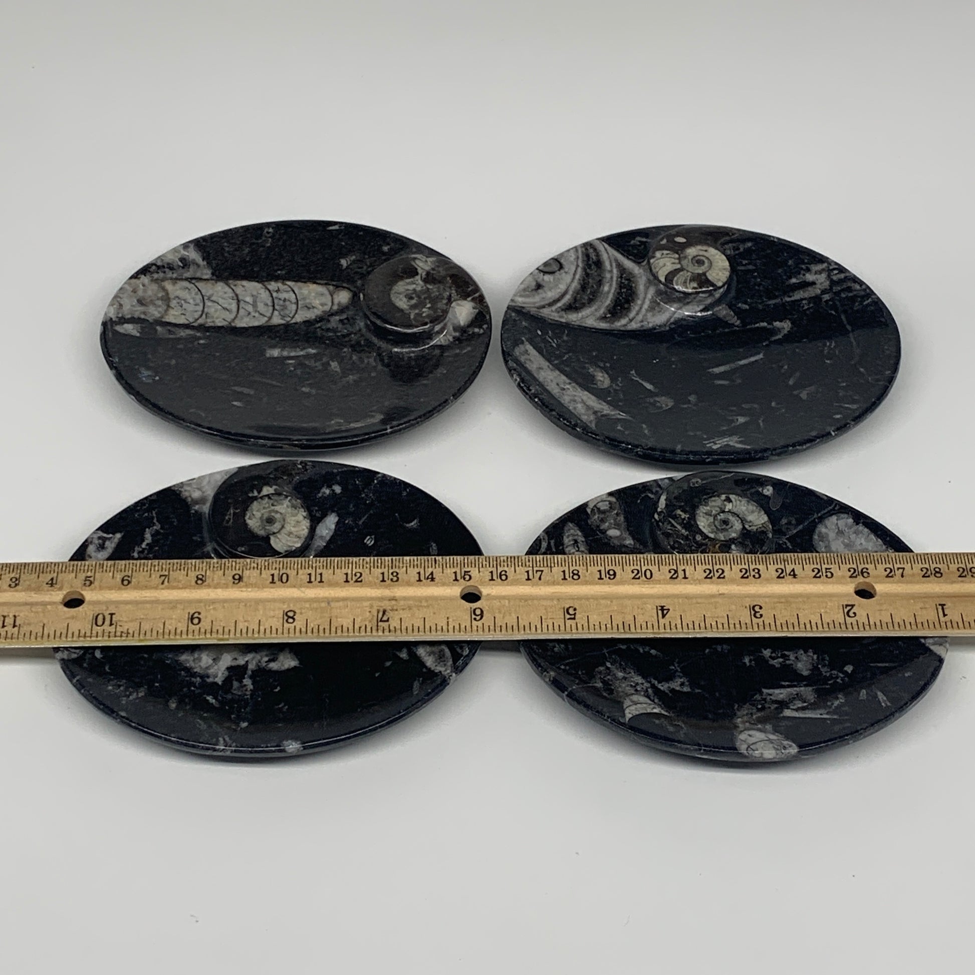 726g, 4pcs, 4.7"x3.8" Small Fossils Ammonite Orthoceras Bowl Oval Ring,B8861