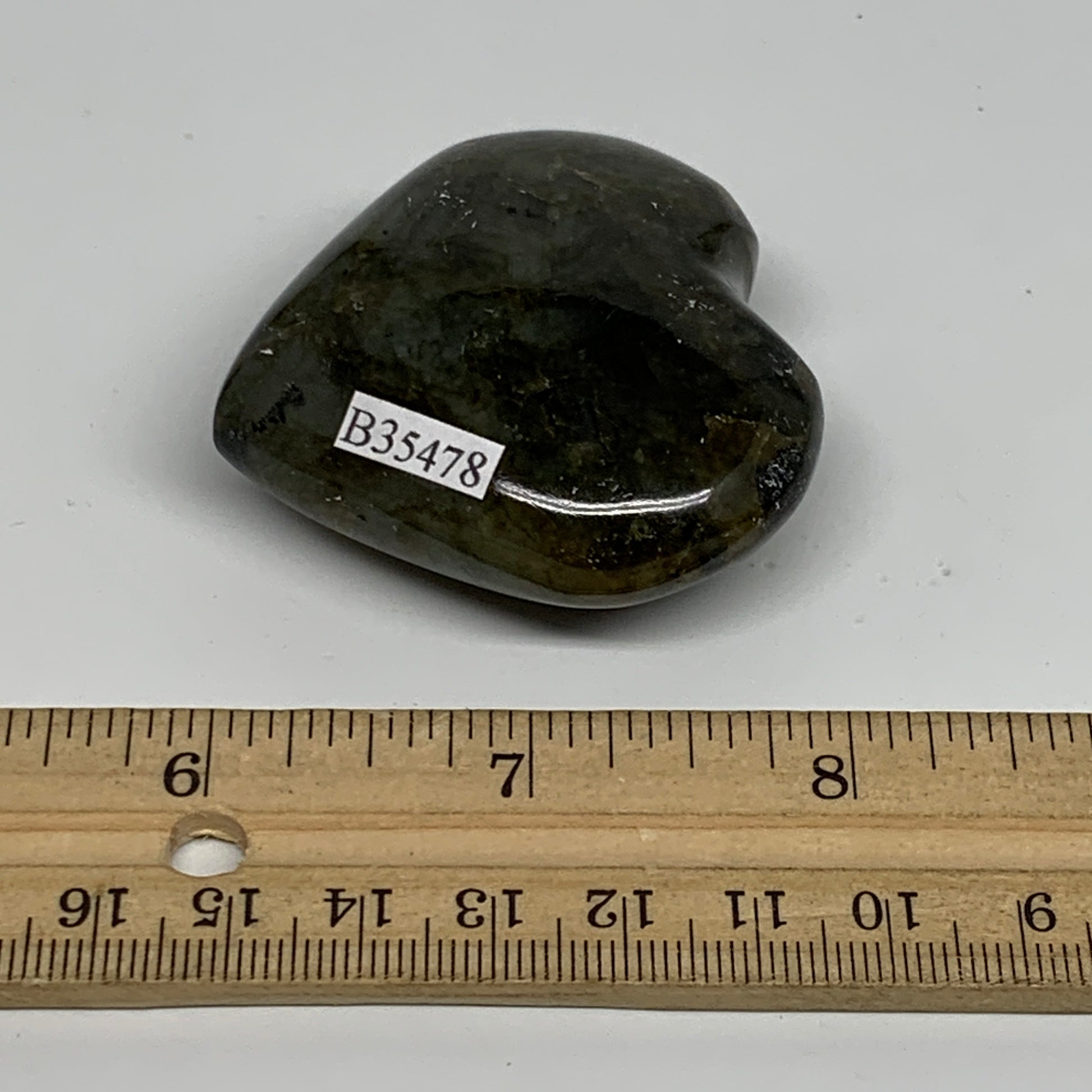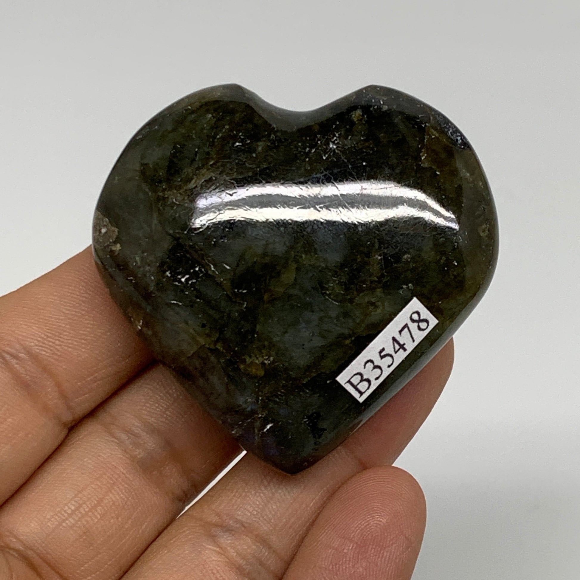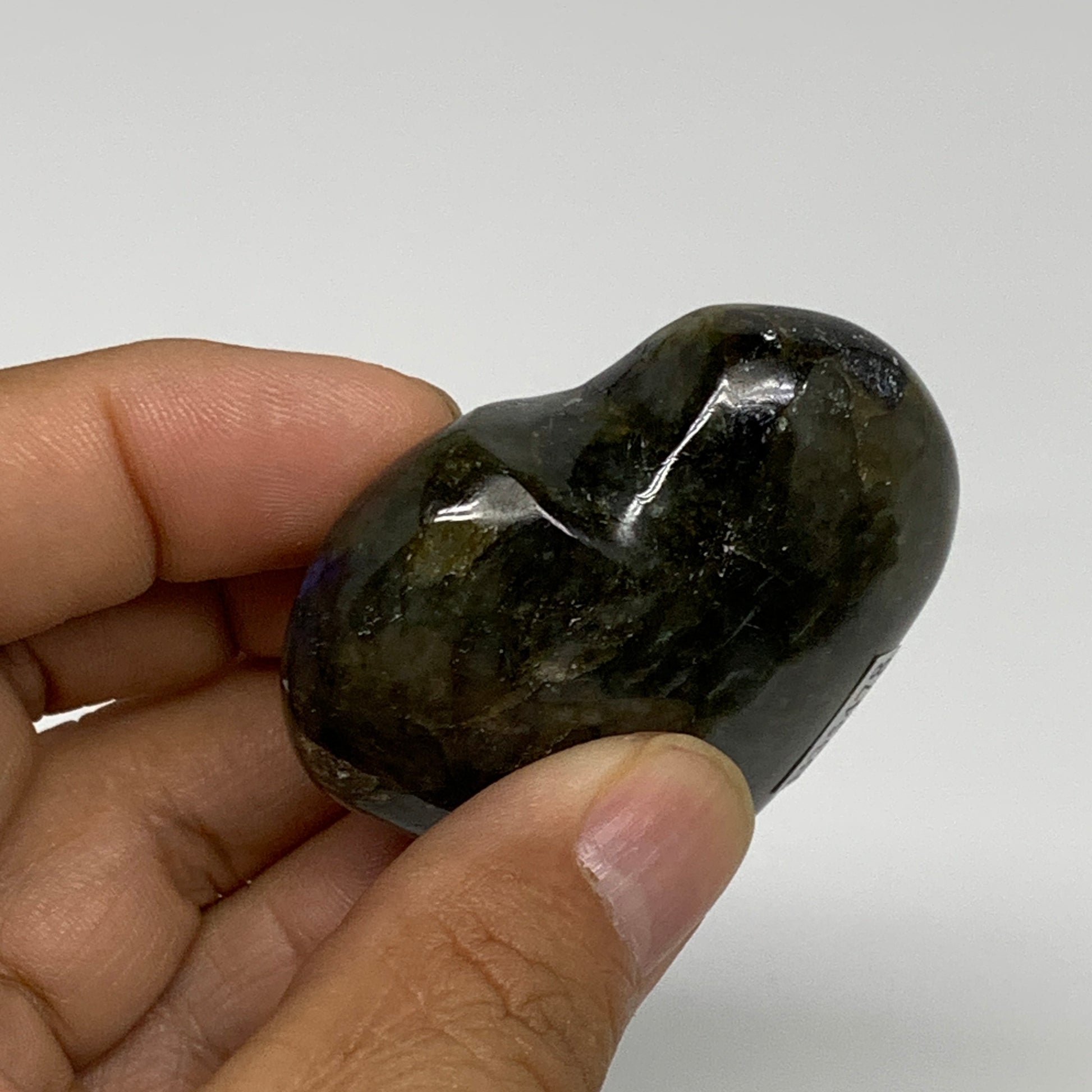 73.1g, 2"x2"x0.8", Natural Labradorite Heart Polished Crystal, B35478