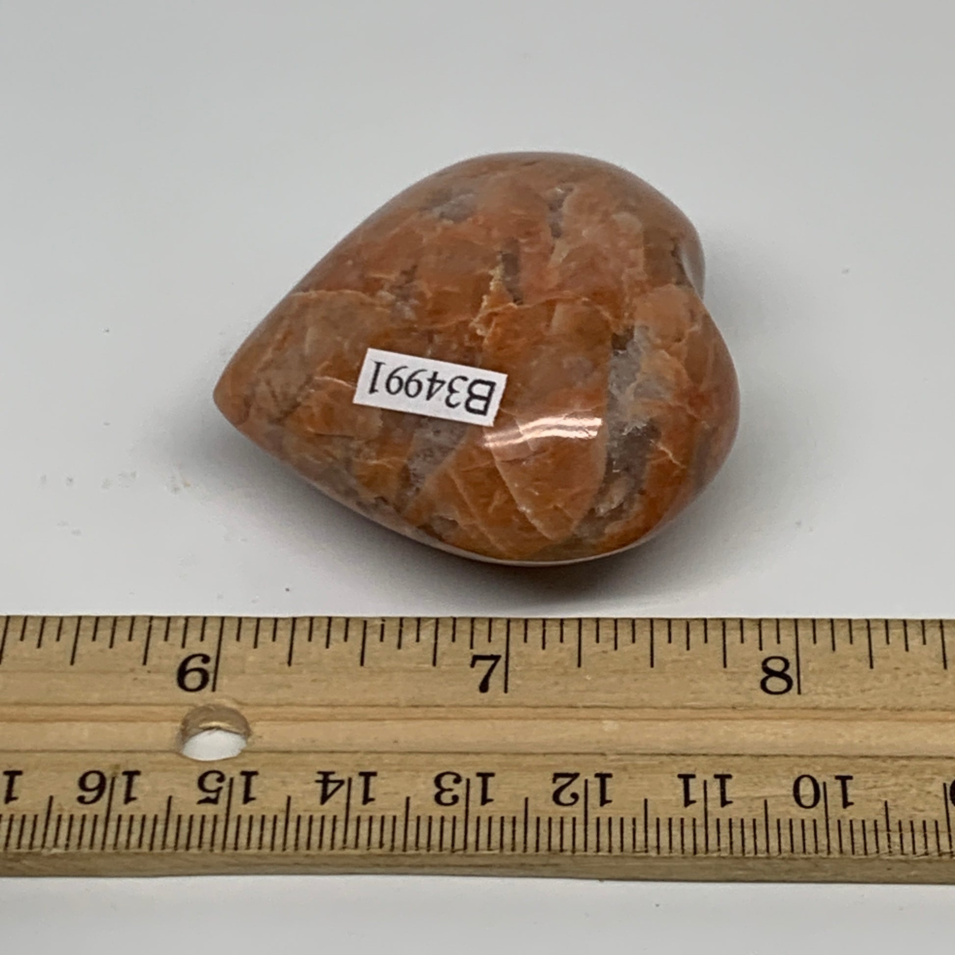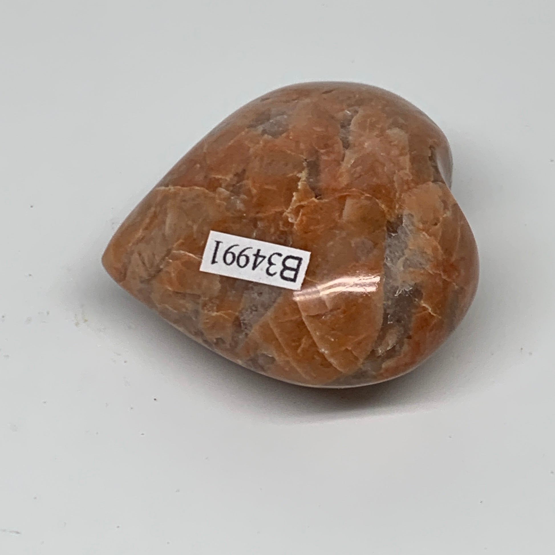 73.5g, 1.9"x2"x1", Peach Moonstone Heart Crystal Polished, B34991