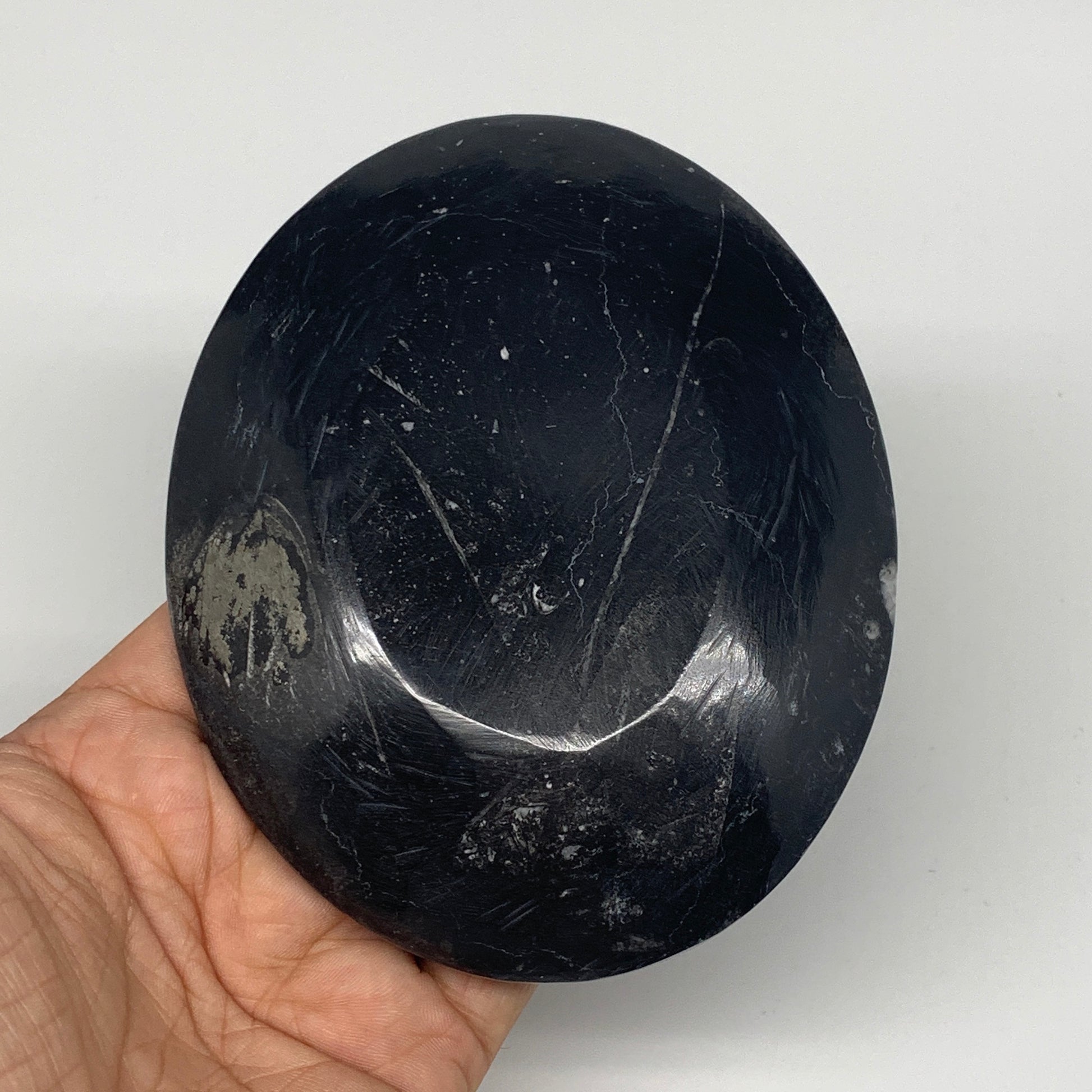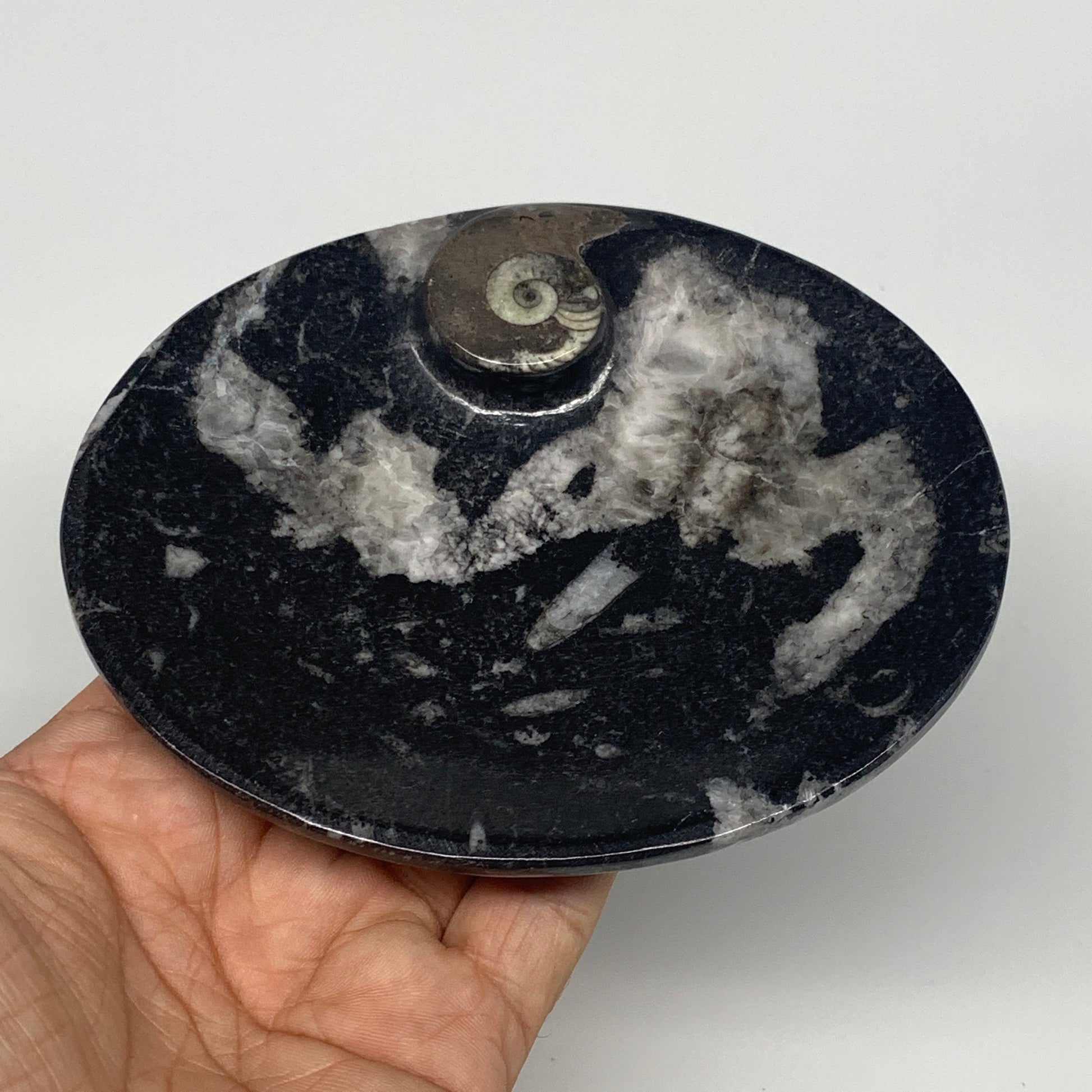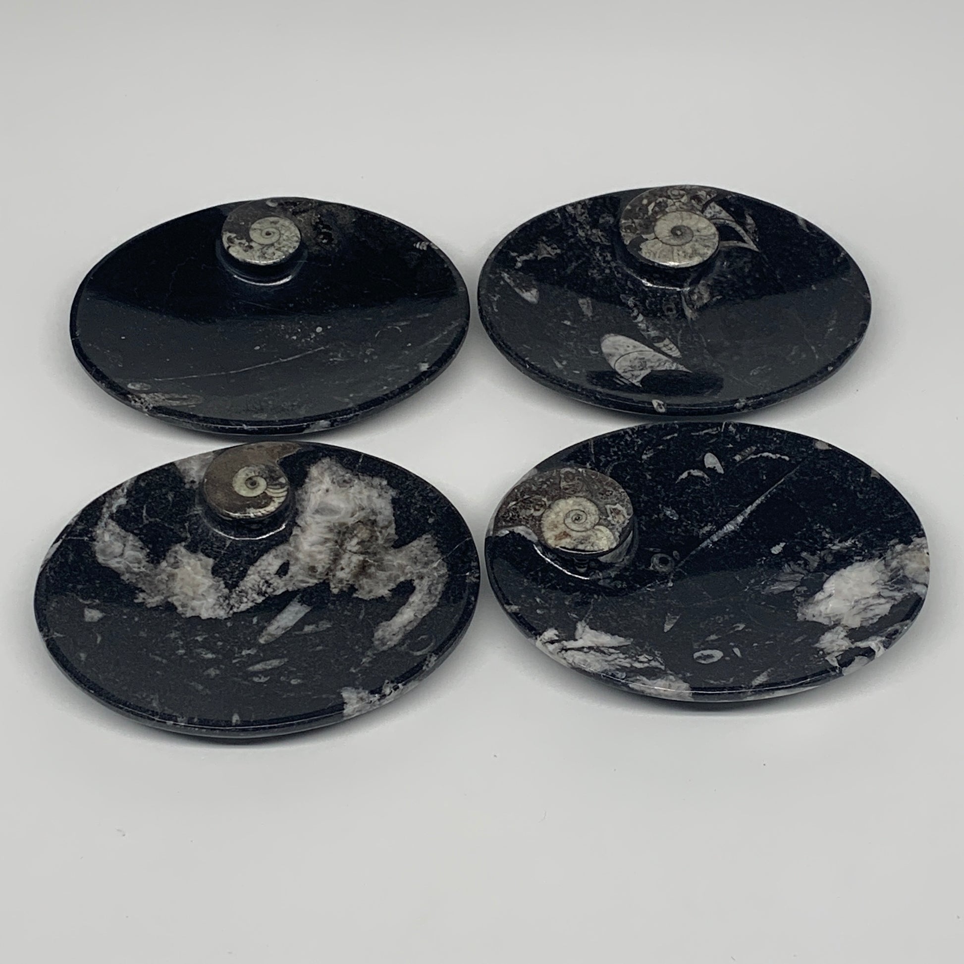 734g, 4pcs, 4.7"x3.8" Small Fossils Ammonite Orthoceras Bowl Oval Ring,B8862